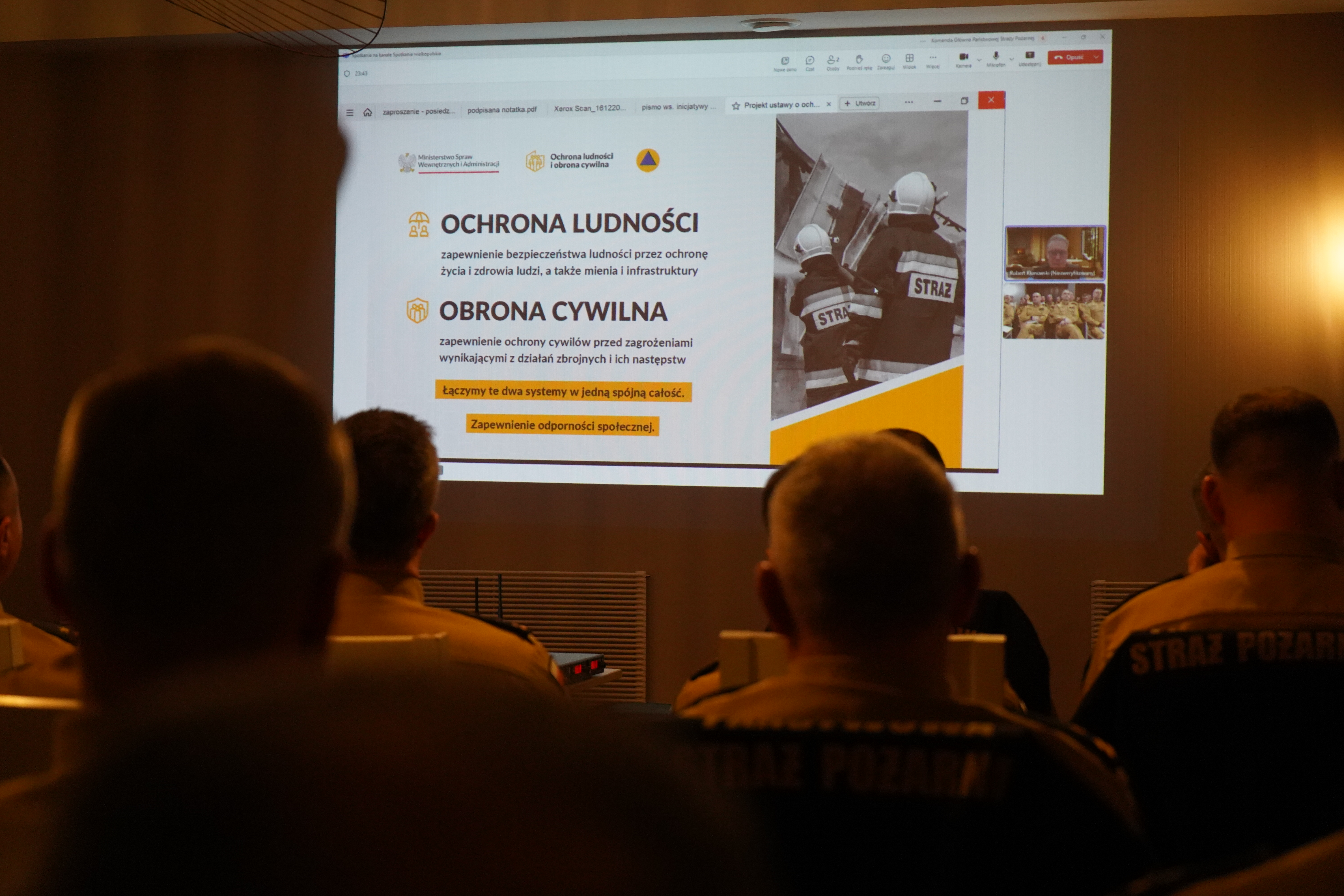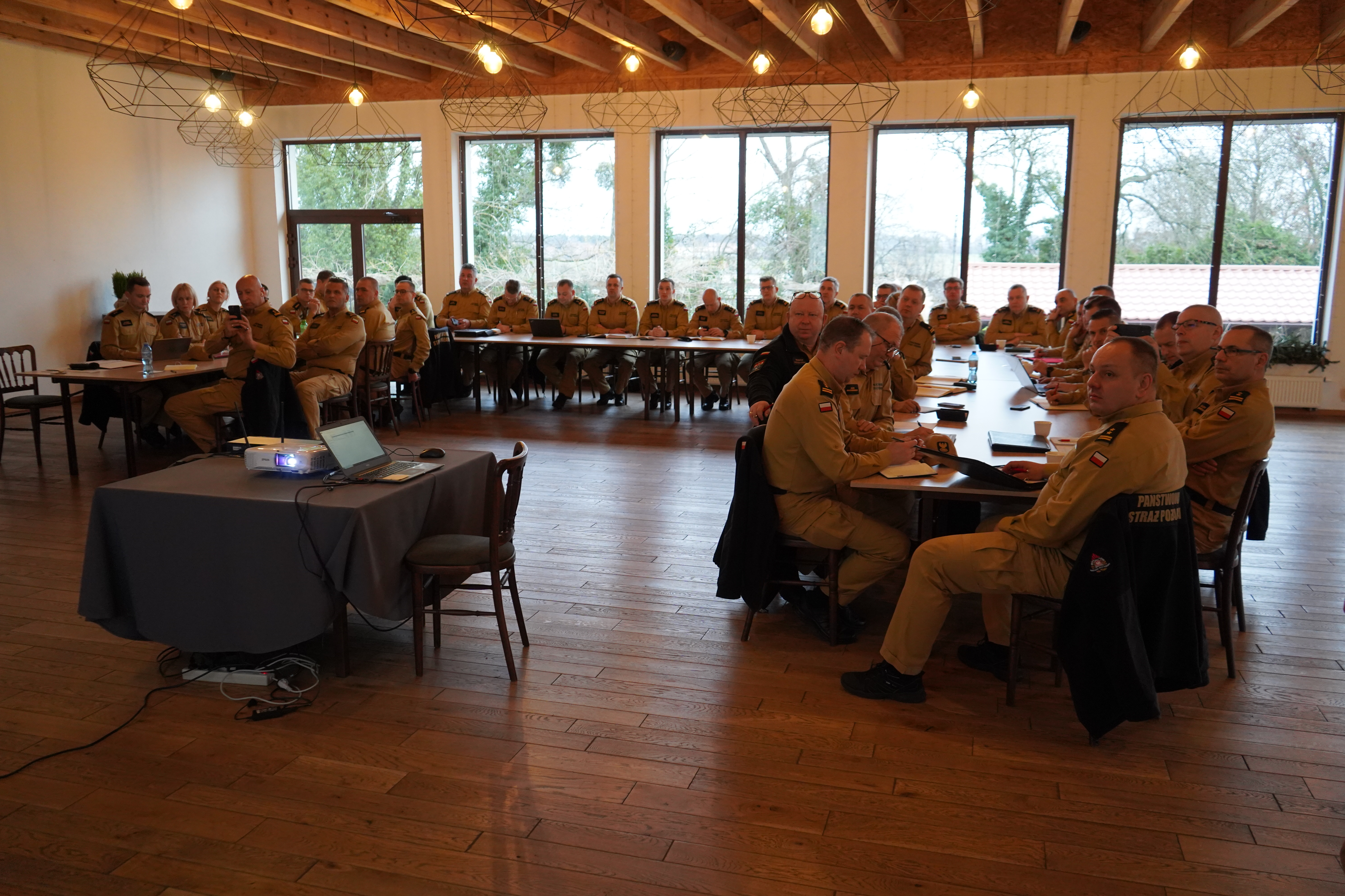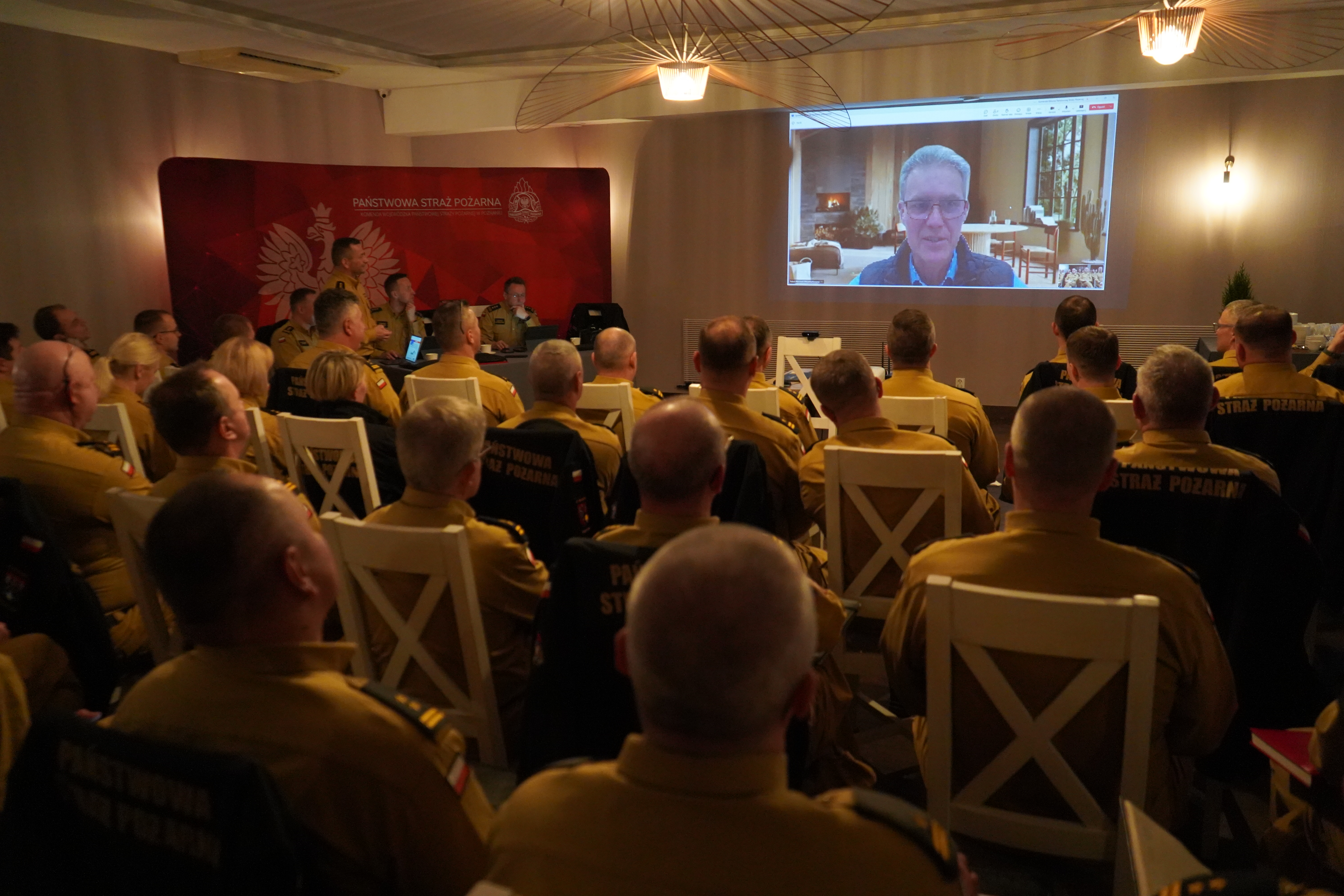 Następnie kadra kierownicza wielkopolskich strażaków przemieściła się na teren powiatu wrzesińskiego na zaplanowaną odprawę. Podczas spotkania Wielkopolski Komendant Wojewódzki PSP st. bryg. Jacek Strużyński podziękował uczestnikom za sumienne i profesjonalne wykonywanie obowiązków służbowych oraz realizację zadań w 2024 roku. Podczas połączenia wideokonferencyjnego z Robertem Klonowskim - Zastępcą Dyrektora Departamentu Ochrony Ludności i Zarządzania Kryzysowego MSWiA, Dyrektor przedstawił kadrze kierowniczej założenia projektu ustawy o ochronie ludności i obronie cywilnej, przedstawiając w szczególności zakres zadań, który został zaproponowany dla PSP i OSP, krajowego systemu ratowniczo-gaśniczego. Podczas dwudniowej odprawy podsumowano tegoroczne działania, omówiono realizację bieżących zadań i przedstawiono plany na kolejny rok.