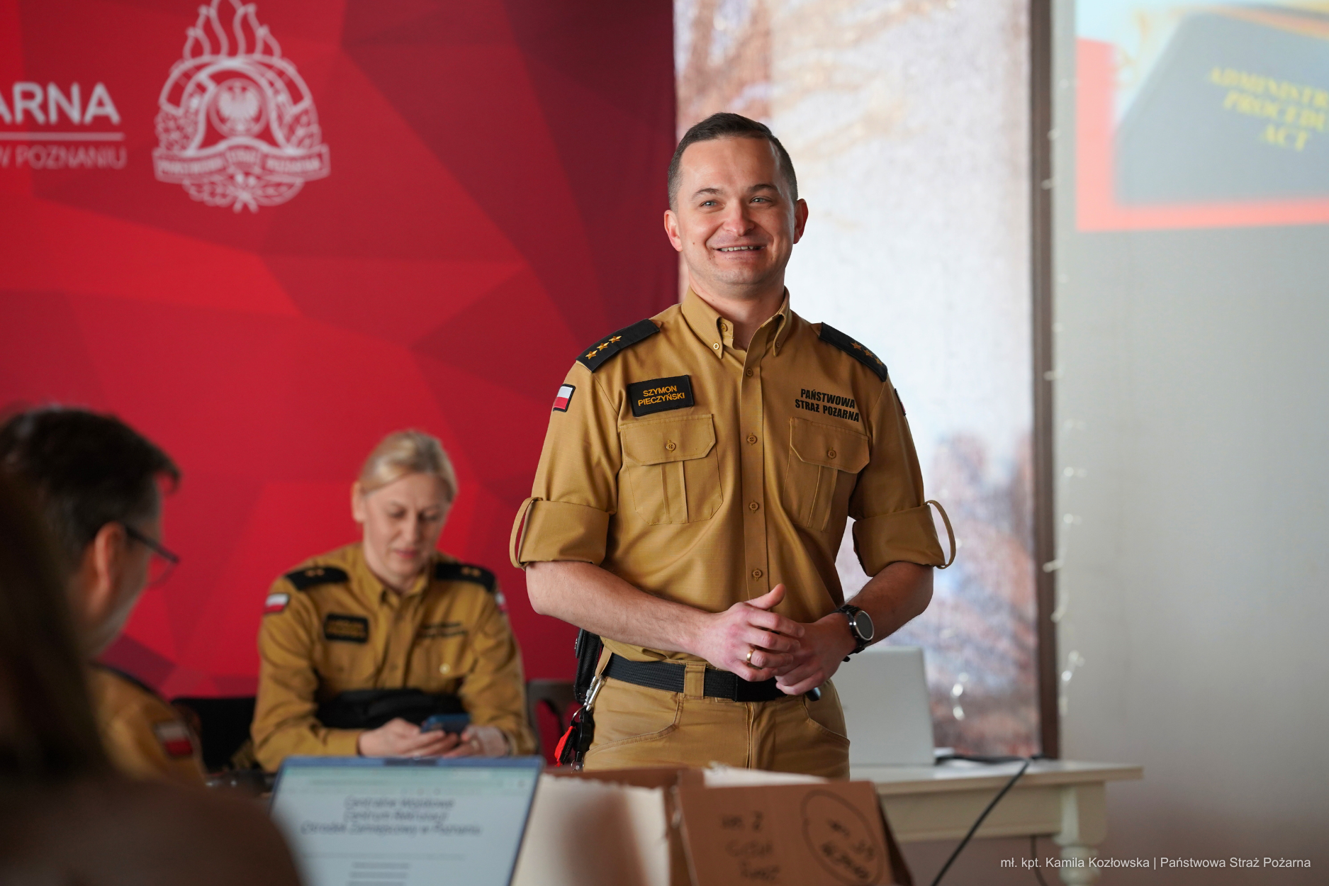 Istotnym blokiem tematycznym była komunikacja elektroniczna, w tym wdrażanie i stosowanie e-Doręczeń oraz funkcjonowanie platformy ePUAP. Prowadzący st. bryg. Grzegorz Lewicz omówił obowiązki wynikające z nowych przepisów, zasady stosowania poszczególnych kanałów komunikacji oraz potrzebę ujednolicenia standardów wymiany korespondencji pomiędzy jednostkami organizacyjnymi PSP.