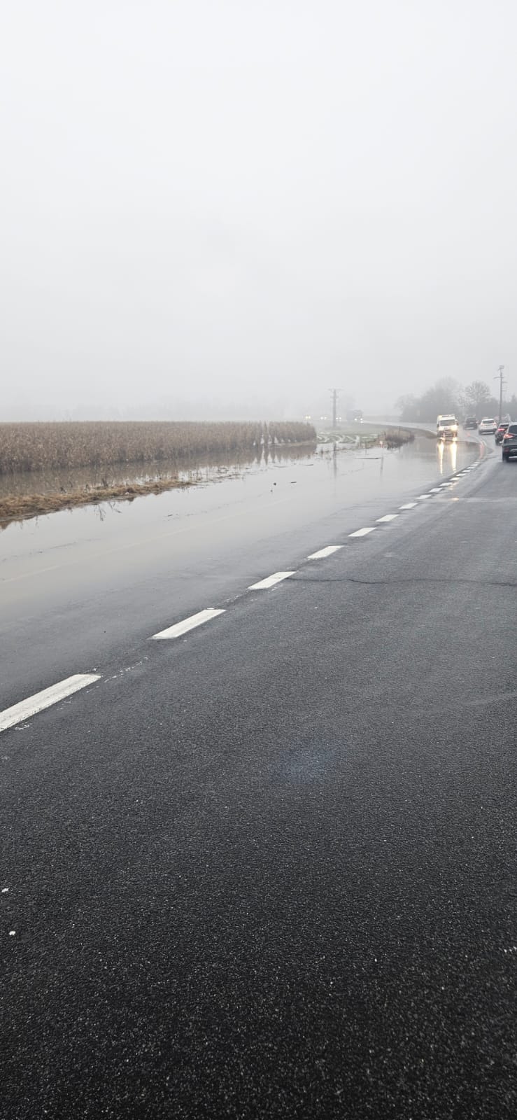 - w pow. kolskim, m. Krzykosy - woda spływająca z okolicznych pól gromadzi się na drodze krajowej nr 92, przelewa się przez jezdnię,