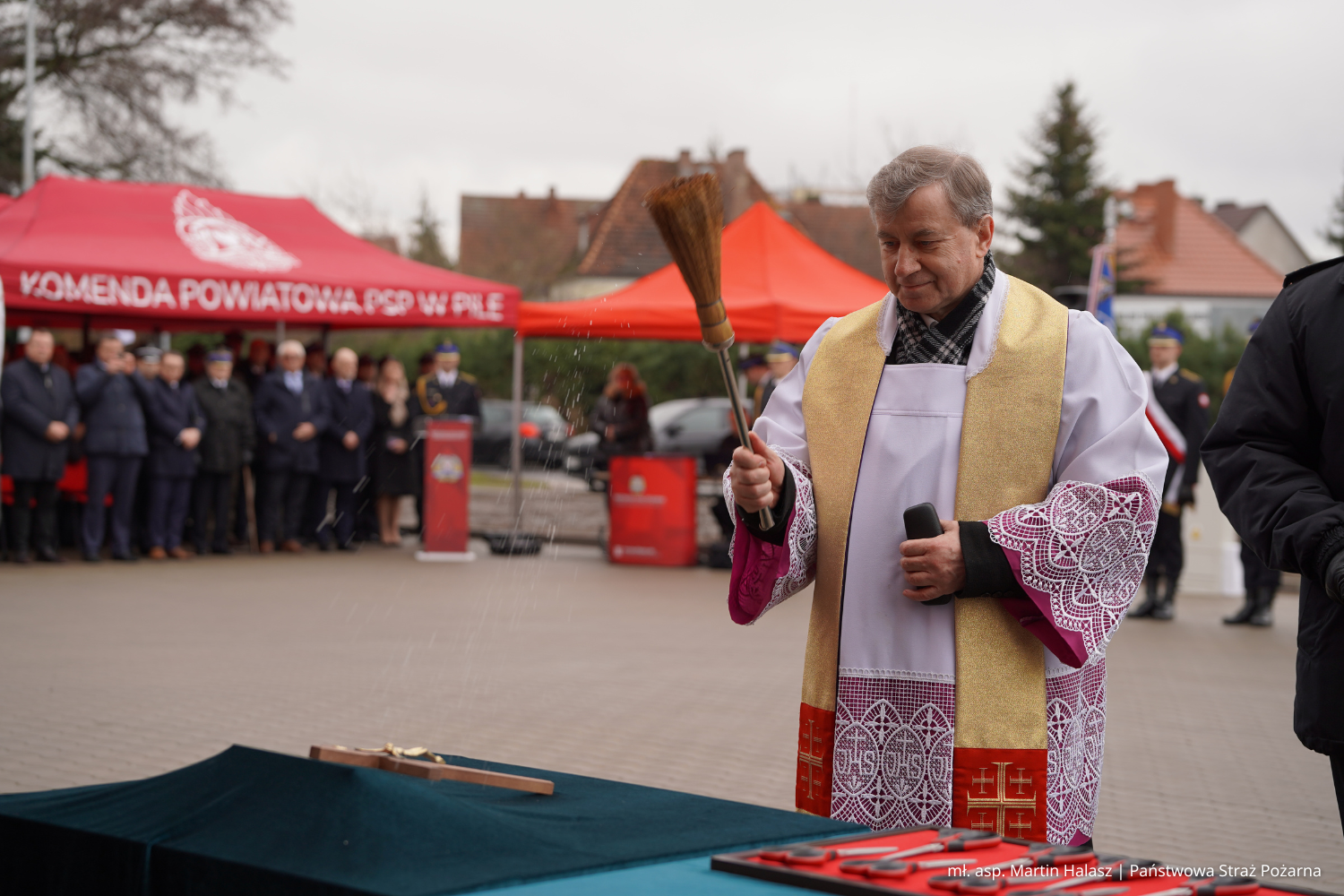 Następnie odbyło się oficjalne otwarcie strażnicy oraz poświęcenie krzyża, który zostanie umieszczony w nowym budynku.
