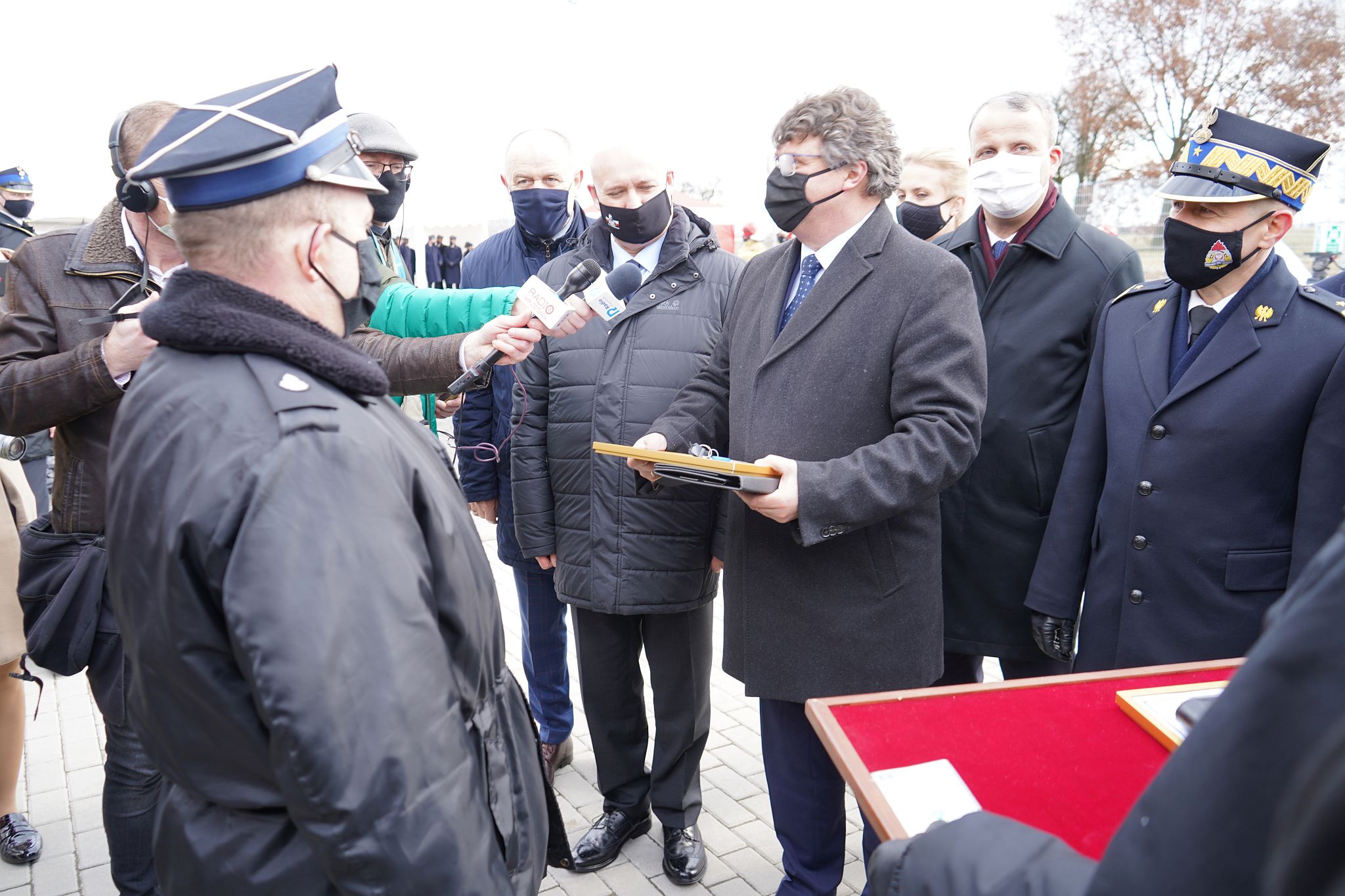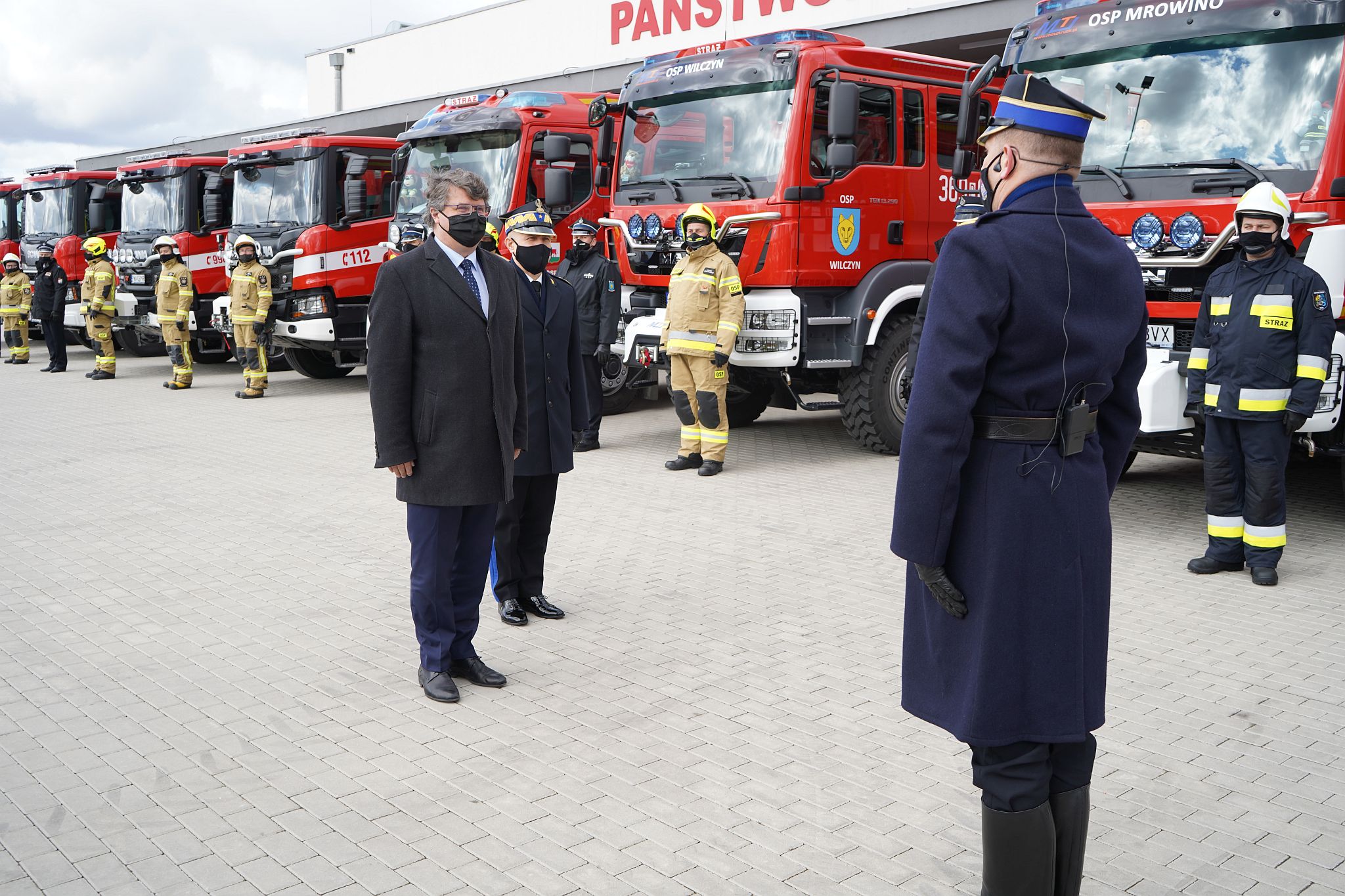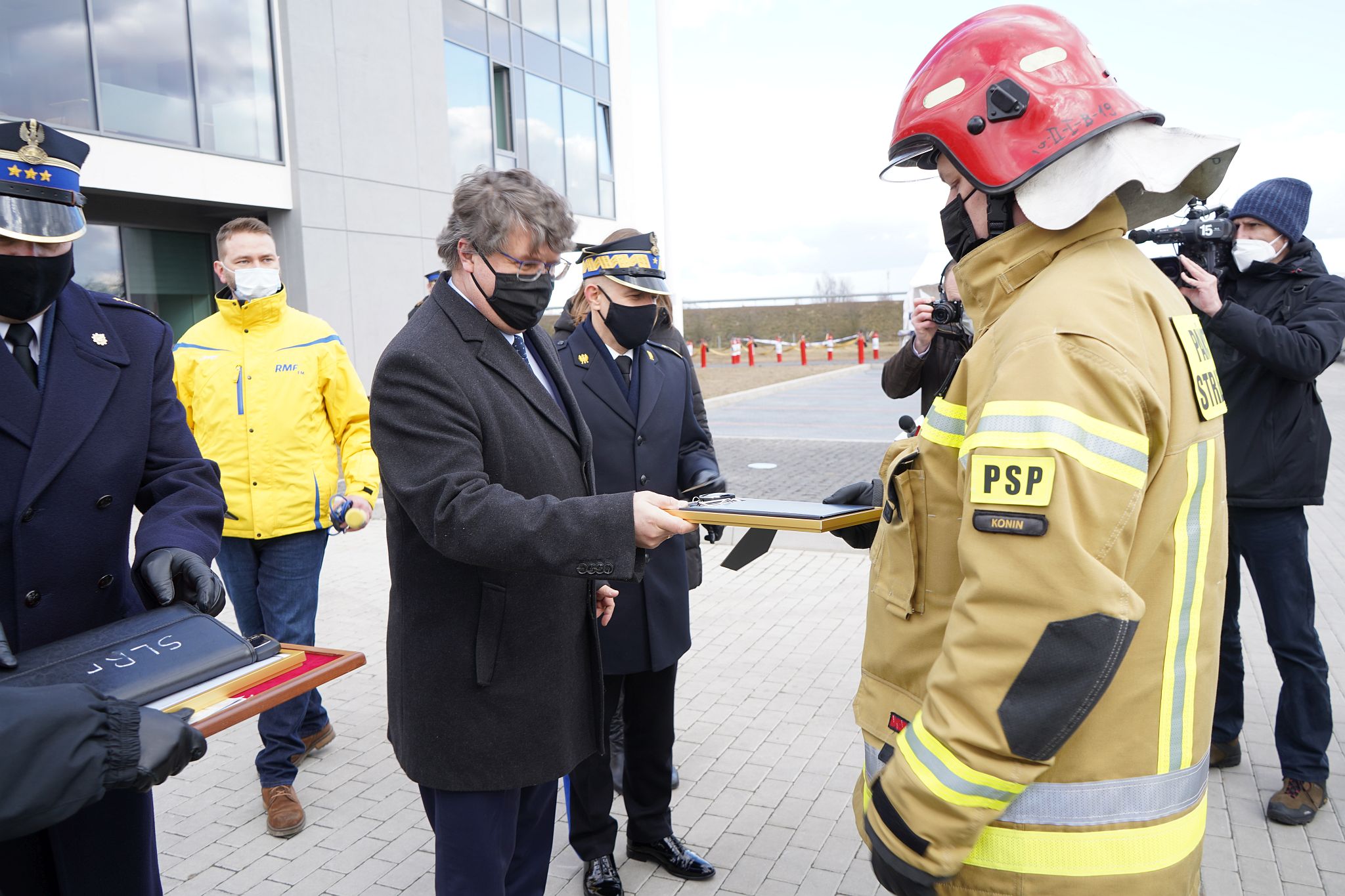 Kluczyki do samochodów specjalnych i ratowniczo-gaśniczych dla jednostek ochotniczych straży pożarnych z woj. wielkopolskiego wręczył Pan Maciej Wąsik – wiceminister spraw wewnętrznych i administracji wraz z Panem Michałem Zielińskim – wojewodą wielkopolskim, nadbrygadierem Andrzejem Bartkowiakiem – komendantem głównym PSP, st. bryg. Dariuszem Matczakiem – wielkopolskim komendantem wojewódzkim PSP w Poznaniu.