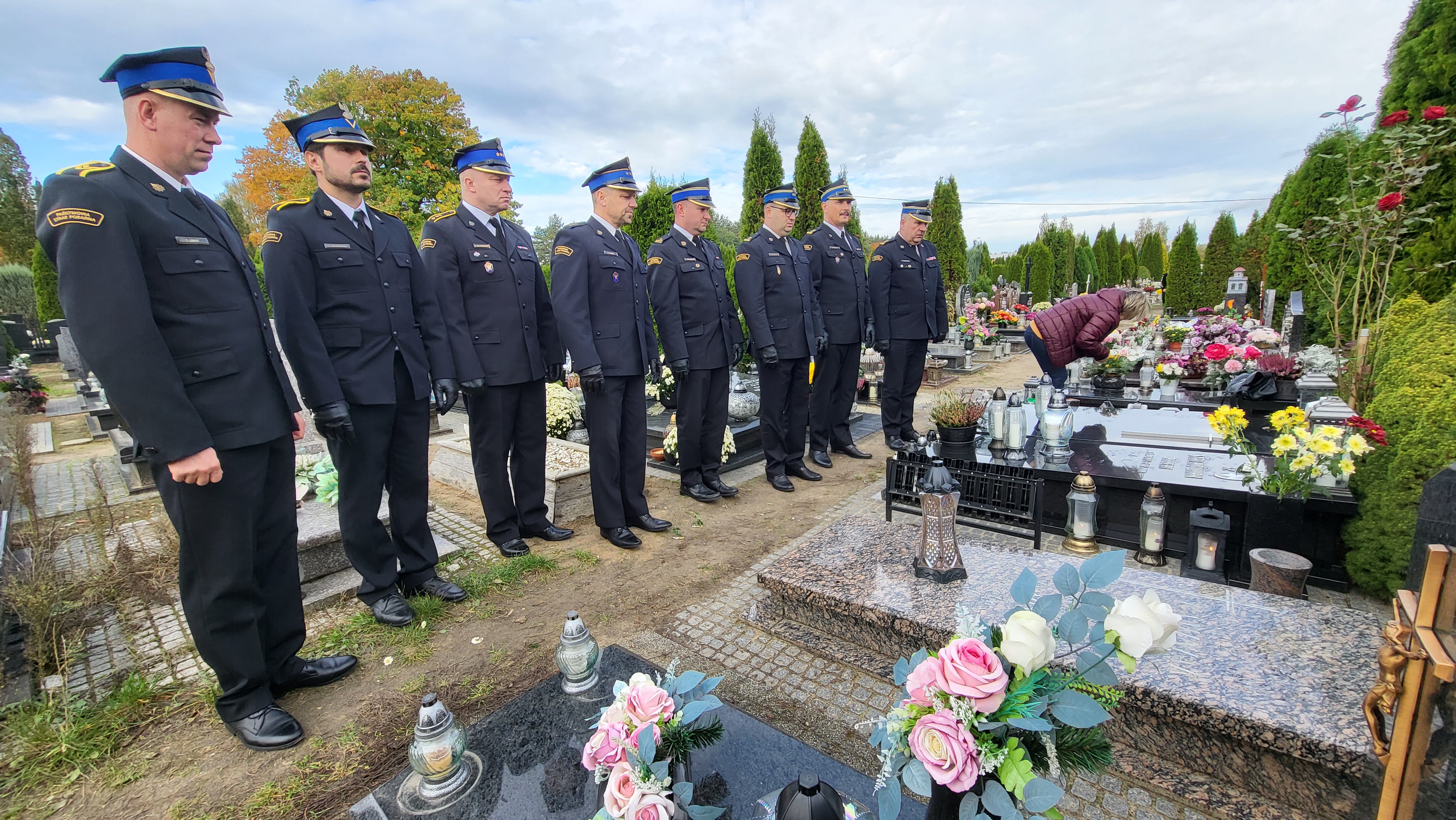 W dniach poprzedzających święto Wszystkich Świętych poznańscy strażacy zapalili znicze i złożyli kwiaty na grobach strażaków w Kostrzynie i w Poznaniu, by dać wyraz pamięci o zmarłych funkcjonariuszach PSP i pracownikach.