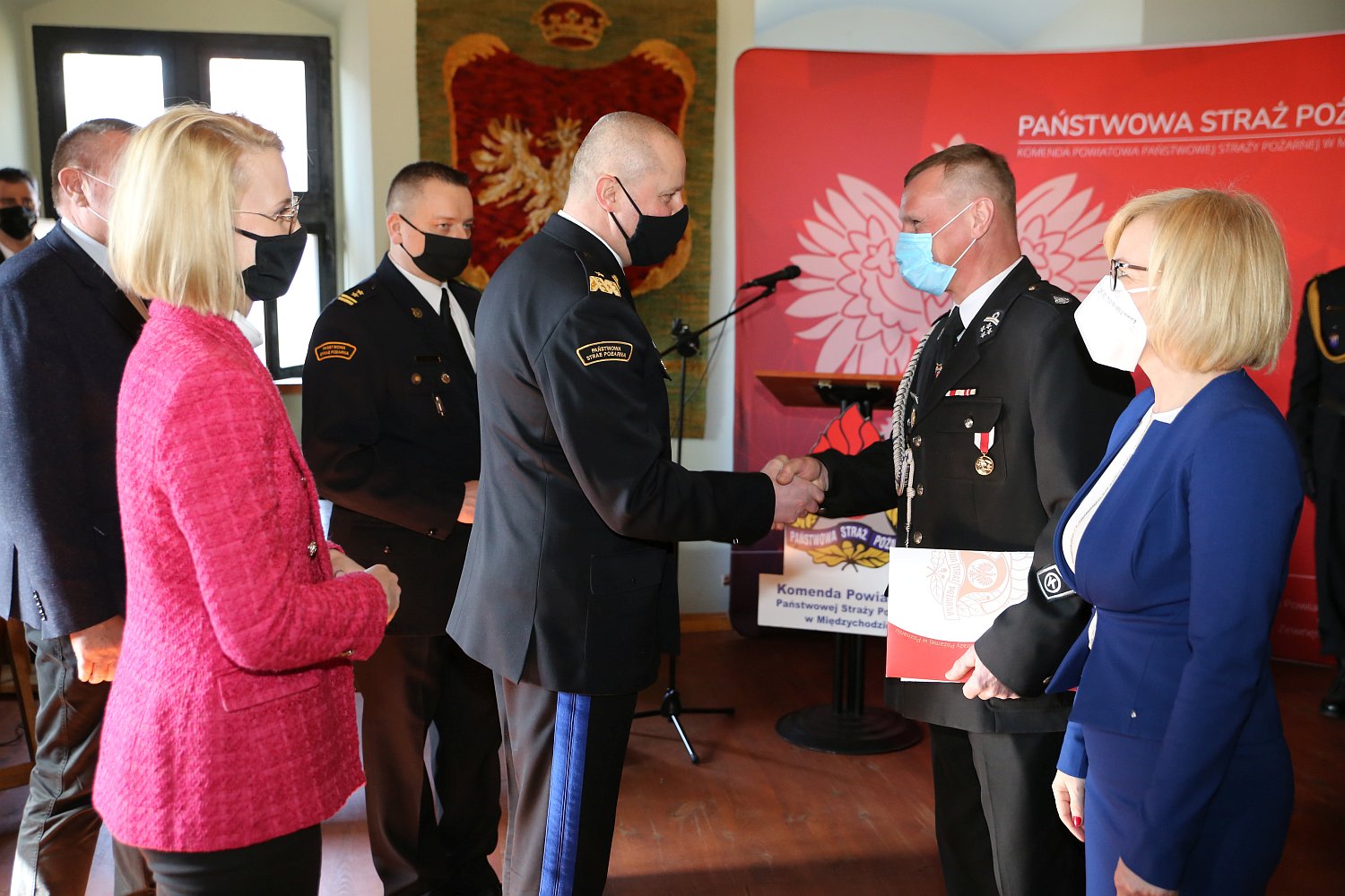 Na zakończenie uroczystości głos zabrali: Posłowie Pani Marta Kubiak oraz Pan Krzysztof Czarnecki, Wielkopolski Komendant Wojewódzki PSP nadbryg. Dariusz Matczak i Starosta Powiatu Międzychodzkiego Pan Rafał Litke gratulując druhom otrzymanych promes, jednocześnie dziękując za codzienne zaangażowanie i ofiarną służbę.