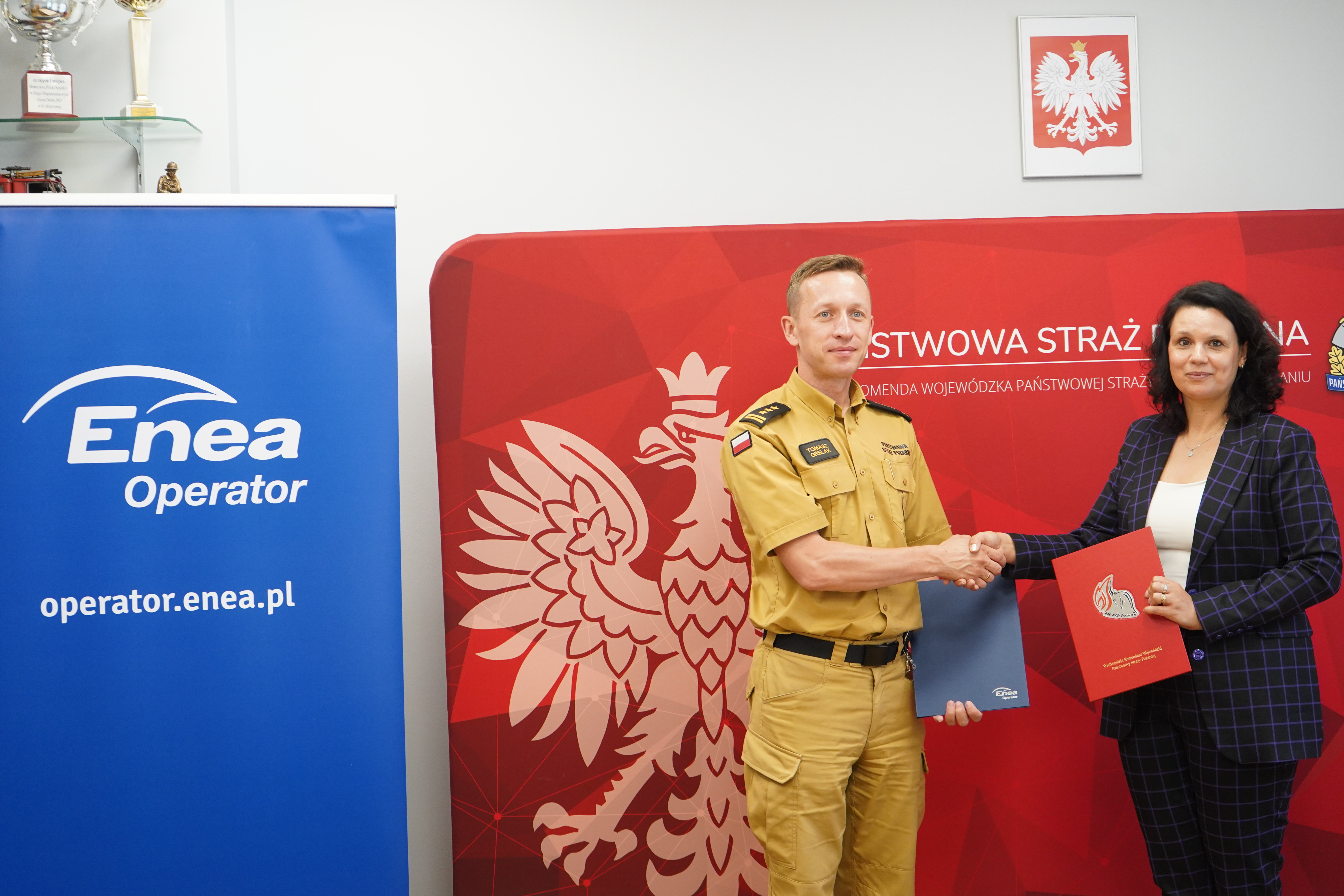 W podpisaniu porozumienia 21 czerwca, w siedzibie Komendy Wojewódzkiej PSP w Poznaniu, uczestniczyli ze strony Enei Operator: Agnieszka Gosławska, p.o. dyrektora Oddziału Dystrybucji Poznań oraz st. bryg. Tomasz Grelak, zastępca Wielkopolskiego Komendanta PSP. Dokument określa zakres i formy współpracy obu stron, niezbędne do podjęcia działań obejmujących przede wszystkim likwidację skutków klęsk żywiołowych, zdarzeń pożarowych i związanych z awariami infrastruktury elektroenergetycznej.