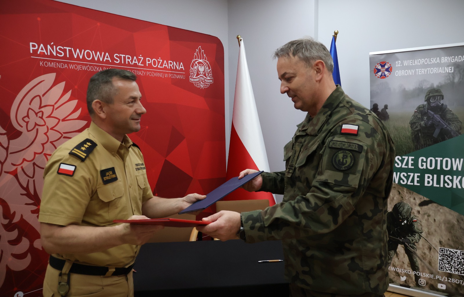 Podpisanie umowy o współpracy partnerskiej pomiędzy KW PSP w Poznaniu a 12. Wielkopolską Brygadą Obrony Terytorialnej