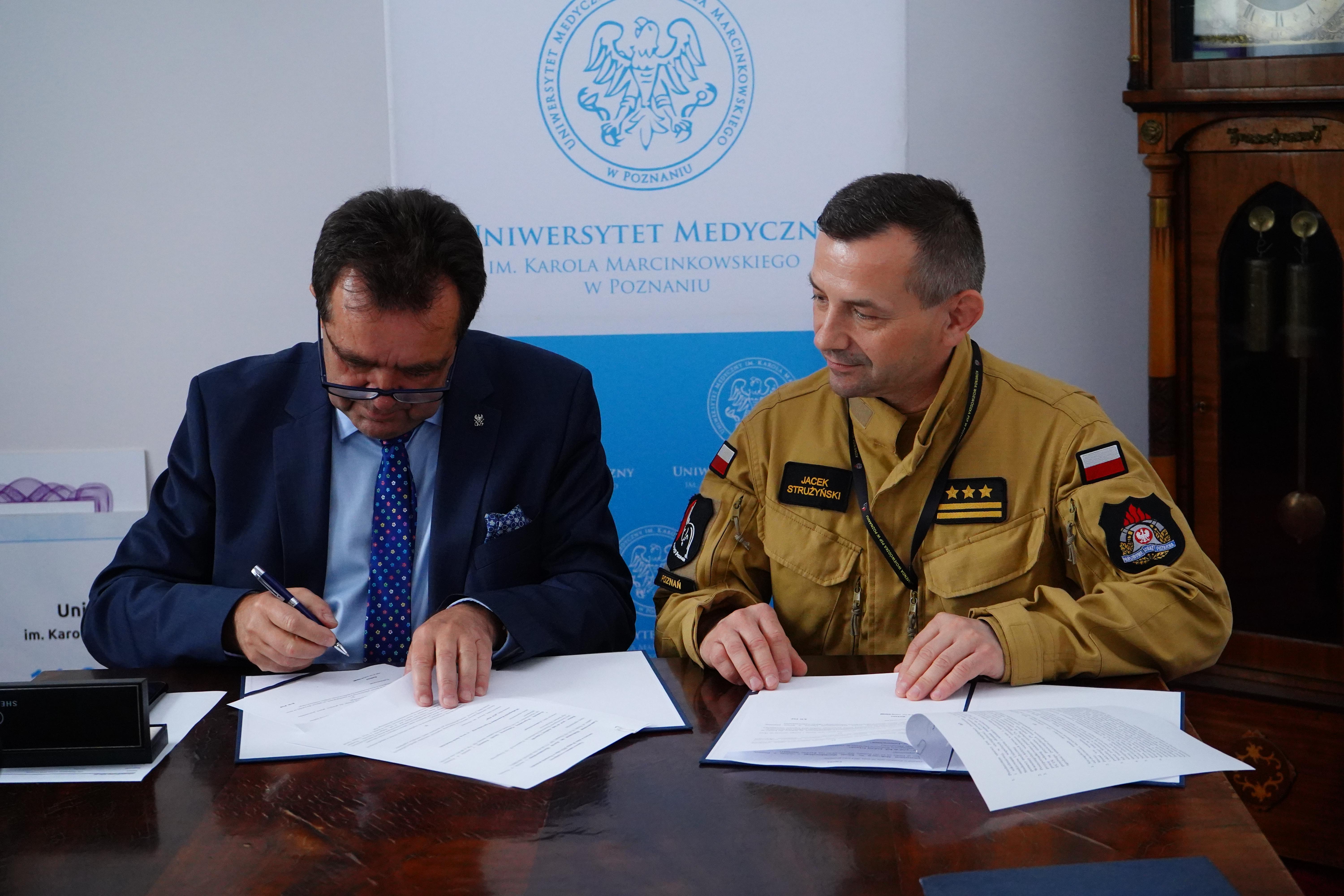 Podpisanie umowy o współpracy partnerskiej pomiędzy KW PSP w Poznaniu a Uniwersytetem Medycznym im. Karola Marcinkowskiego w Poznaniu