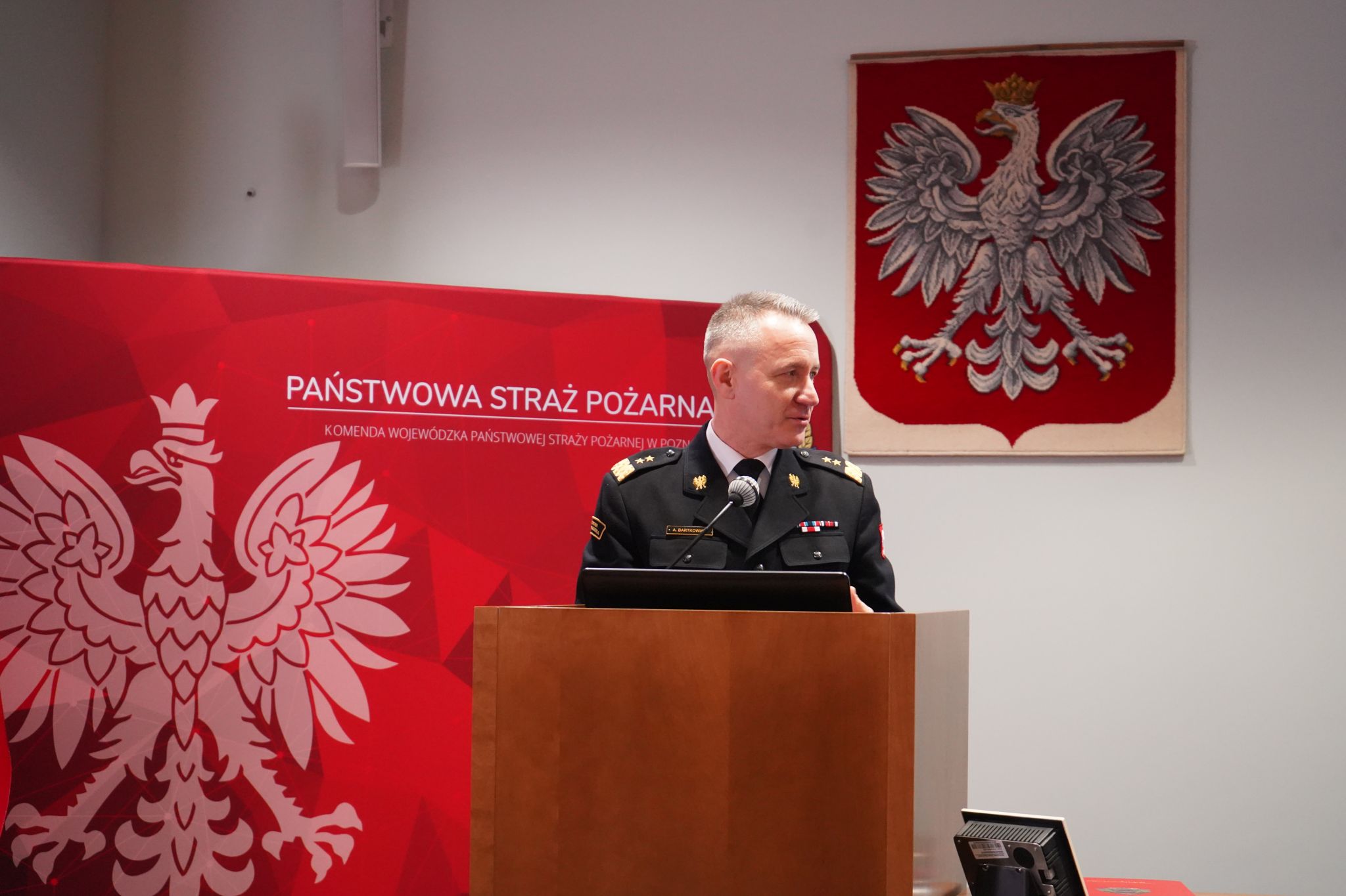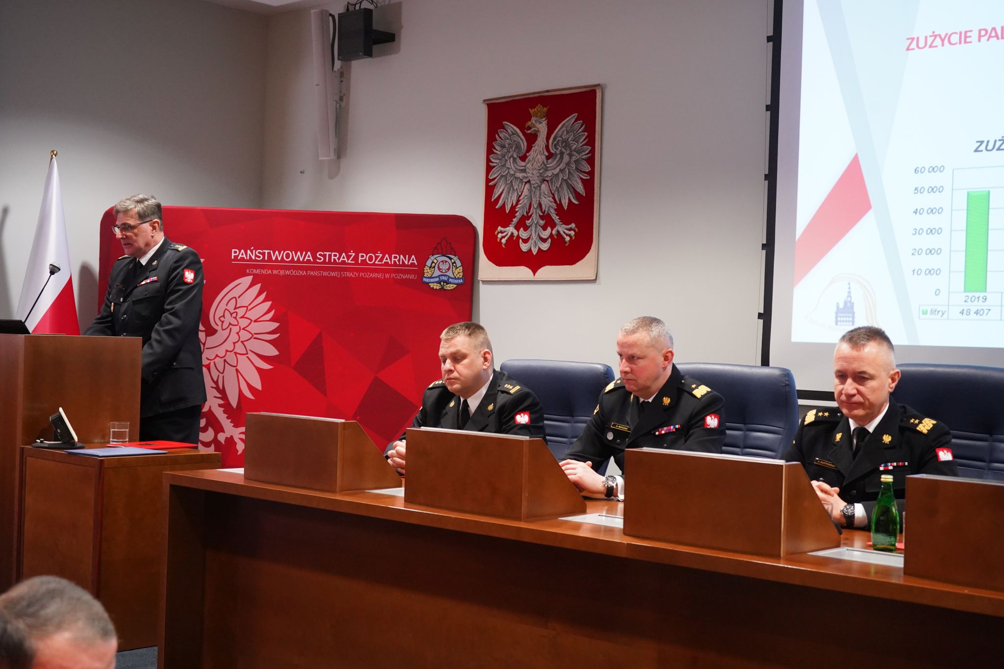 Wielkopolski Komendant Wojewódzki PSP nadbryg. Dariusz Matczak w swoim podsumowaniu podziękował Parlamentarzystom, Komendantowi Głównemu PSP, Wojewodzie oraz Pani Prezes za bieżące i codzienne wsparcie systemu ratowniczego. Komendant Matczak podkreślił również wzorcową współpracę z obecnym kierownictwem poznańskiej Szkoły Aspirantów PSP, czego dowodem jest m .in. wspólna narada roczna. Komendant Wojewódzki PSP w Poznaniu przedstawił najważniejsze, zrealizowane przez Państwową Straż Pożarną, zadania i podjęte działania.