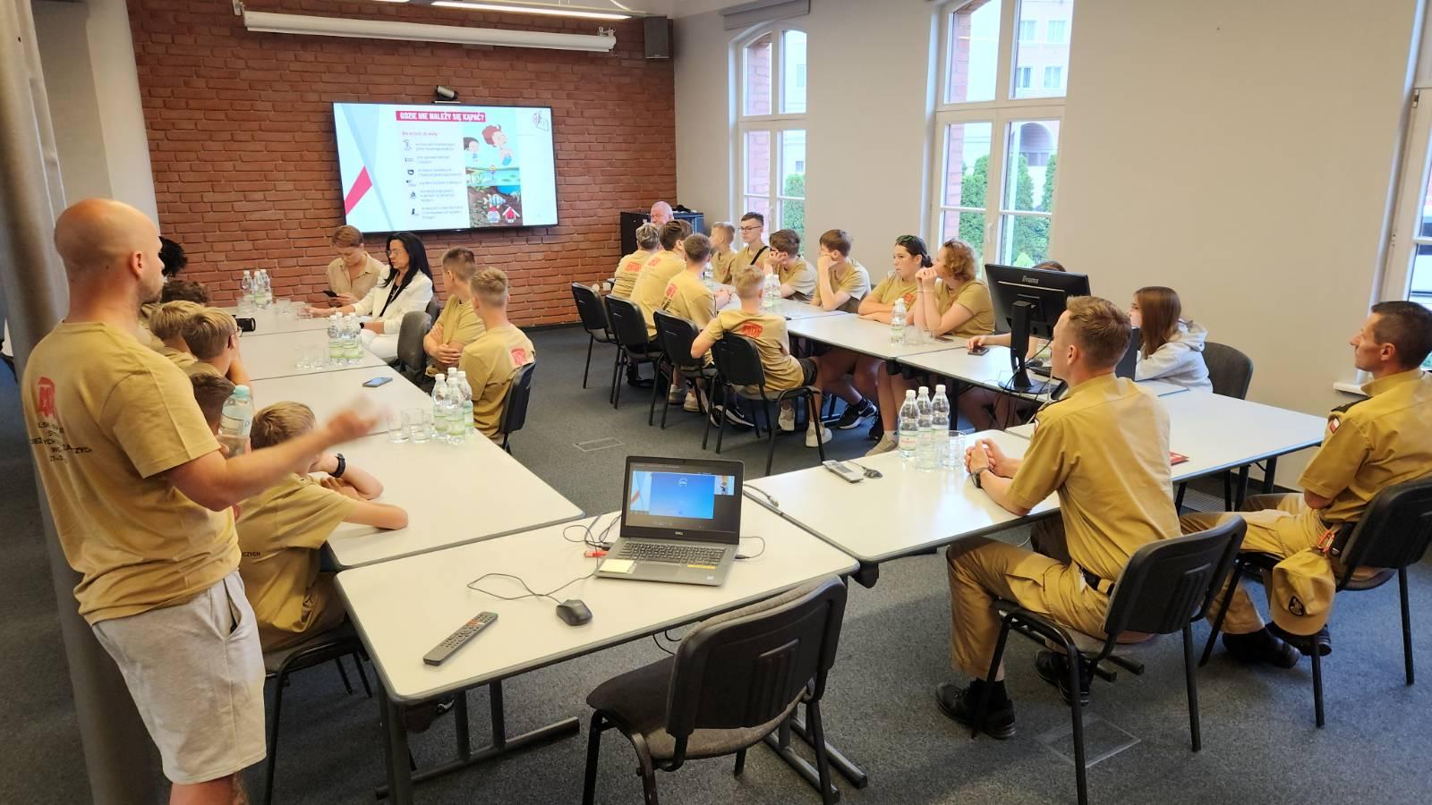 Obozowiczów oraz opiekunów powitał st. bryg. Tomasz Grelak, Zastępca Wielkopolskiego Komendanta Wojewódzkiego PSP wraz z kpt. Damianem Glapiakiem, Komendantem Powiatowym PSP w Wolsztynie. Uczestnikom obozu zostały przekazane podstawowe informacje dot. zadań realizowanych przez komendę wojewódzką PSP, zabytkowego obiektu komendy, jego historii i otoczenia, wygłoszono także krótką prelekcję na temat bezpiecznego wypoczynku nad wodą oraz na terenach leśnych. W dalszej części pobytu u poznańskich strażaków zwiedzający udali się do JRG 1 Komendy Miejskiej PSP w Poznaniu.