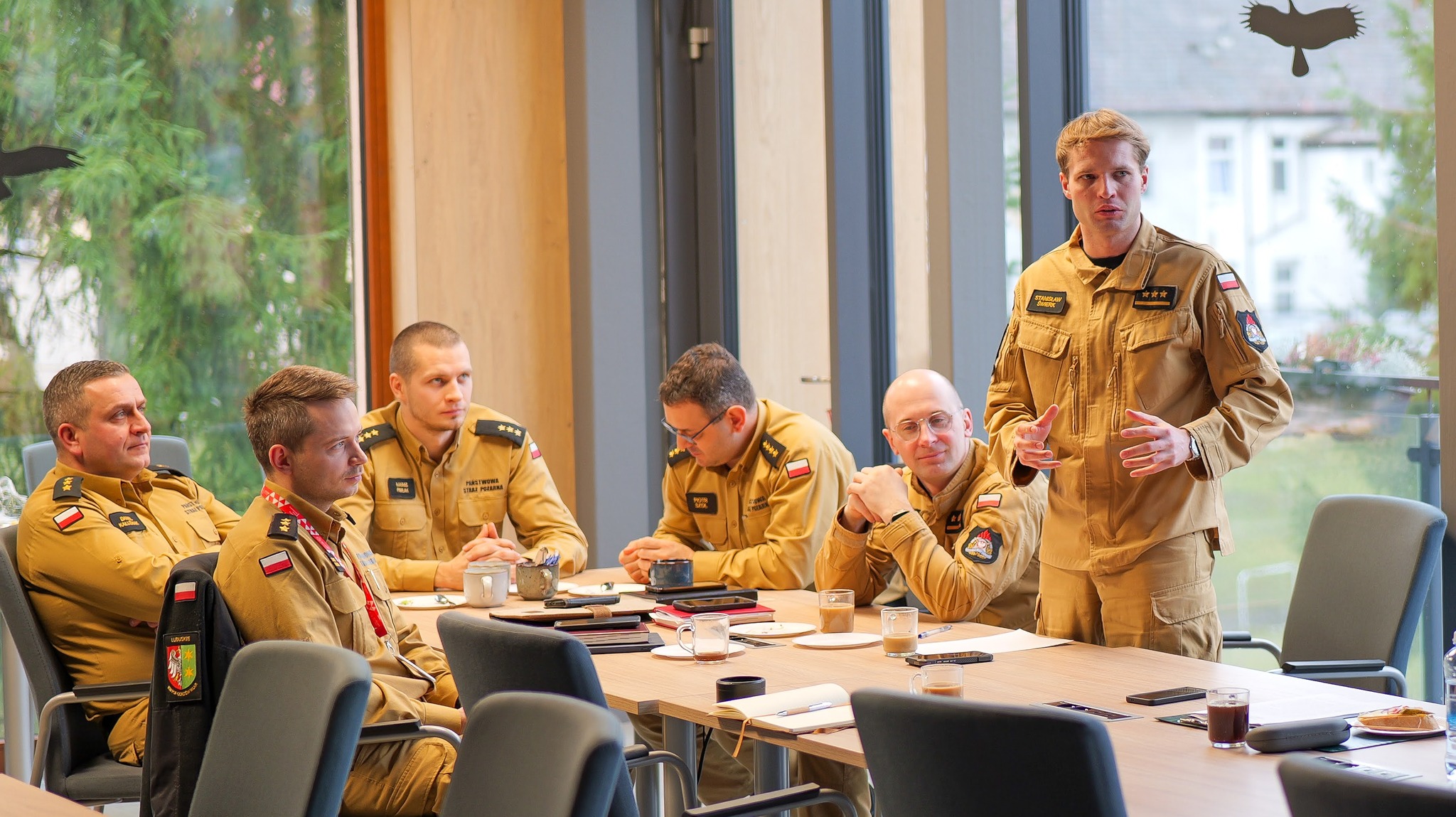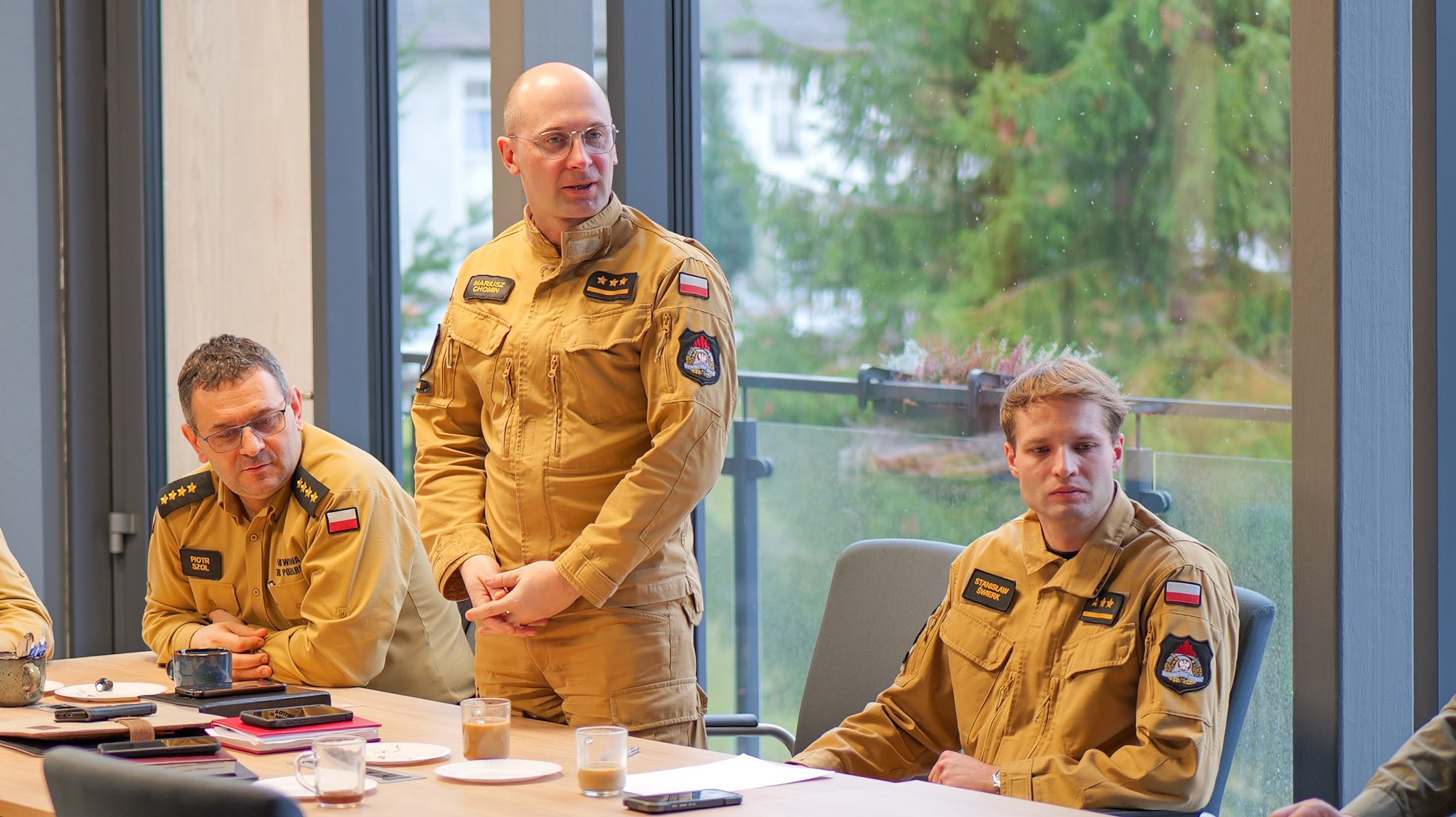 Komendę Wojewódzką Państwowej Straży Pożarnej w Poznaniu w spotkaniu reprezentowali: kpt. Stanisław Świerk z Wydziału Przeciwdziałania Zagrożeniom oraz kpt. Mariusz Chomin z Wydziału Planowania Operacyjnego.