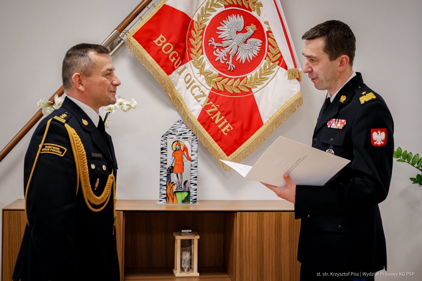 W środę 6 marca 2024 r. w siedzibie Komendy Głównej PSP, komendant główny PSP nadbryg. dr inż. Mariusz Feltynowski wręczył st. bryg. Jackowi Strużyńskiemu decyzję personalną powierzenia od 5 marca 2024 roku obowiązków Wielkopolskiego Komendanta Wojewódzkiego PSP.