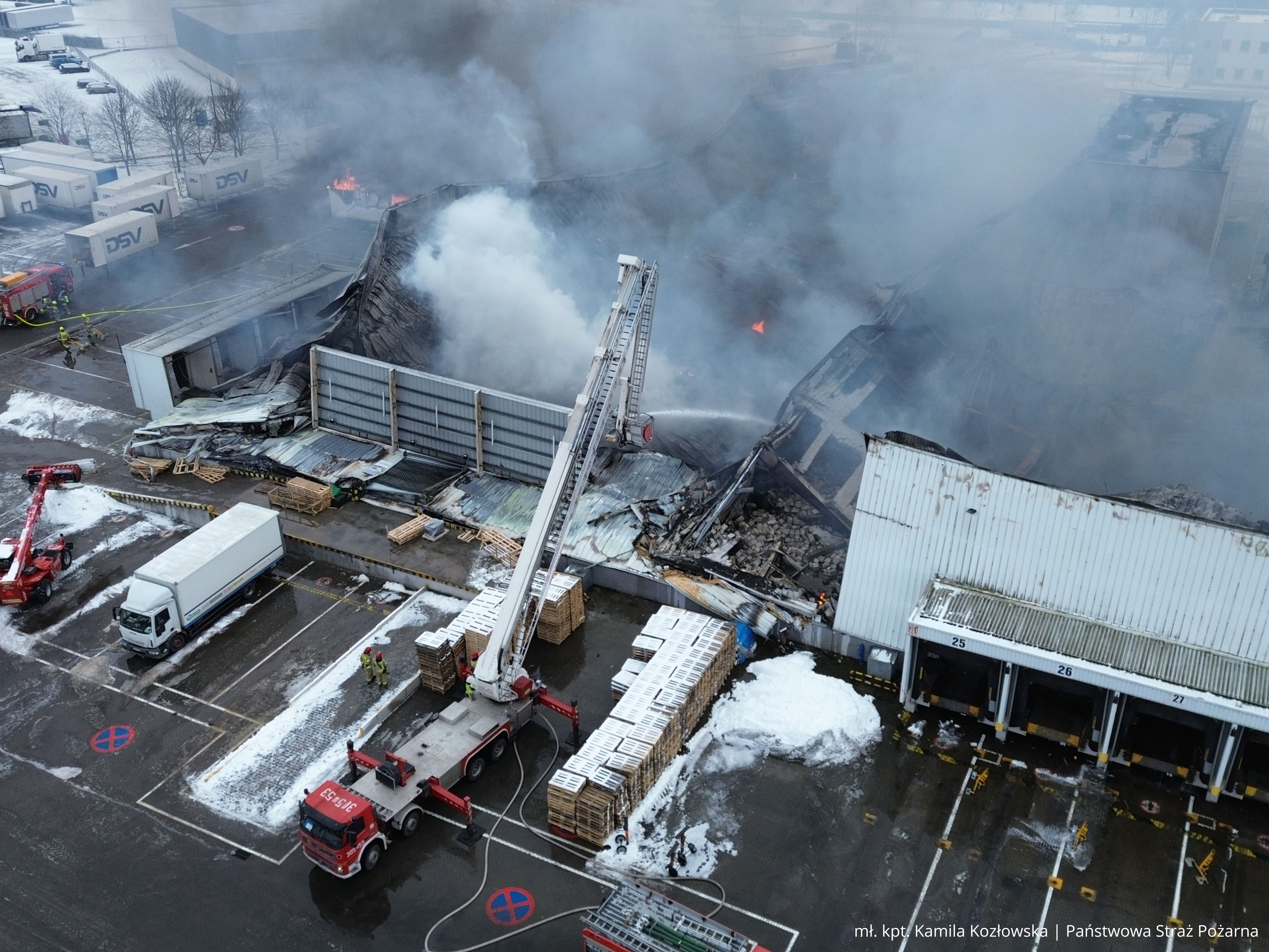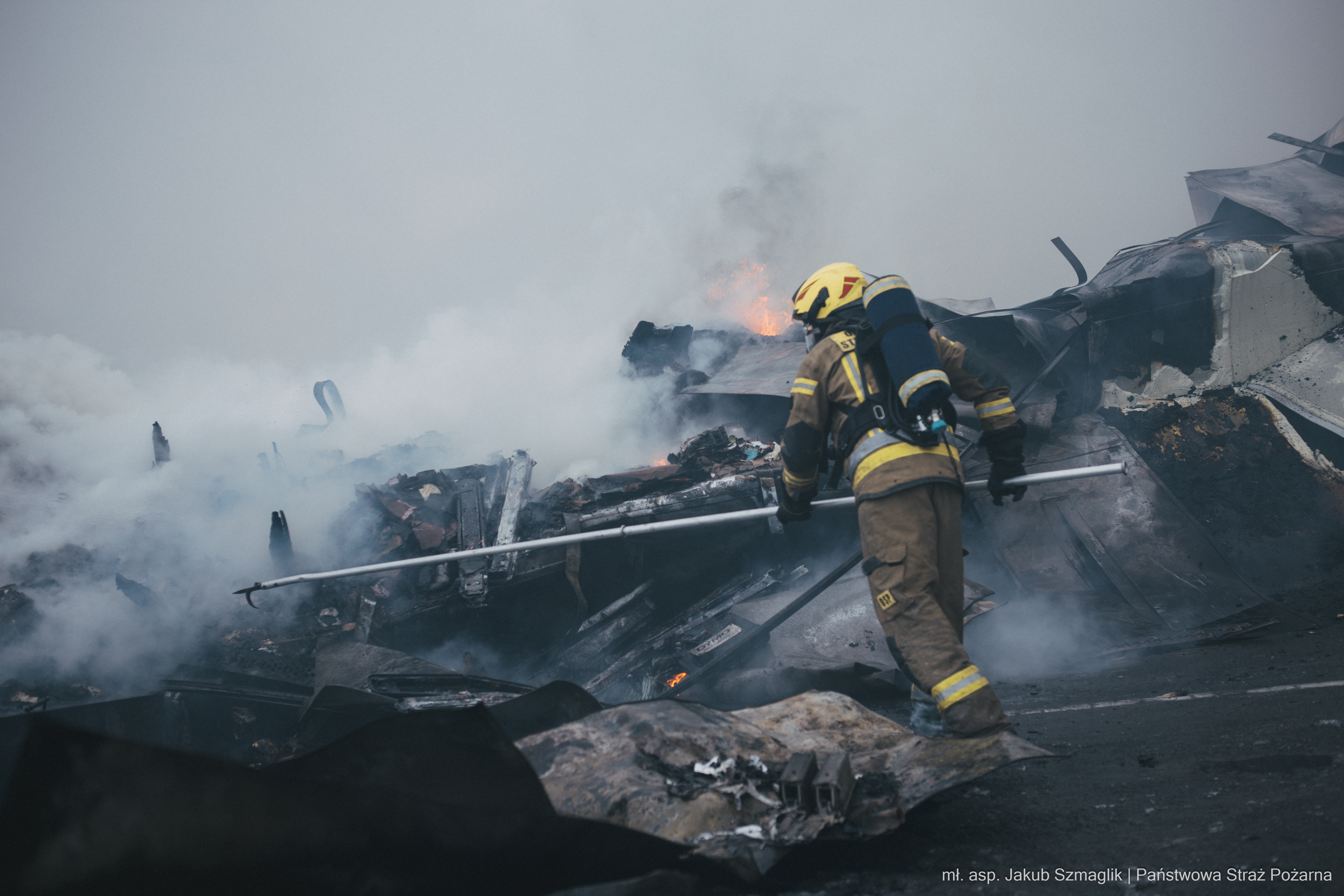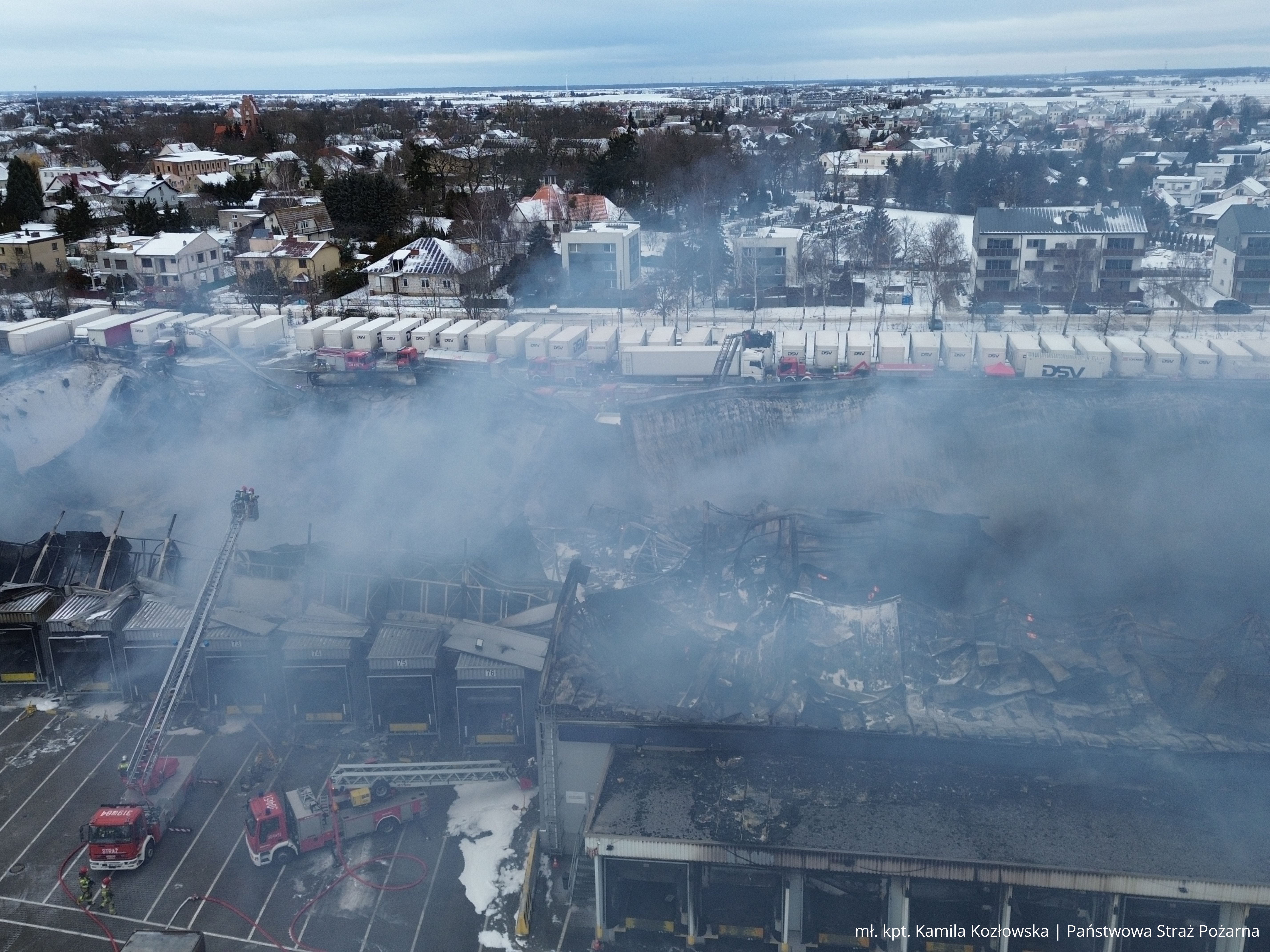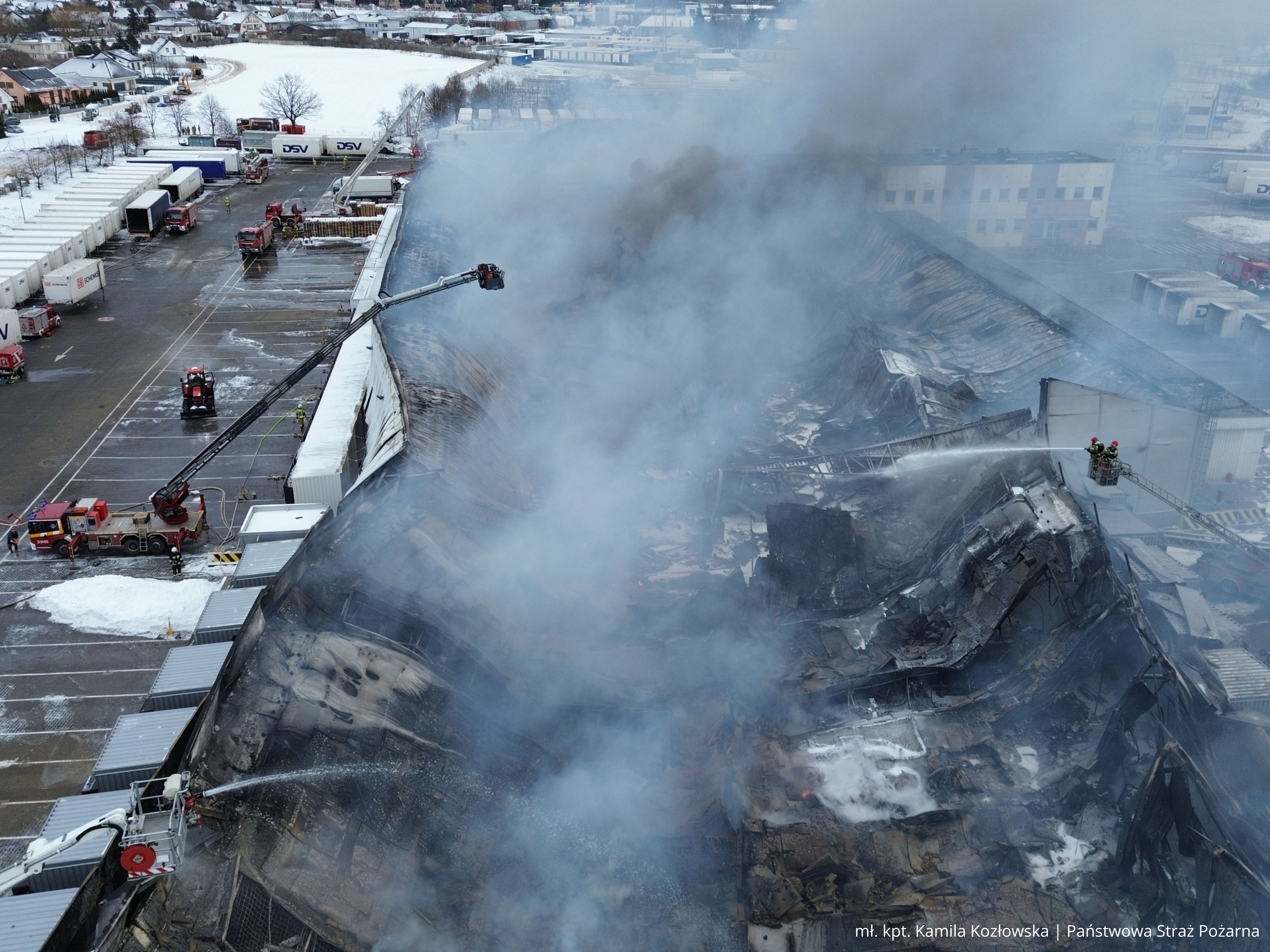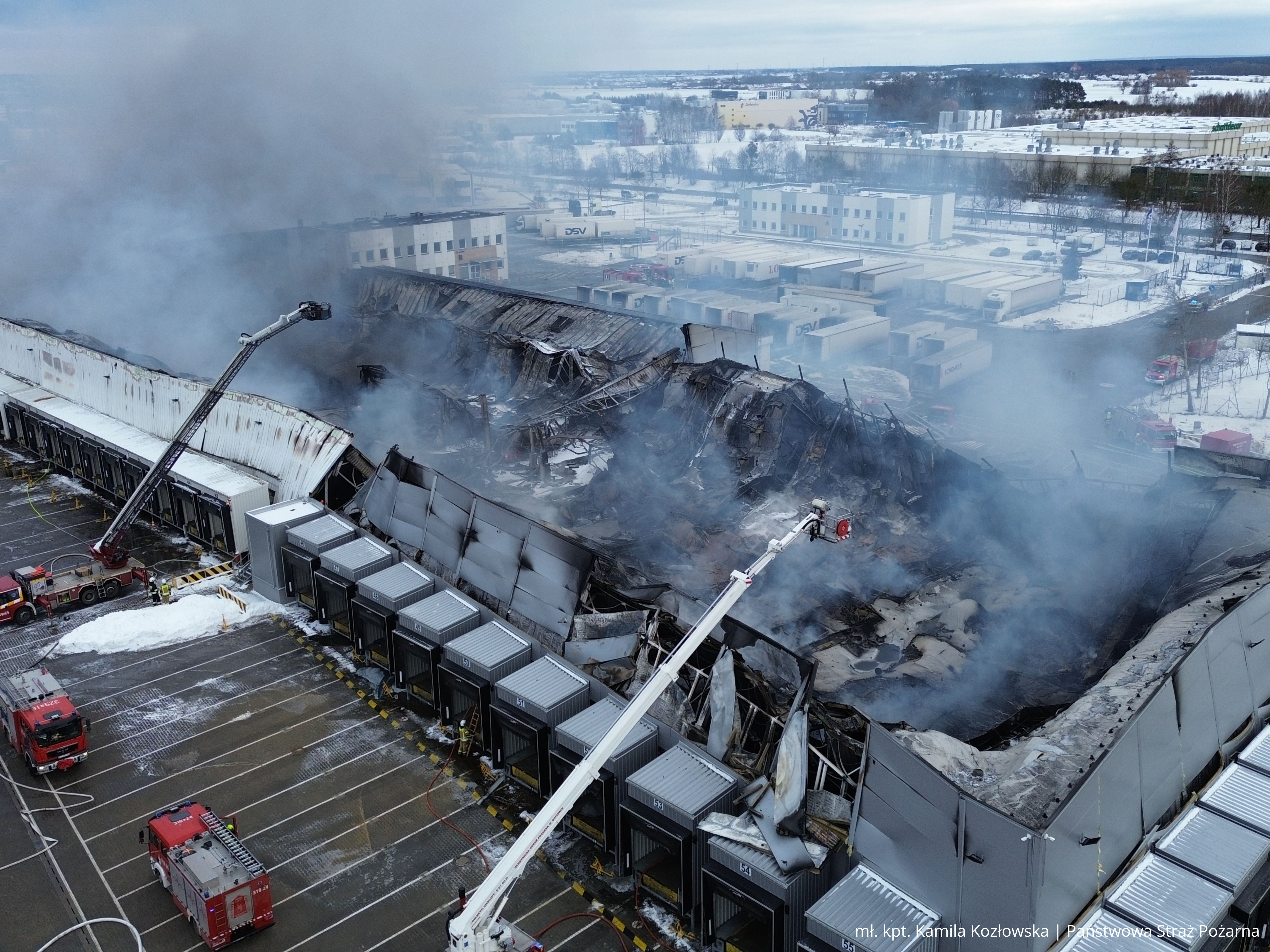 W poniedziałkowe przedpołudnie kilka zastępów straży pożarnej wciąż pozostało na miejscu zdarzenia, by dozorować obiekt objęty pożarem i eliminiować ewentualne zarzewia ognia. Przyczyny pożaru będą ustalane w toku dalszych czynności prowadzonych przez odpowiednie służby, w tym Policję oraz biegłego sądowego z dziedziny badania przyczyn wybuchu pożarów.