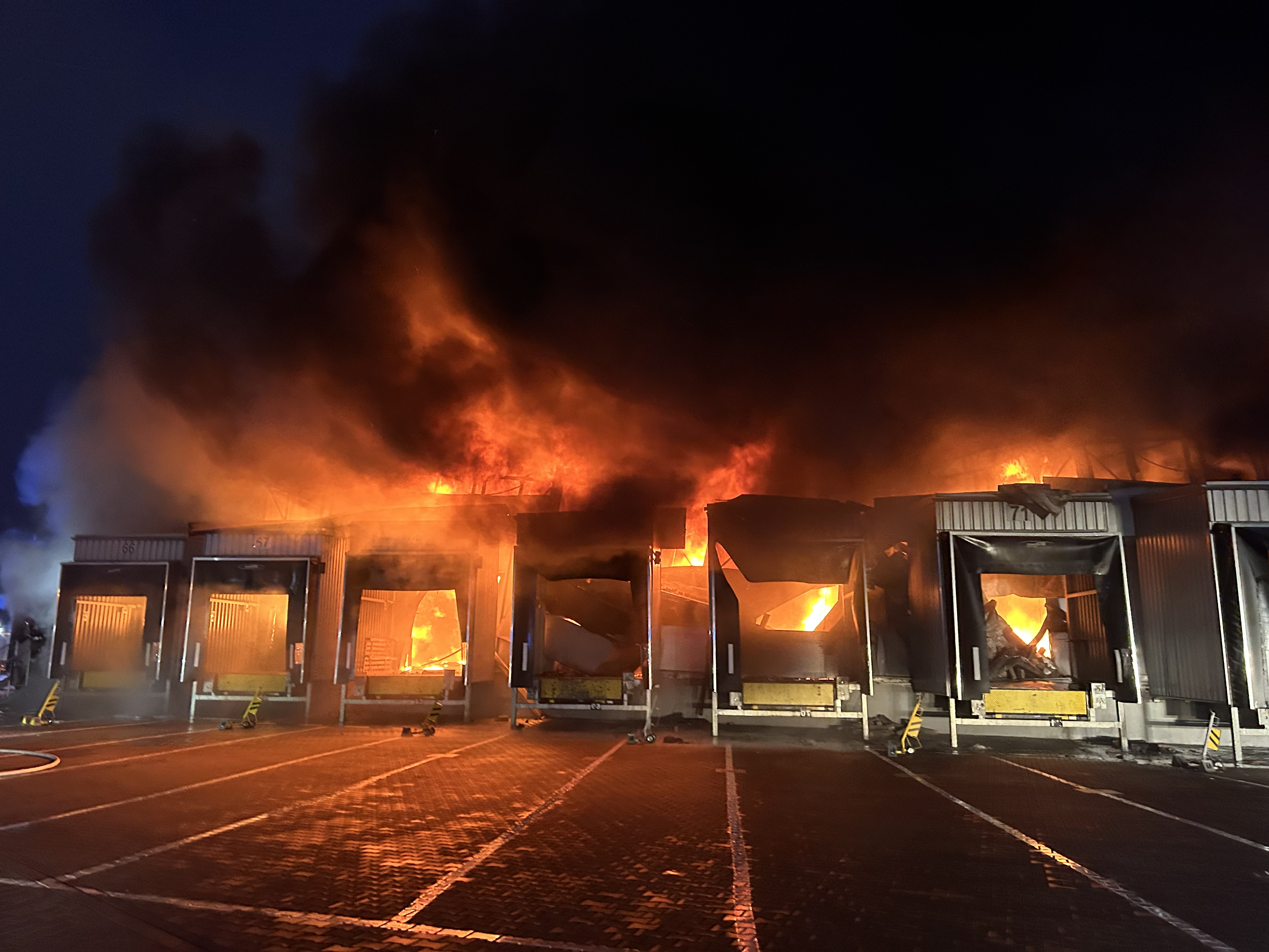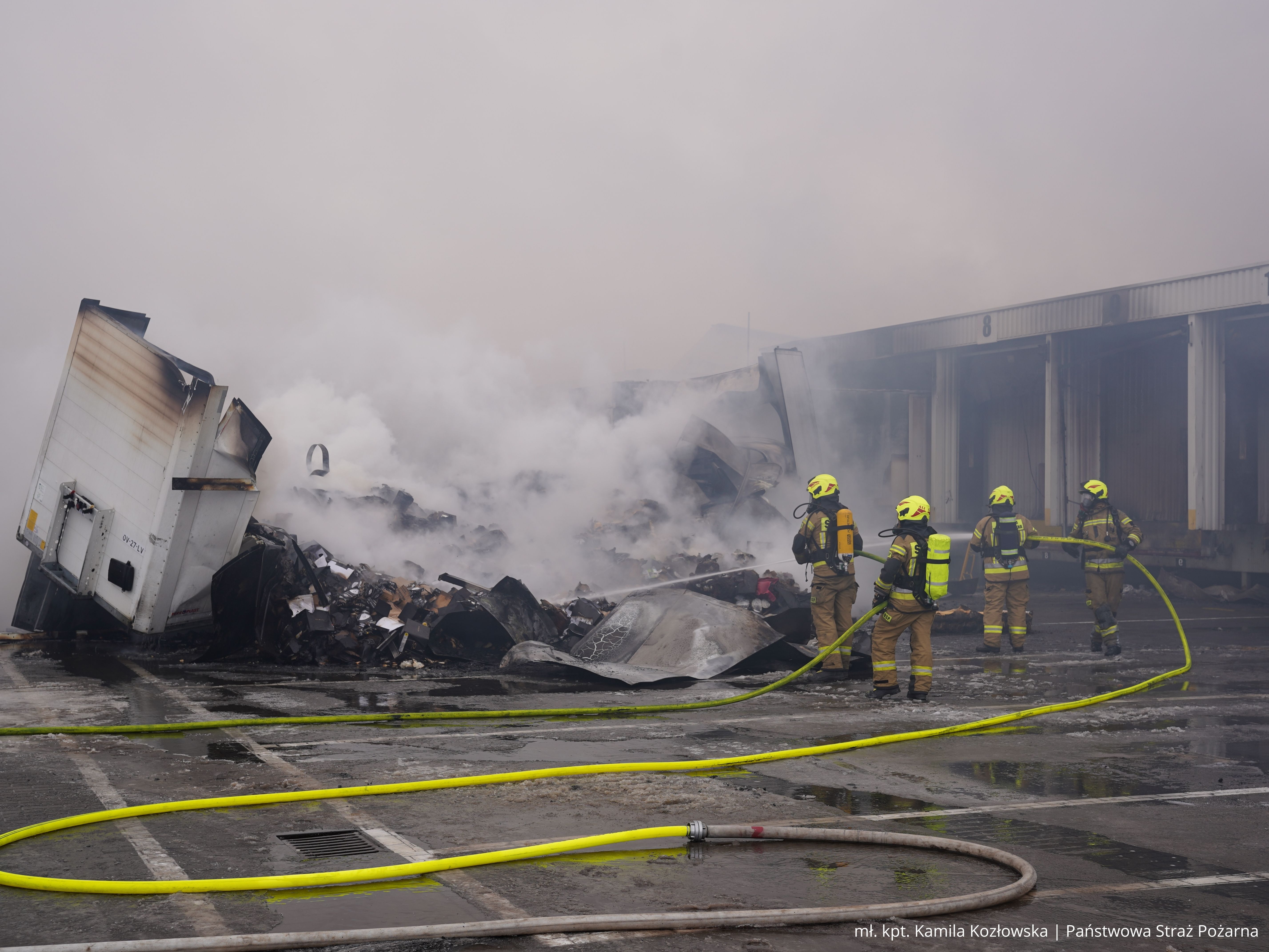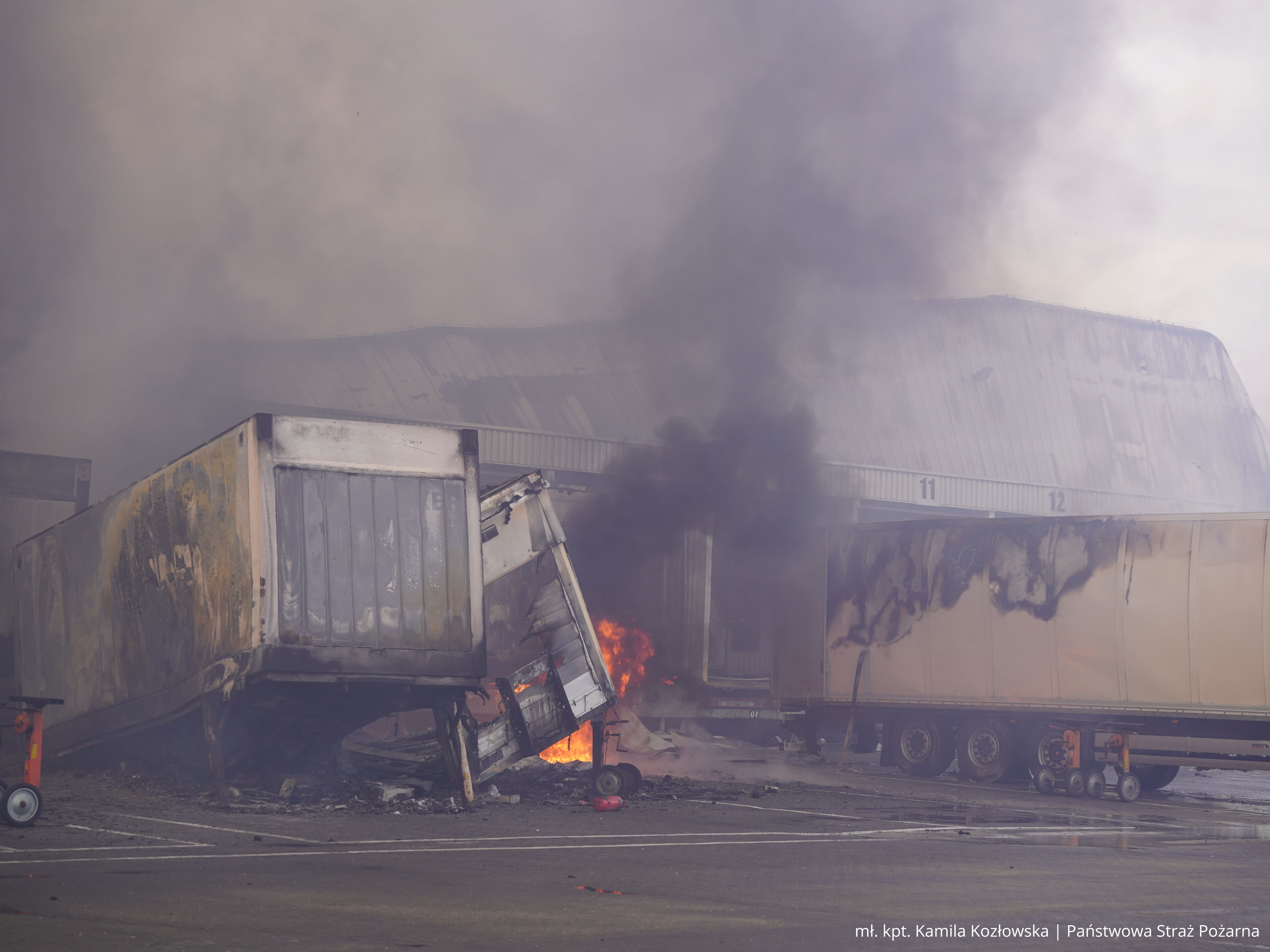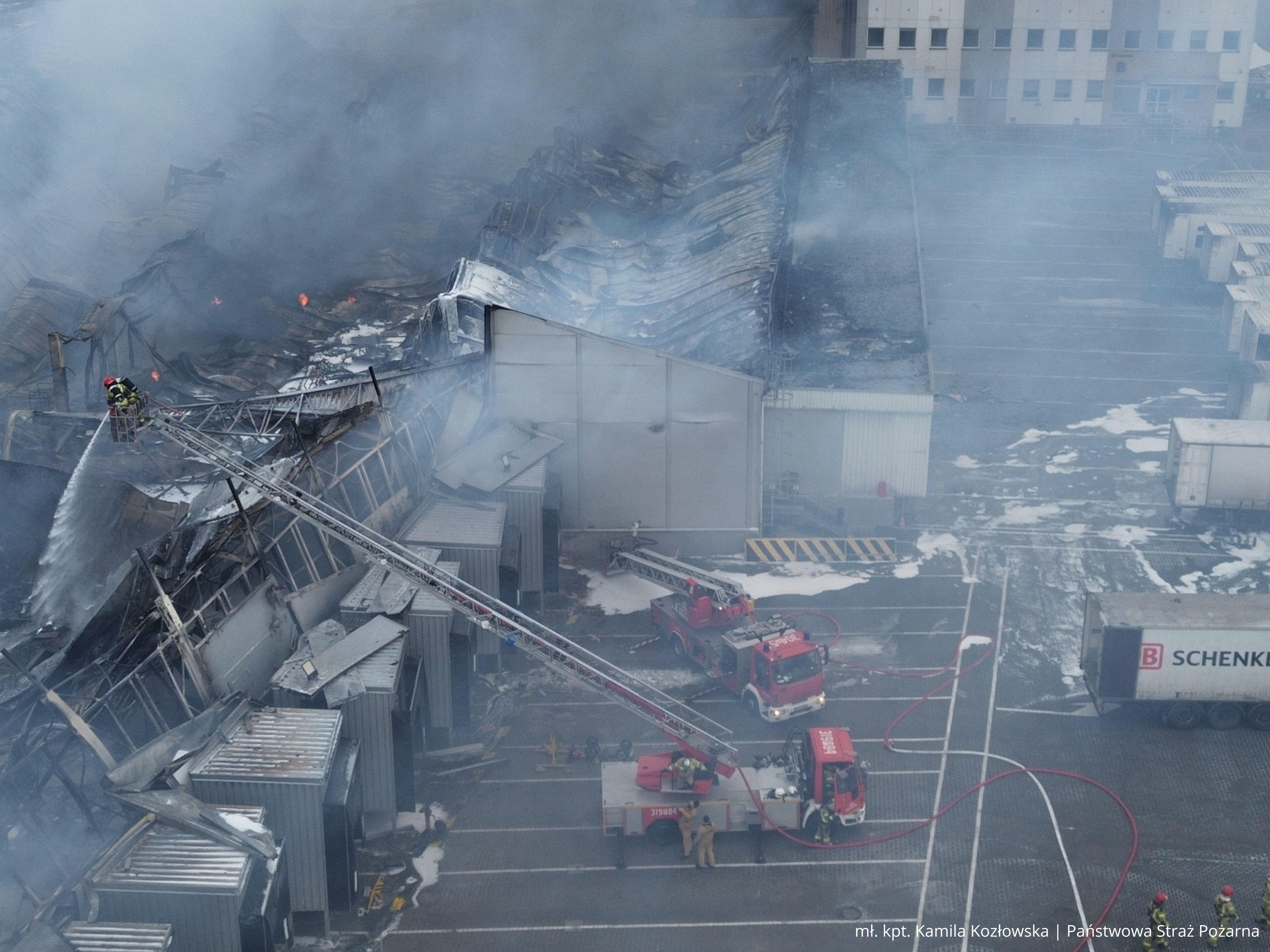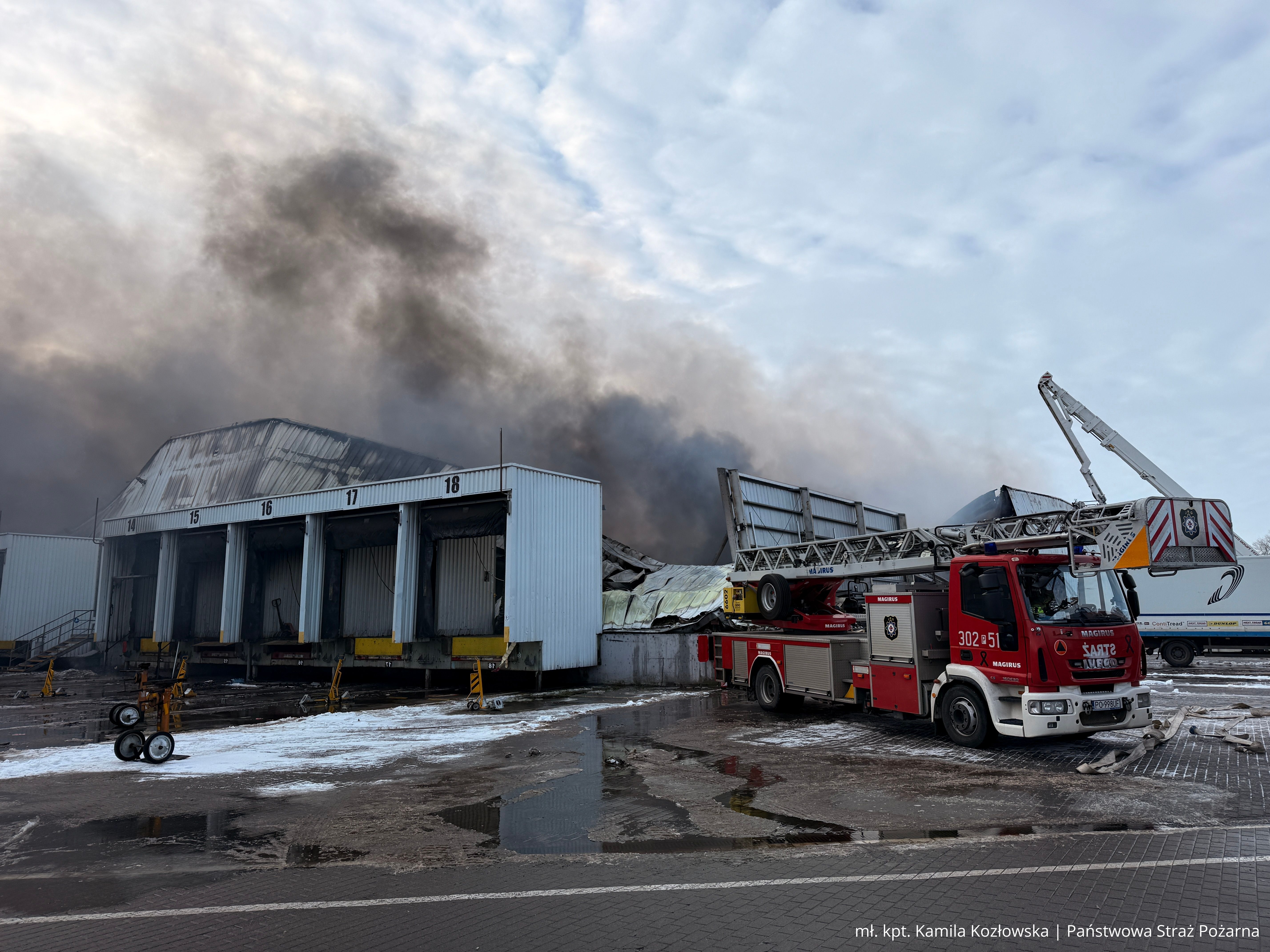 W momencie przybycia pierwszych zastępów straży pożarnej pożar był w pełni rozwinięty. Nie objął budynku administracyjno-biurowego, który stanowił odrębną strefę pożarową. Z informacji uzyskanych od ochrony obiektu oraz po przeprowadzonym rozpoznaniu wynikało, że w halach nie przebywały żadne osoby. Strażacy potwierdzili to podczas przeszukania budynku administracyjno-biurowego. W zdarzeniu nikt nie ucierpiał i nie było konieczności prowadzenia ewakuacji.