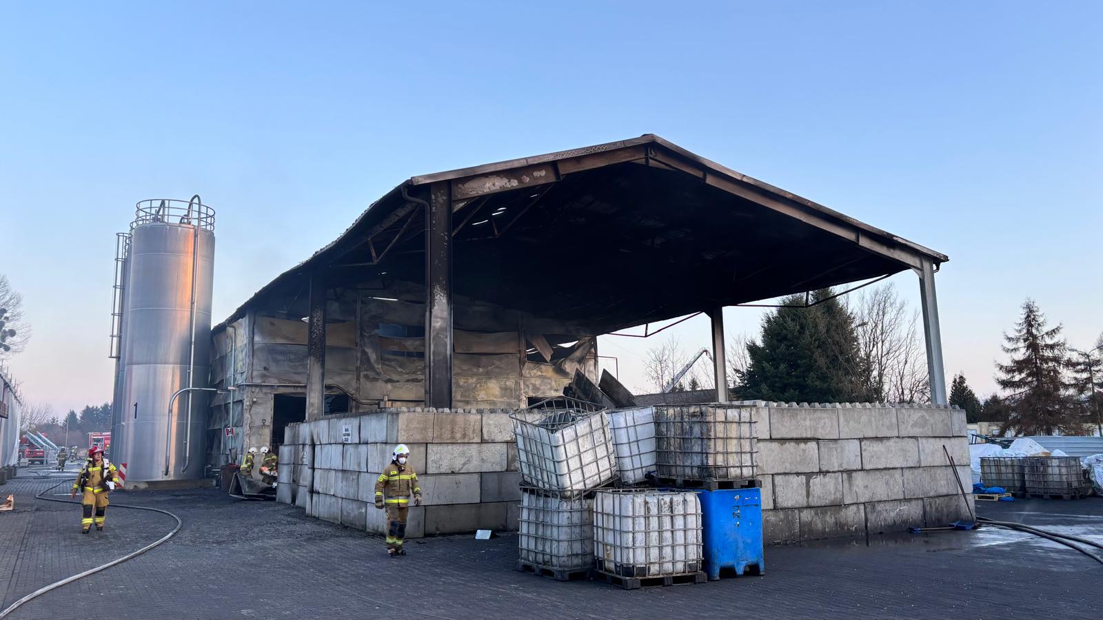 Po ugaszeniu ognia strażacy sprawdzili pogorzelisko kamerą termowizyjną. Skontrolowano również sąsiednie obiekty, w tym magazyn z pojemnikami zawierającymi chemię oraz namiot magazynowy. Na miejscu pozostawiono zastęp straży pożarnej do północy w celu nadzorowania pogorzeliska.