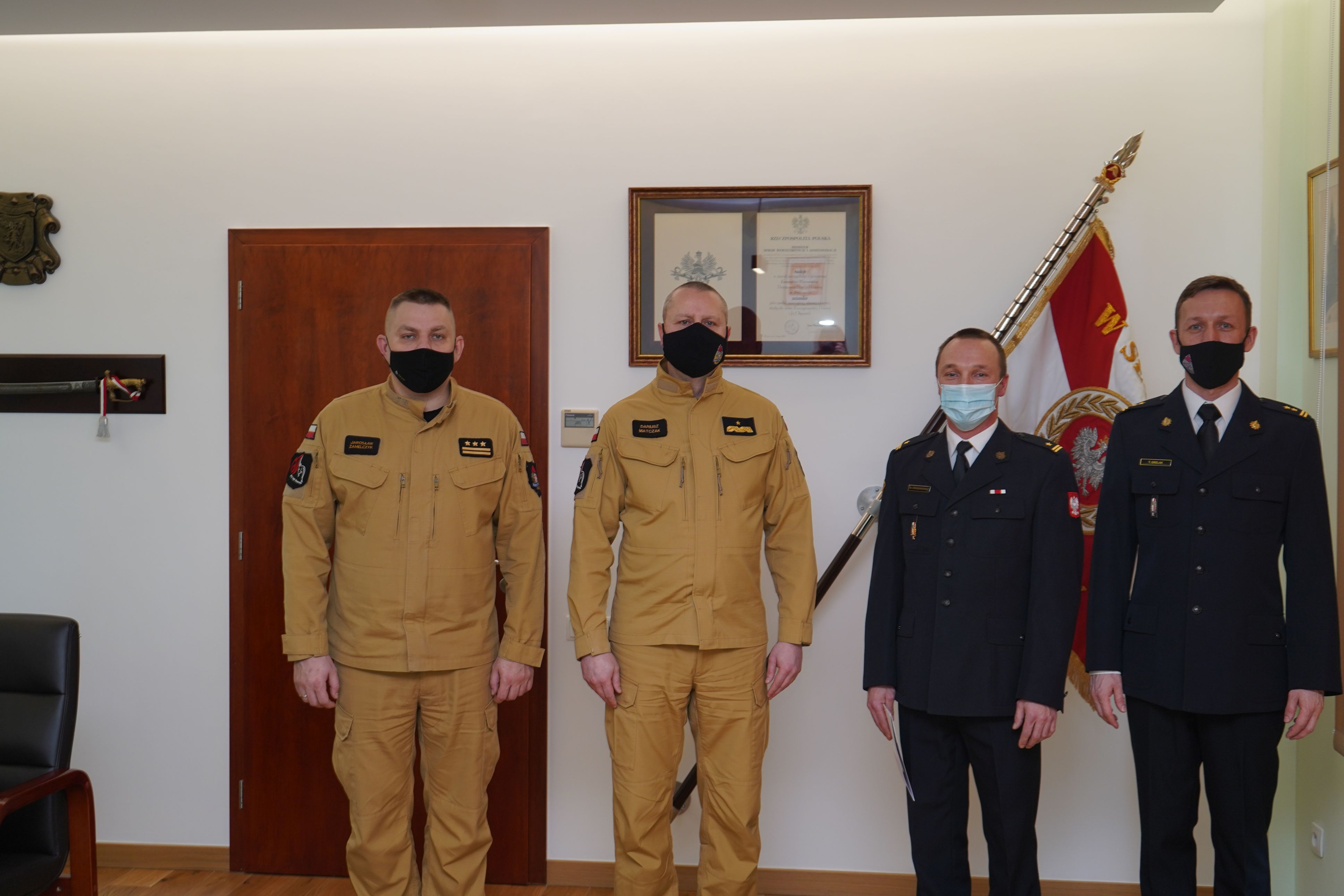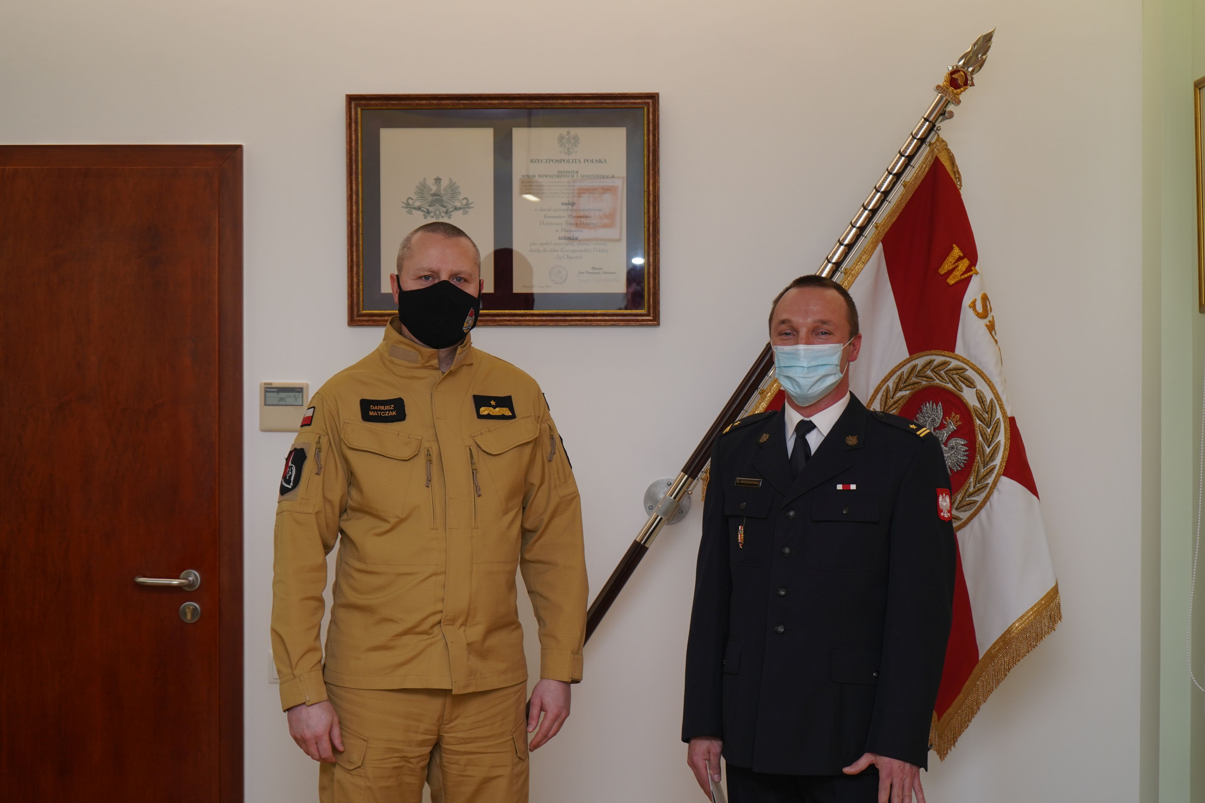 Wielkopolski komendant Wojewódzki PSP nadbryg. Dariusz Matczak w obecności zastępcy komendanta wojewódzkiego PSP st. bryg. Jarosława Zamelczyka oraz naczelnika Wydziału Operacyjnego bryg. Tomasza Grelaka, wręczył funkcjonariuszowi decyzję o przejściu na emeryturę.