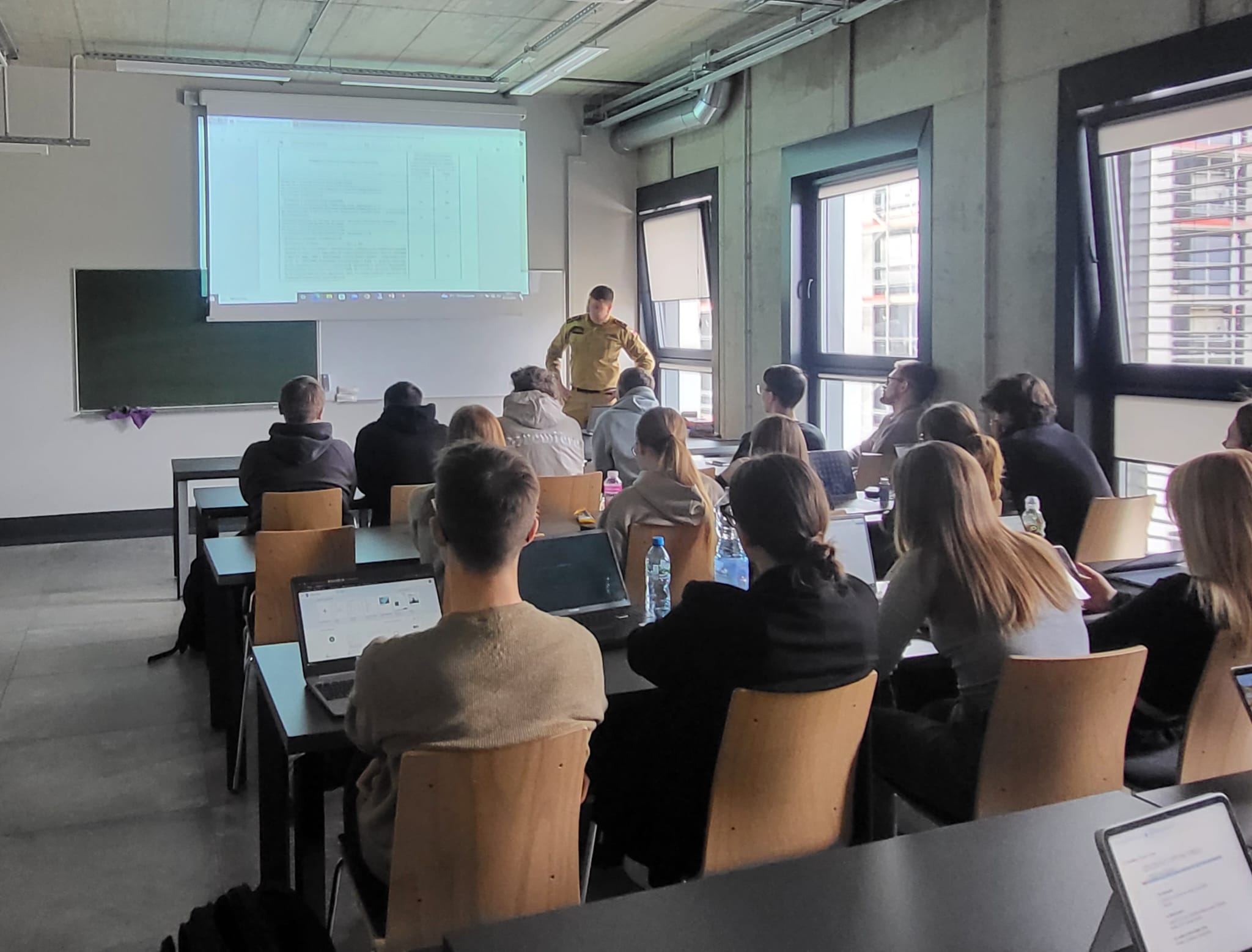 W dniu 7 kwietnia br. młodszy specjalista Wydziału Przeciwdziałania Zagrożeniom Komendy Wojewódzkiej Państwowej Straży Pożarnej w Poznaniu asp. Łukasz Kościółkowski wygłosił prelekcję dotyczącą: „Zakładów stwarzających zagrożenie wystąpienia poważnej awarii przemysłowej” dla studentów 3-go roku studiów na Wydziale Inżynierii Zarządzania Politechniki Poznańskiej.