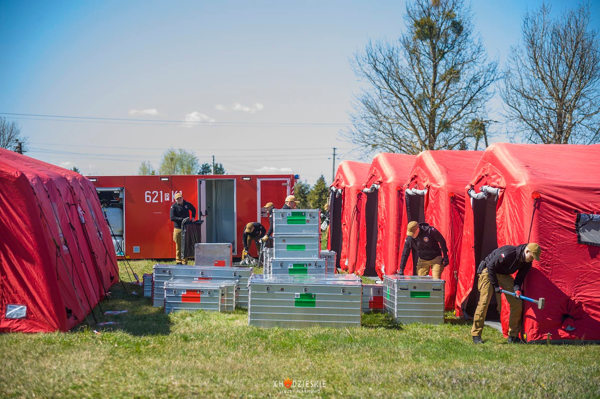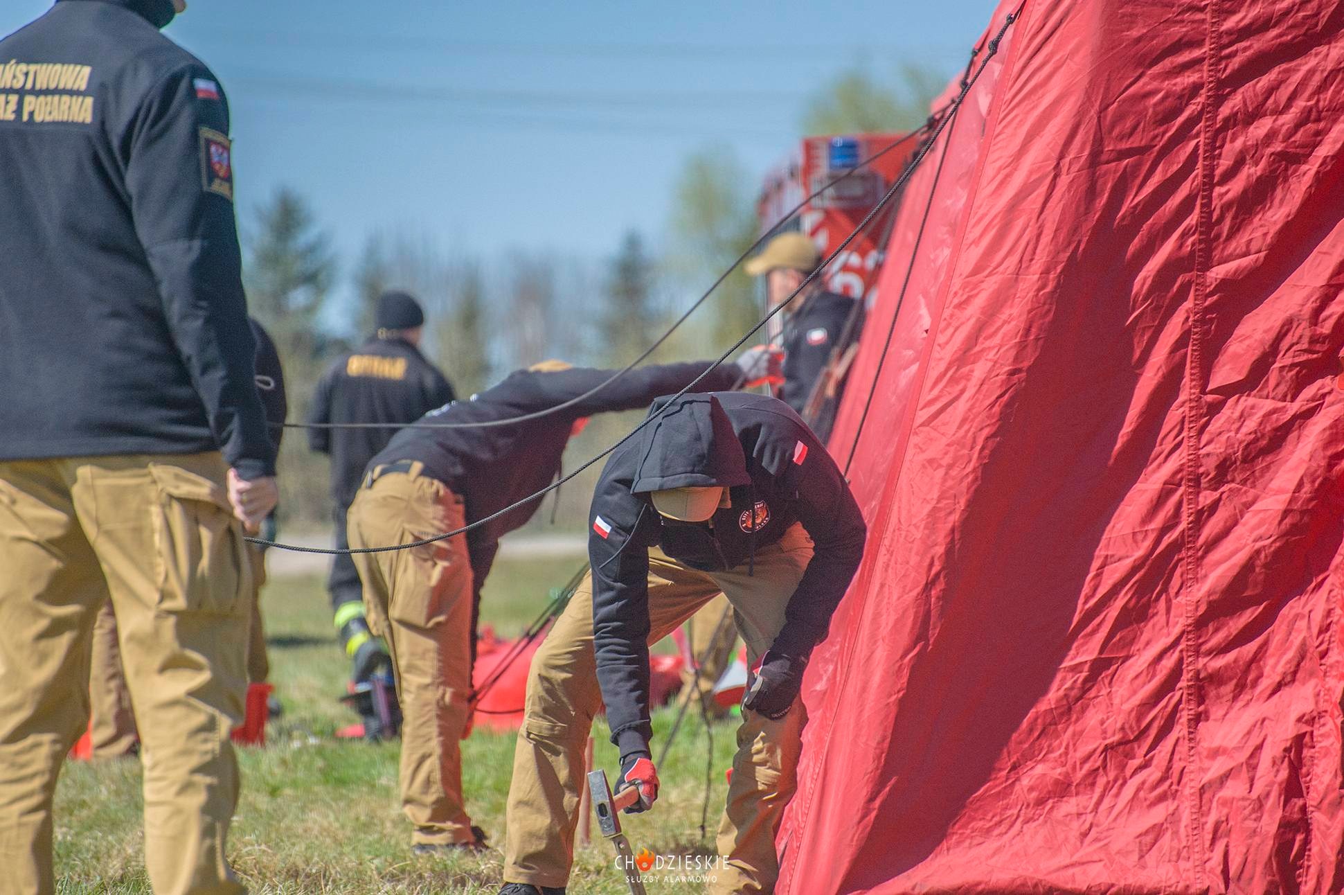 Zgrupowanie rozpoczęło się od tradycyjnej odprawy organizacyjnej na terenie Komendy Powiatowej Państwowej Straży Pożarnej w Chodzieży. Podczas niej sprawdzono dokumentację niezbędną do ewentualnych działań zagranicznych oraz dokonano kontroli wyposażenia i sprzętu wykorzystywanego przez moduł. Następnie strażacy przemieścili się do miejscowości Stróżewo, gdzie przy miejscowej remizie Ochotniczej Straży Pożarnej rozpoczęli budowę bazy operacji.