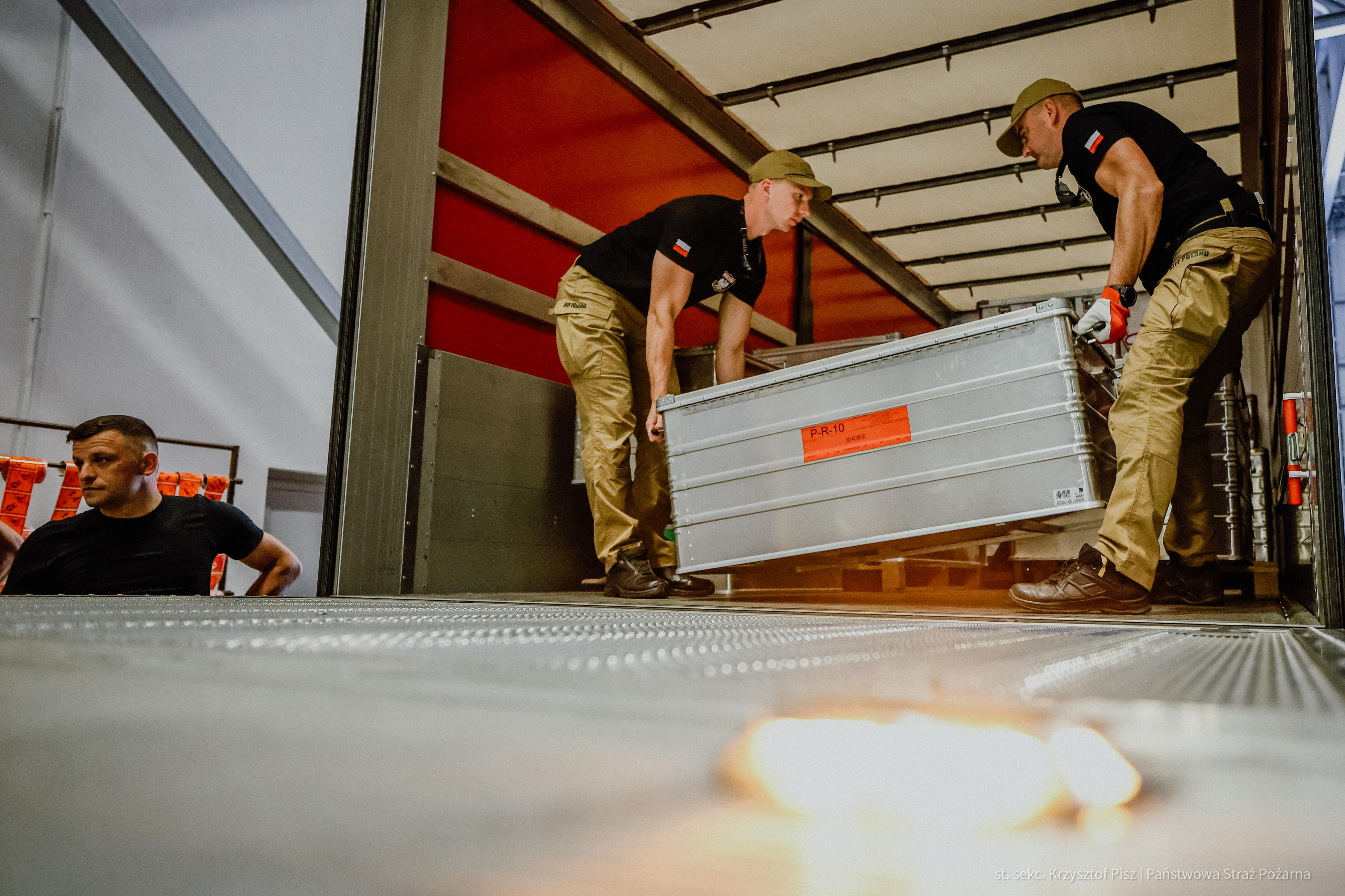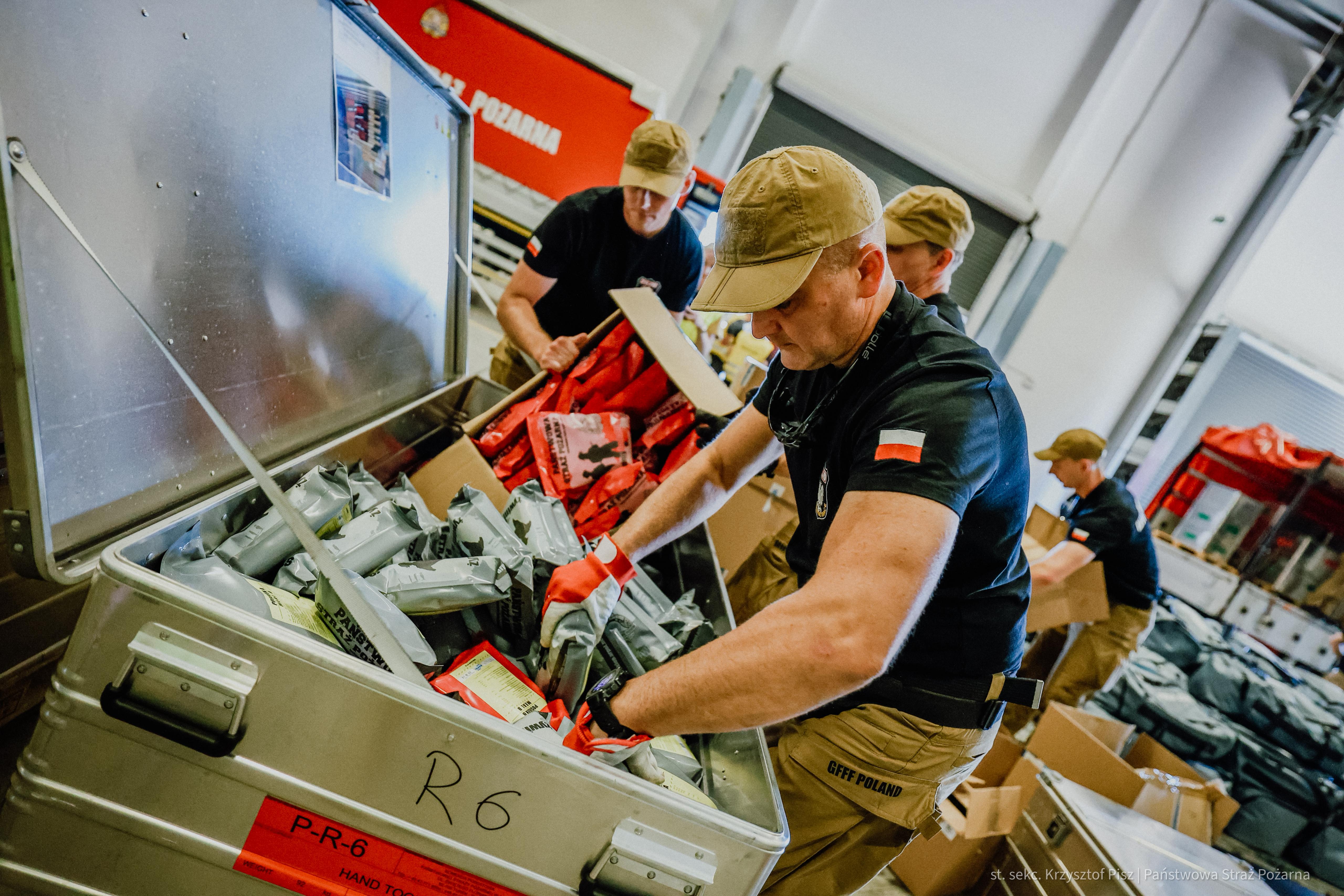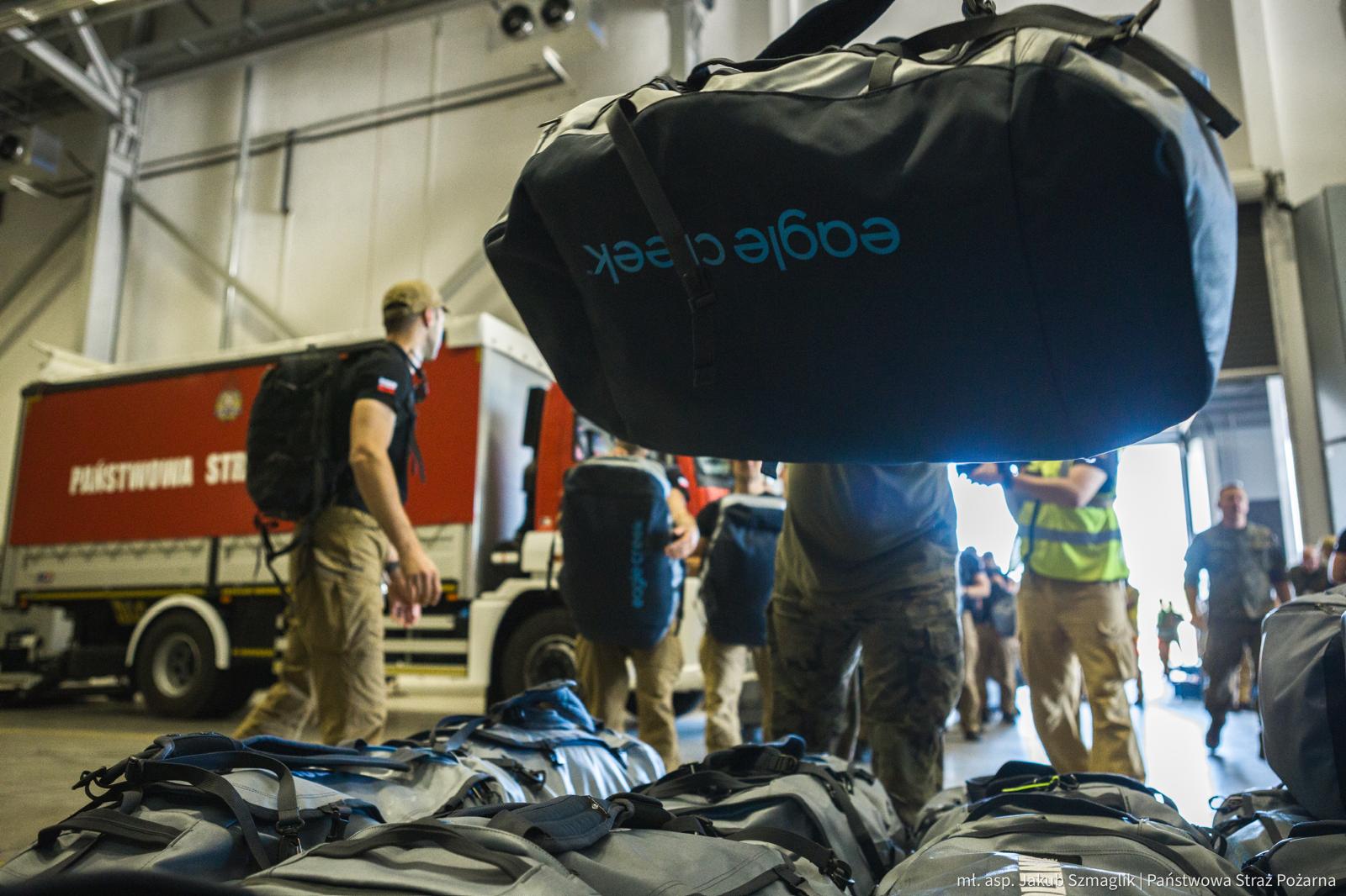 Strażacy docierają do rejonu koncentracji. Trwa odprawa, po której moduł będzie gotowy do załadowania wyposażenia na samolot transportowy będący na wyposażeniu 33. Bazy Lotnictwa Transportowego w Powidzu. Grupa ratownicza miałaby zostać przetransportowana drogą powietrzną w docelowe miejsce prowadzenia działań ratowniczych.
