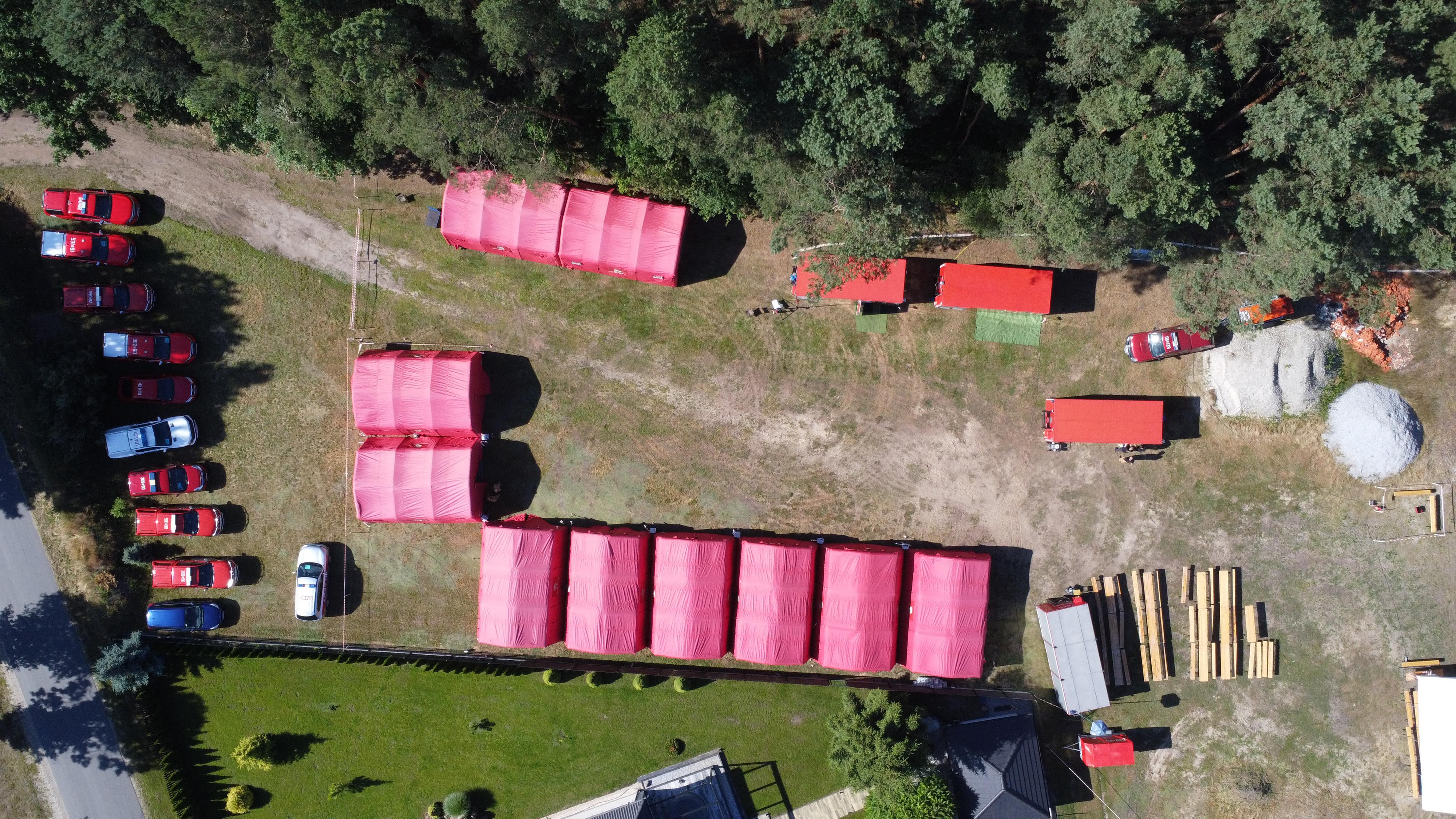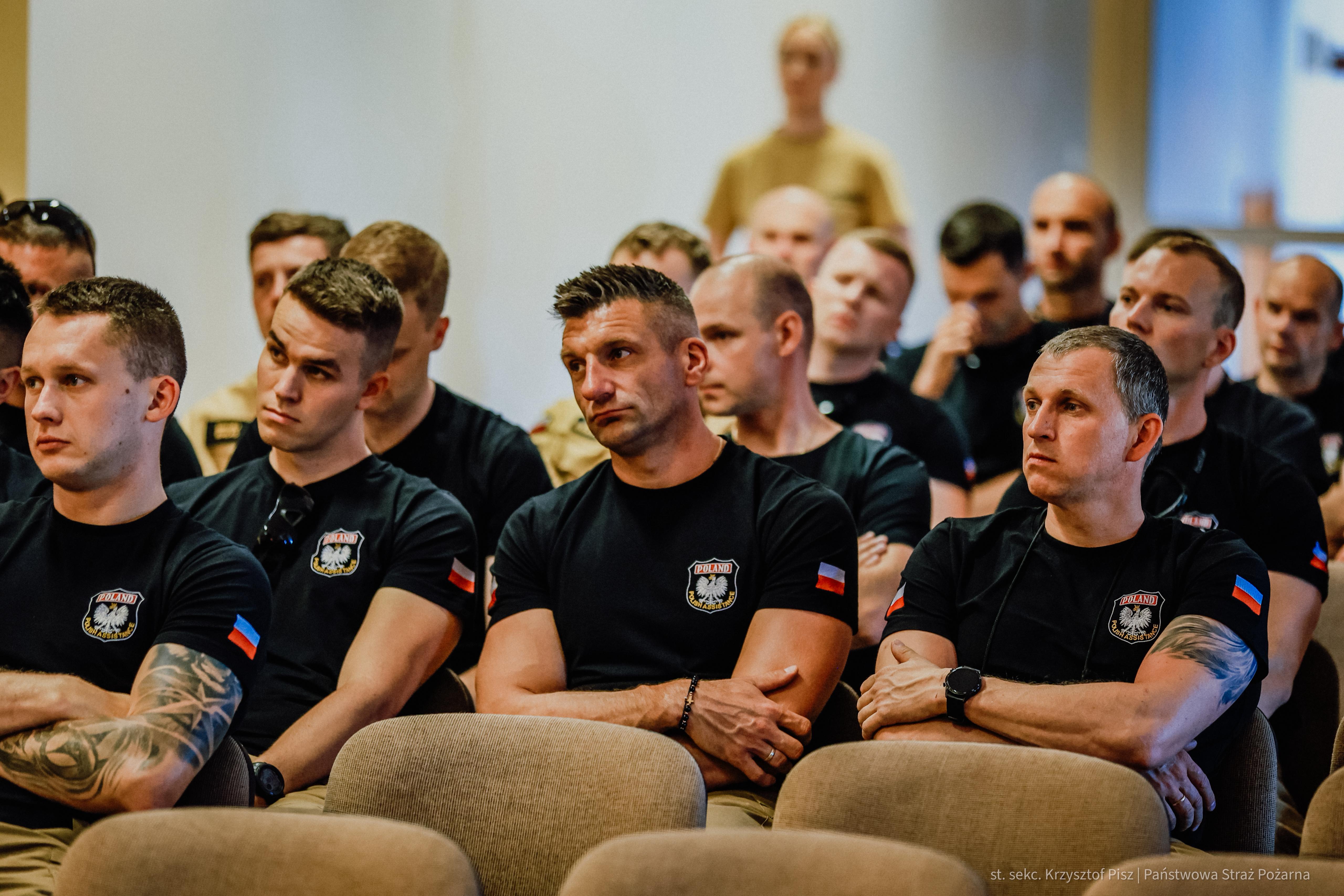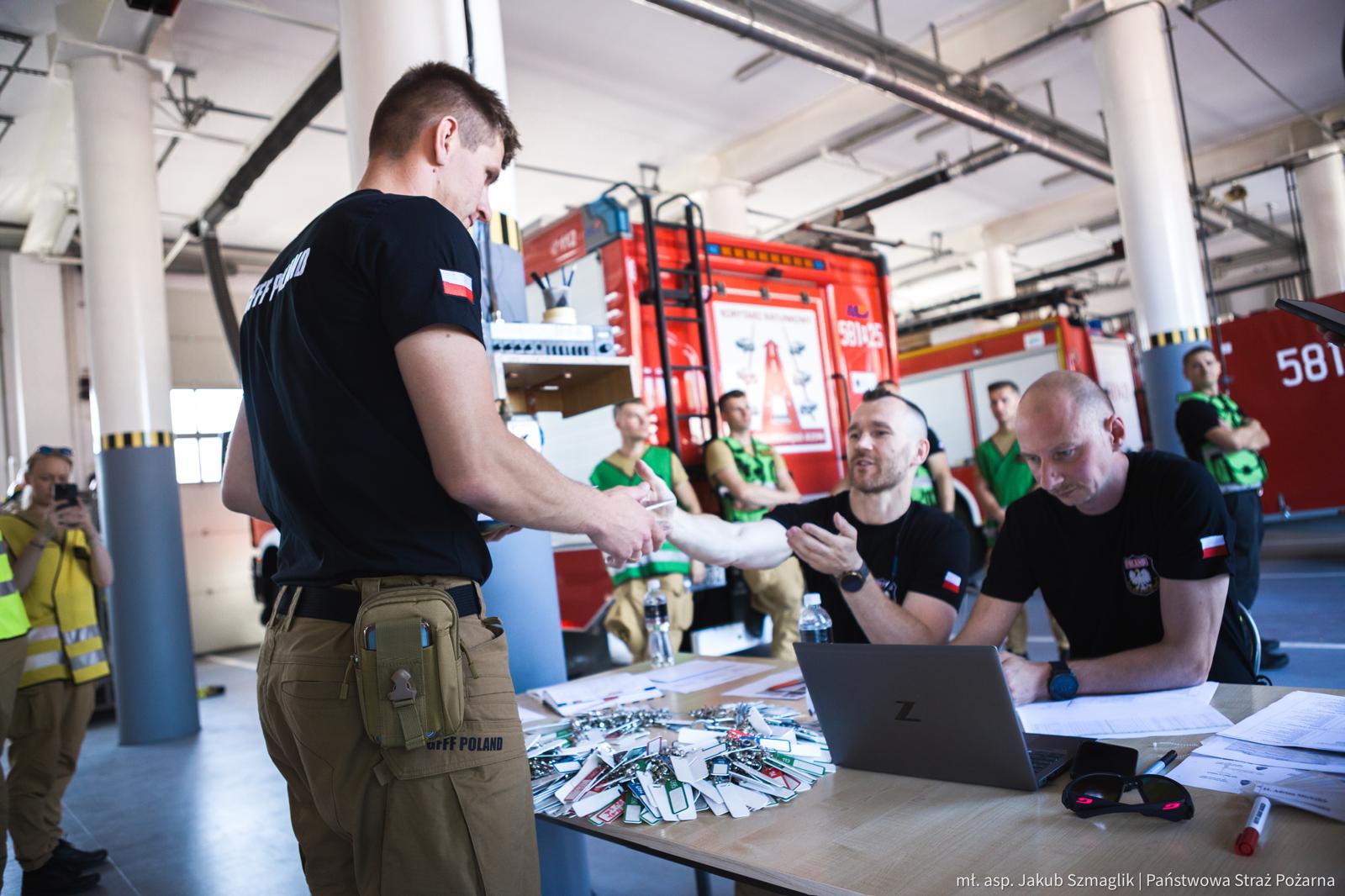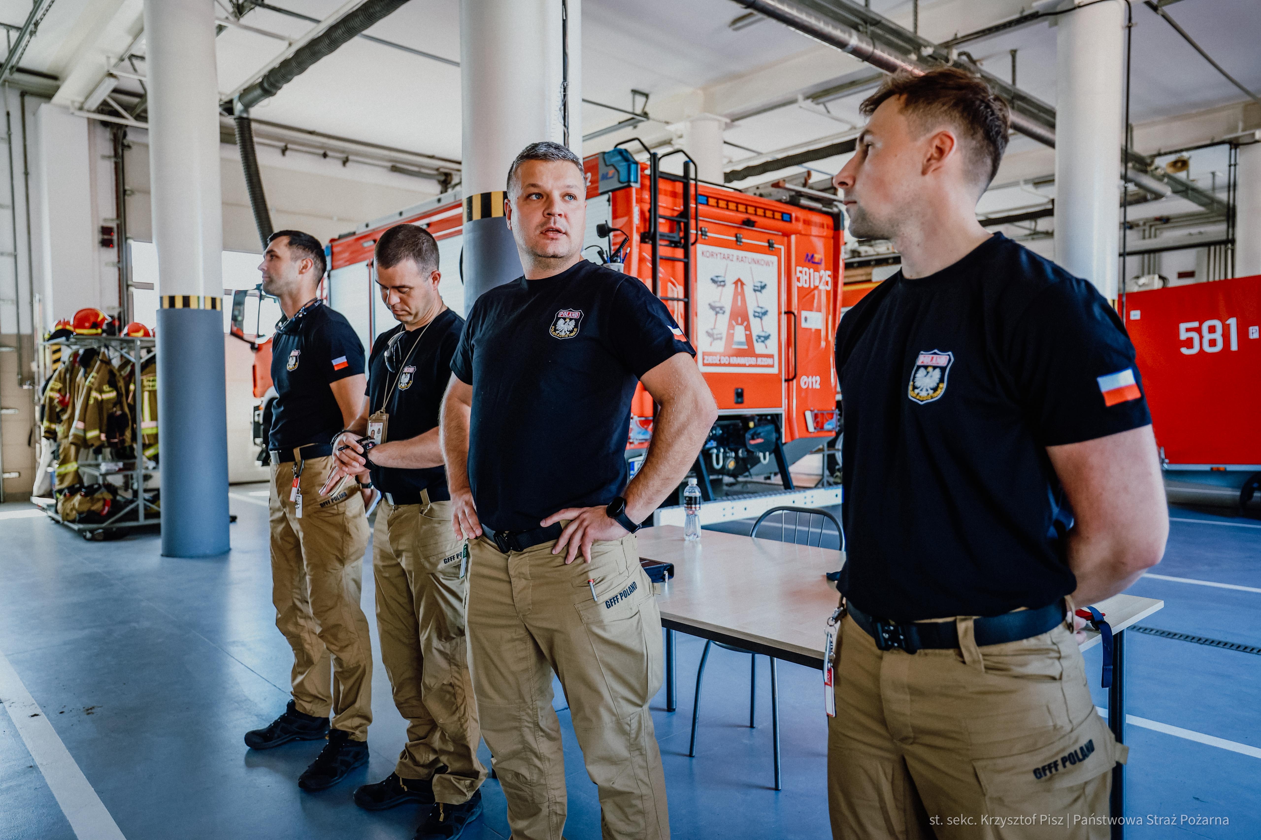 Strażacy docierają do rejonu koncentracji. Trwa odprawa, po której moduł będzie gotowy do załadowania wyposażenia na samolot transportowy będący na wyposażeniu 33. Bazy Lotnictwa Transportowego w Powidzu. Grupa ratownicza miałaby zostać przetransportowana drogą powietrzną w docelowe miejsce prowadzenia działań ratowniczych.