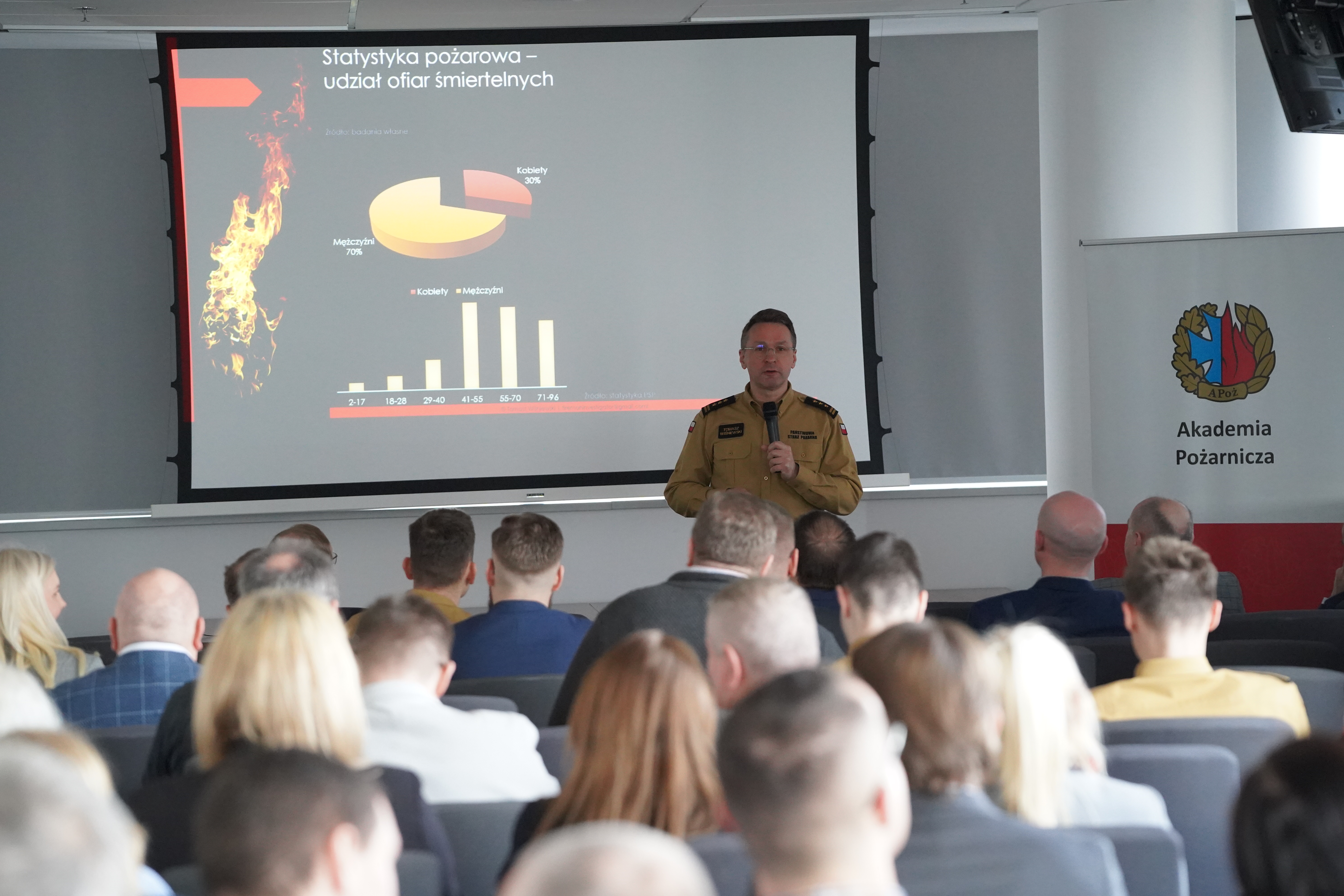 Pożary, które pojawiają się w ostatnich latach, często niszczą całe kompleksy przedsiębiorstw, mimo wdrażania krajowych przepisów i norm przeciwpożarowych. Podczas seminarium st. bryg. Rafał Szczypta, Zastępca Dyrektora Biura Ropzonawania Zagrożeń KG PSP przedstawił propozycje zmian w przepisach, poprawiających bezpieczeństwo pożarowe budynków. Głos zabrali także funkcjonariusze PSP z Akademii Pożarniczej, przedstawiając zebranym najważniejsze sprawy z zakresu ochrony przeciwpożarowej budynków, obiektów.