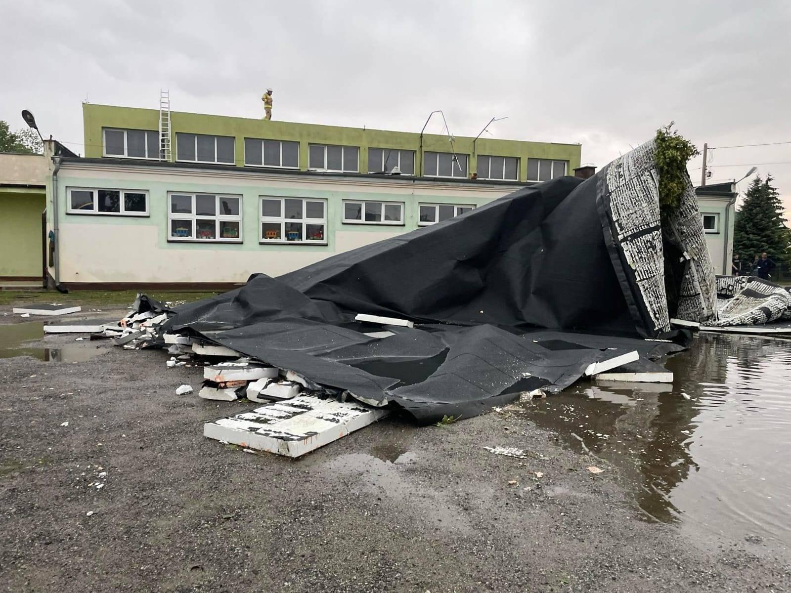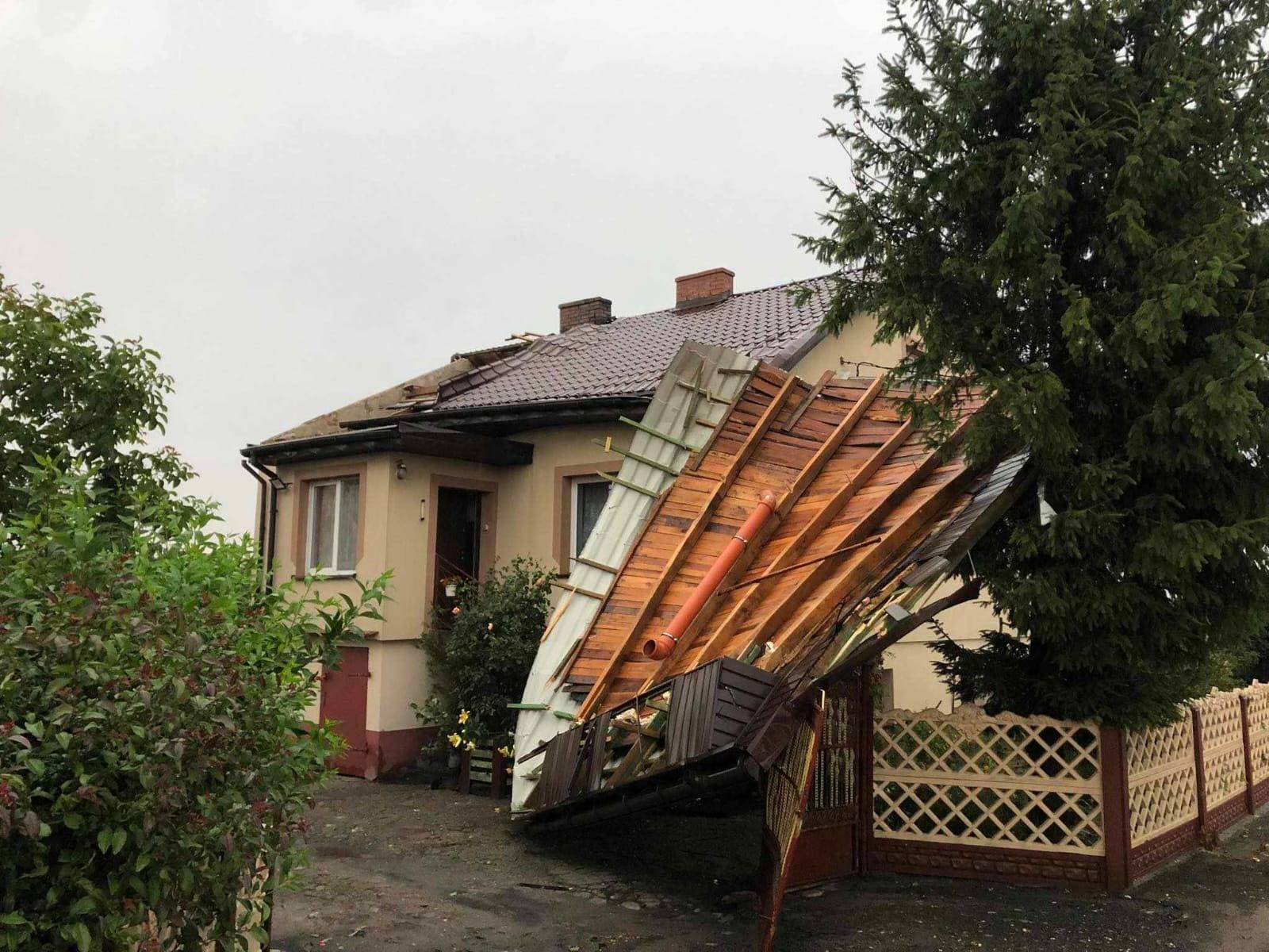 Strażacy gaszą pożar poddasza budynku jednorodzinnego, który powstał na skutek wyładowania atmosferycznego (pow. kępiński). W pożarze nie została poszkodowana żadna osoba. Strażacy zabezpieczają również zerwane dachy budynków w pow. ostrowskim, po silnym gradobiciu i podmuchach wiatru.