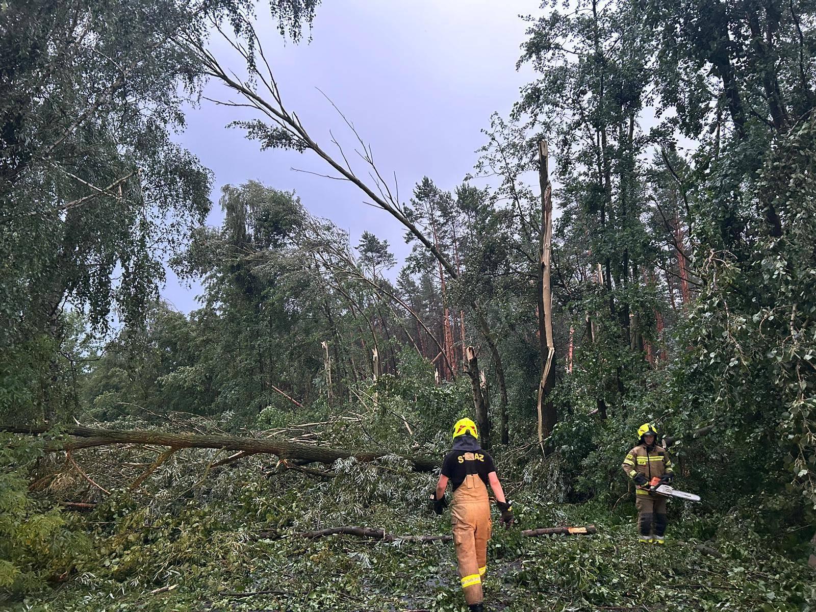 Prowadzone działania ratownicze dotyczą m.in. usuwania złamanych konarów drzew, powalonych drzew.