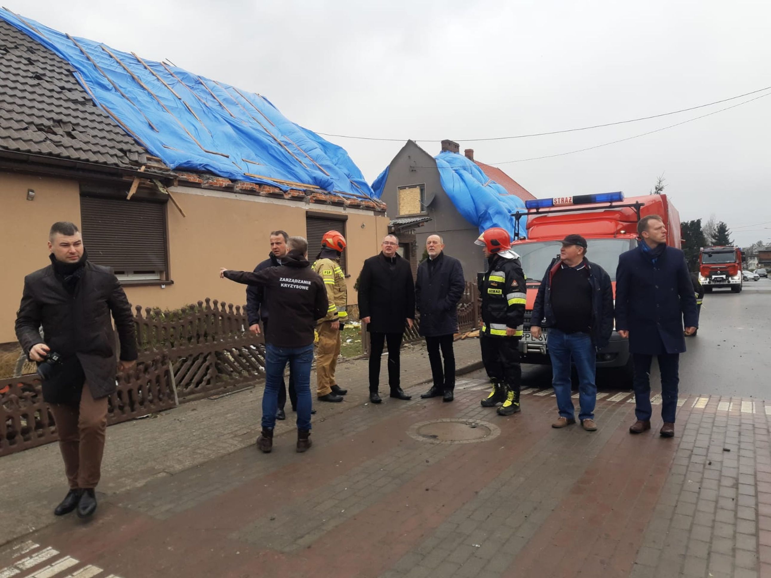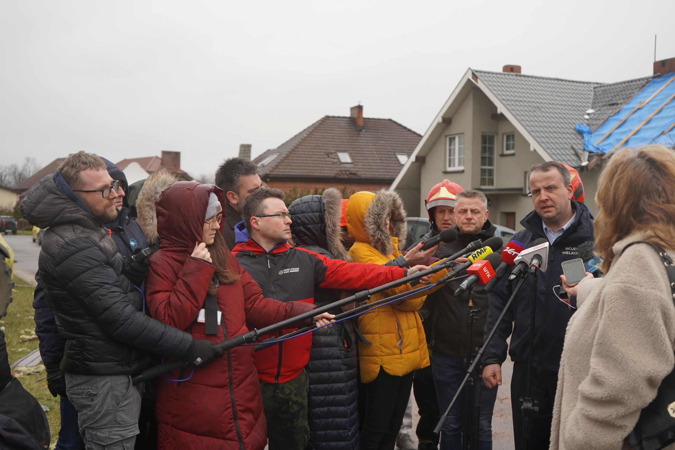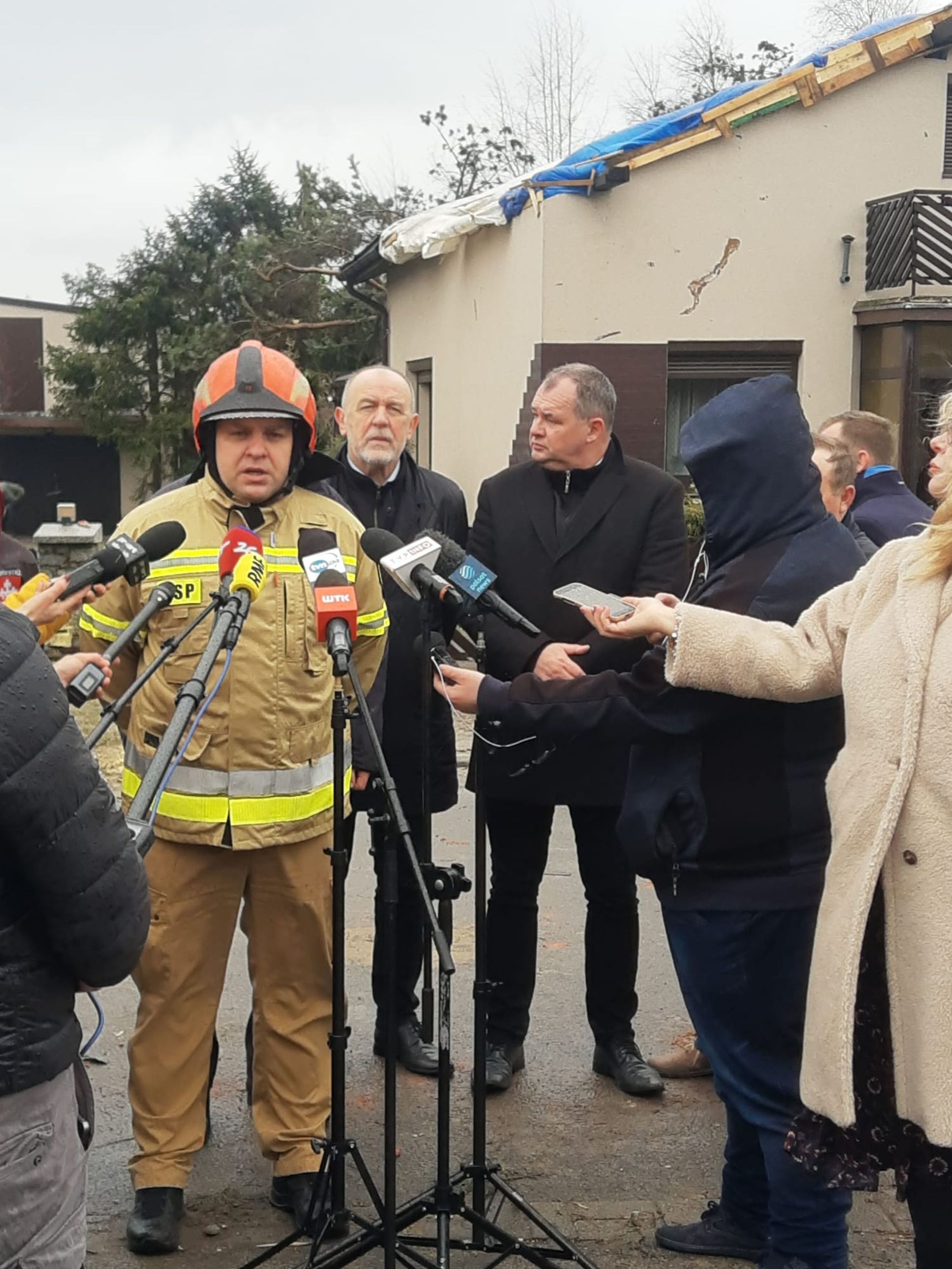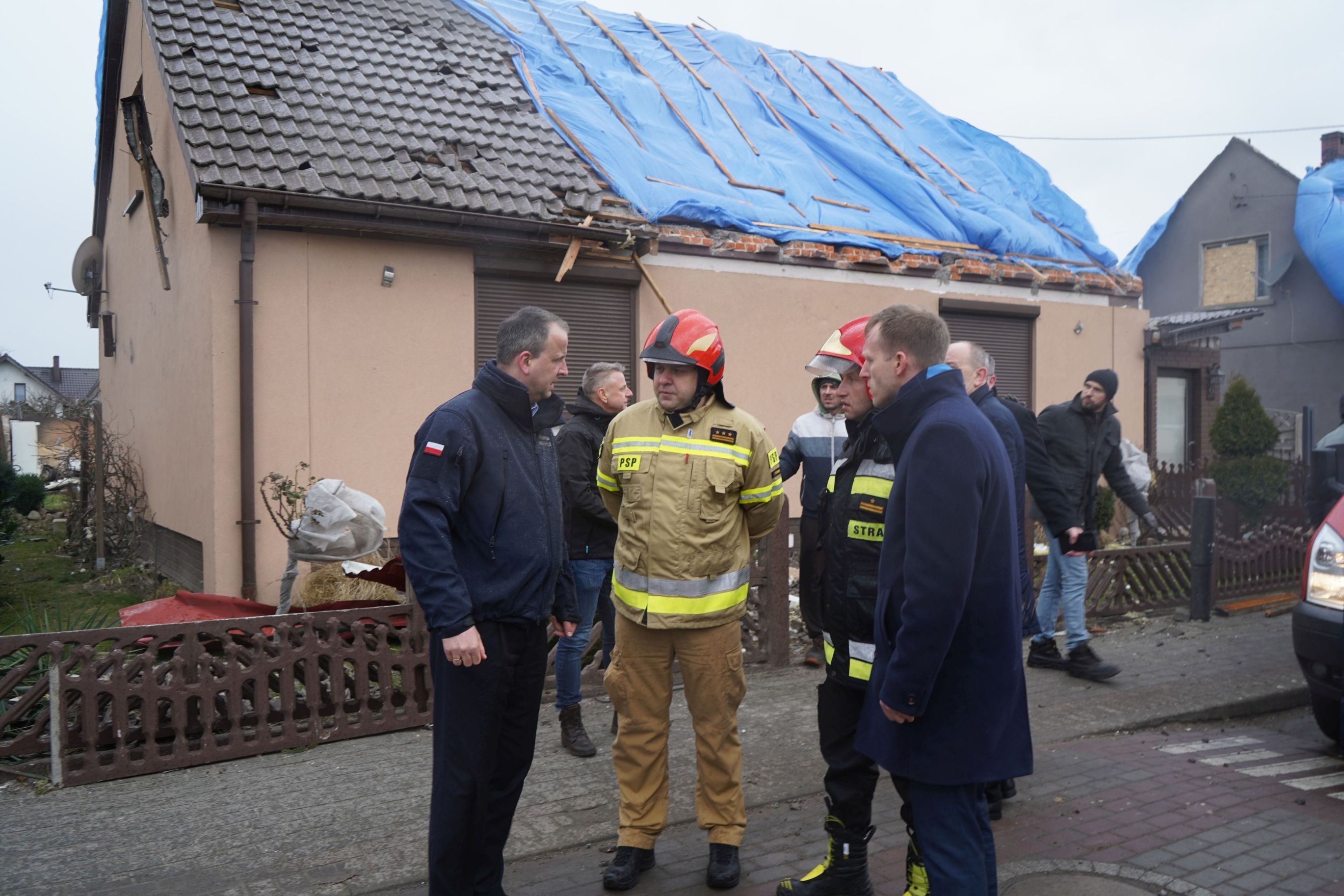 W związku z tą trudną sytuacją na miejsce przybył także poseł na Sejm RP Jan Mosiński, Wojewoda Wielkopolski Michał Zieliński, zastępca wielkopolskiego komendanta wojewódzkiego PSP st. bryg. Jarosław Zamelczyk, komendant powiatowy PSP w Pleszewie bryg. Roland Egiert oraz przedstawiciele władz samorządowych, którzy również uczestniczyli w konferencji prasowej. Konferencja prasowa poprzedzona była spotkaniem w Starostwie Powiatowym w Pleszewie, na którym wraz z przedstawicielami Zarządzania Kryzysowego omówiono panującą sytuację na miejscach zdarzenia w gminie i powiecie. Łącznie na terenie powiatu pleszewskiego odnotowano ponad 70 zdarzeń związanych z uszkodzonymi lub zerwanymi dachami.