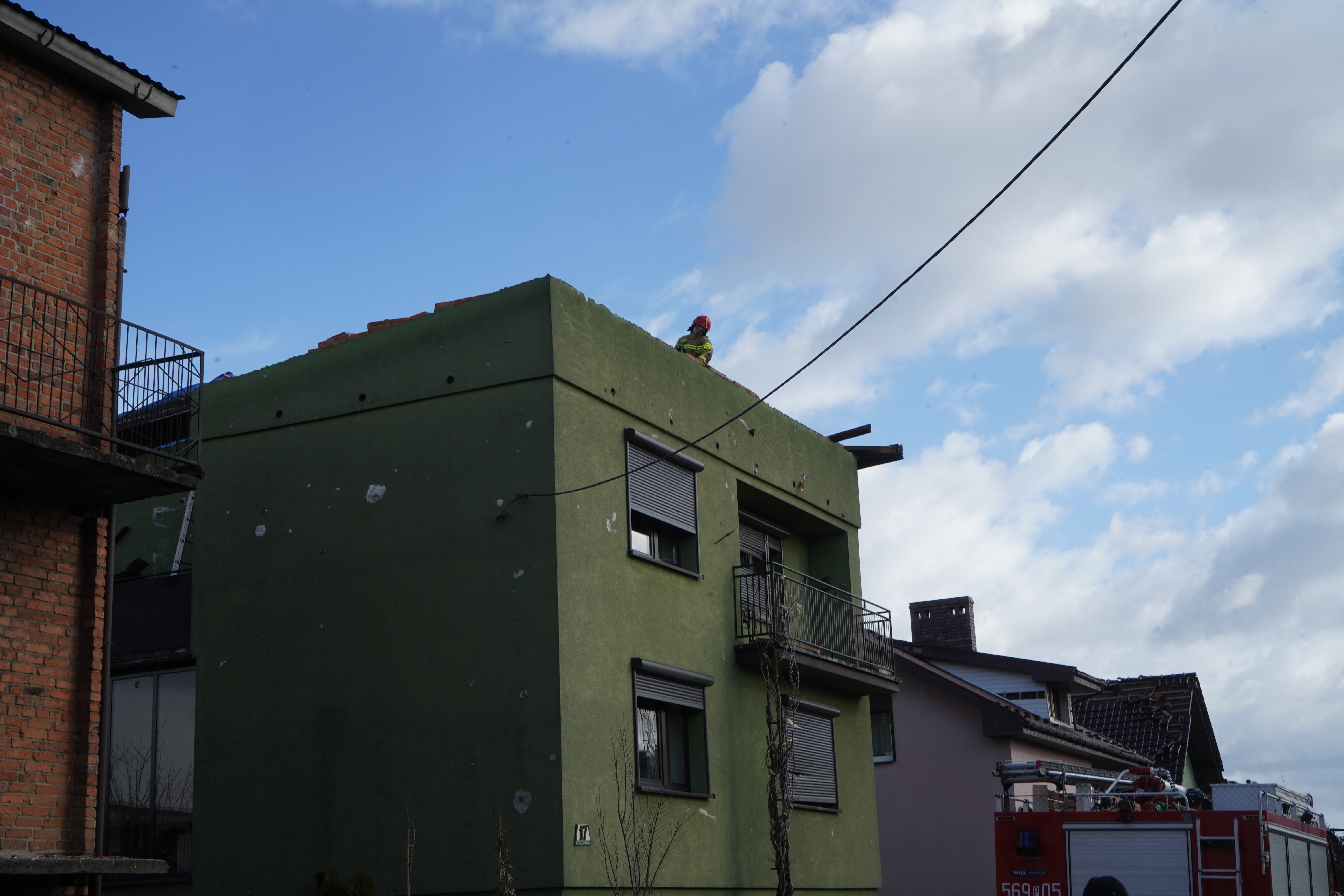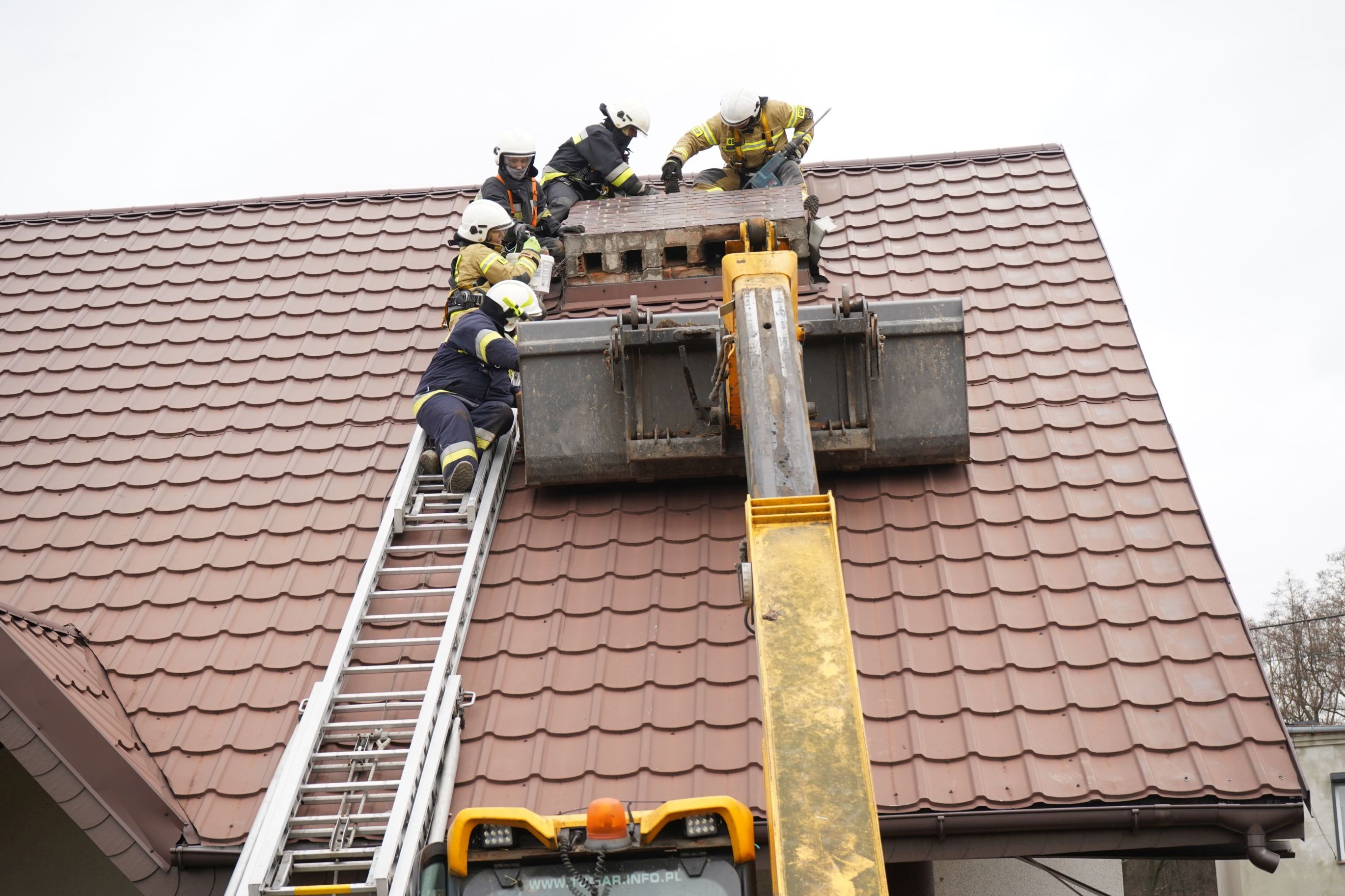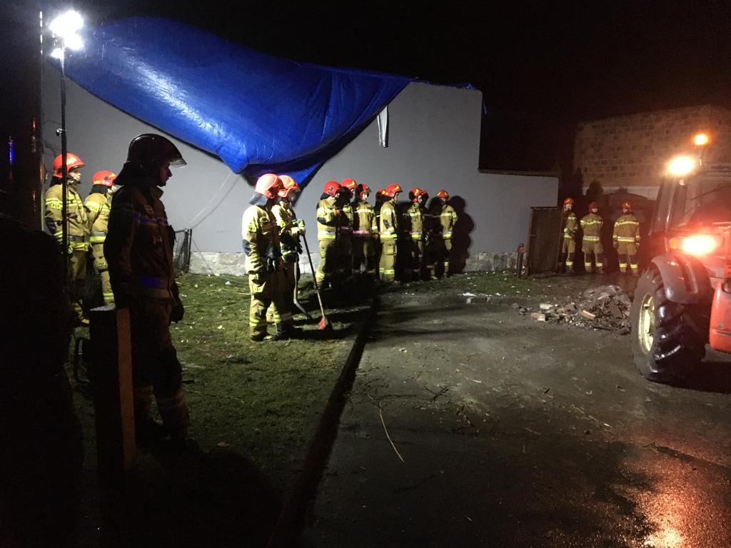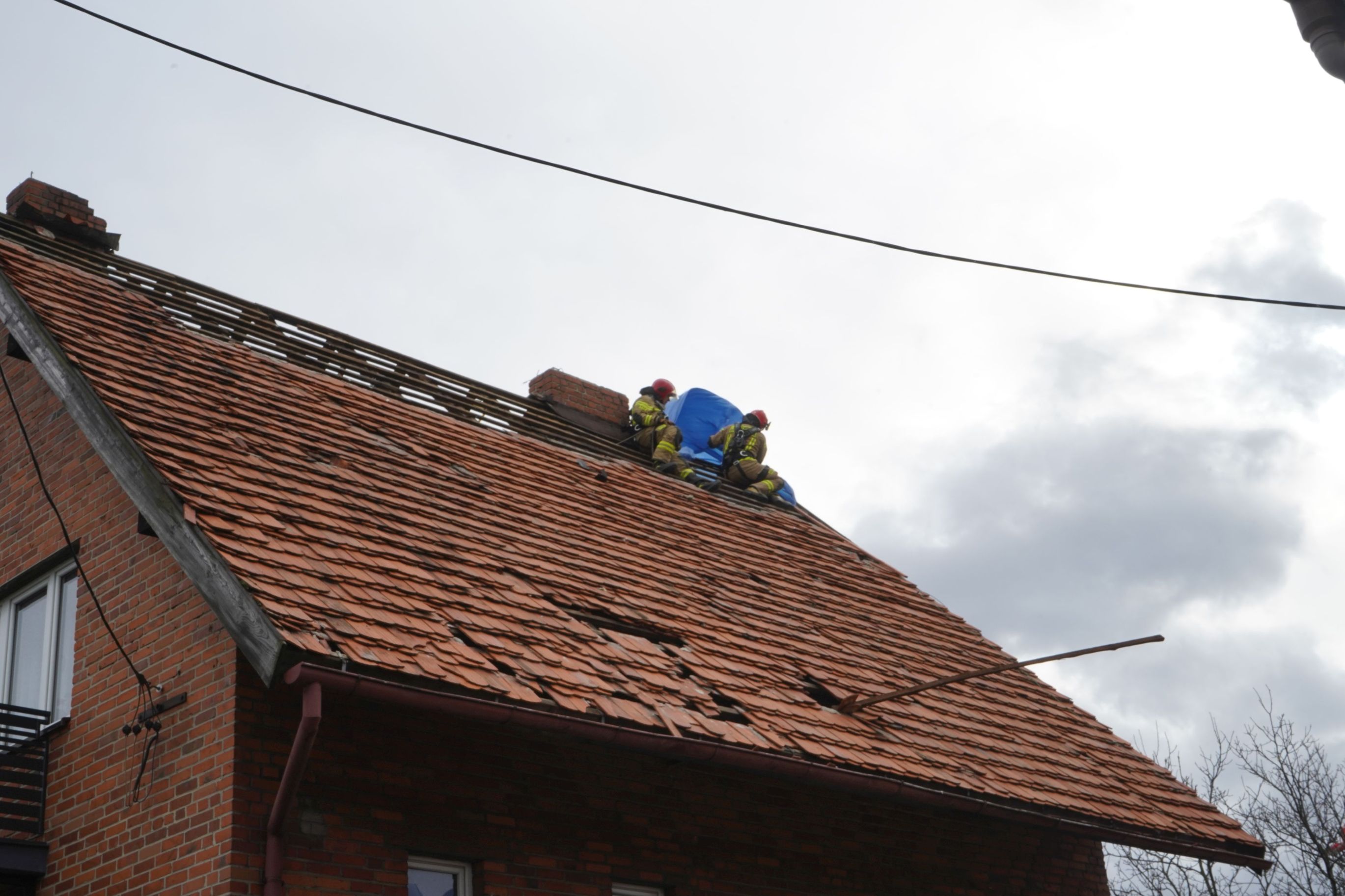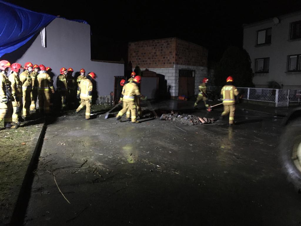 Do charakterystycznego zdarzenia doszło w Sośnicy, gdzie silne podmuchy wiatru przewróciły komin na budynku mieszkalnym i wbiły go w dach. Tutaj strażacy cegła po cegle z ogromną ostrożnością rozbierali komin, który w każdej chwili mógł wpaść do środka budynku mieszkalnego.
