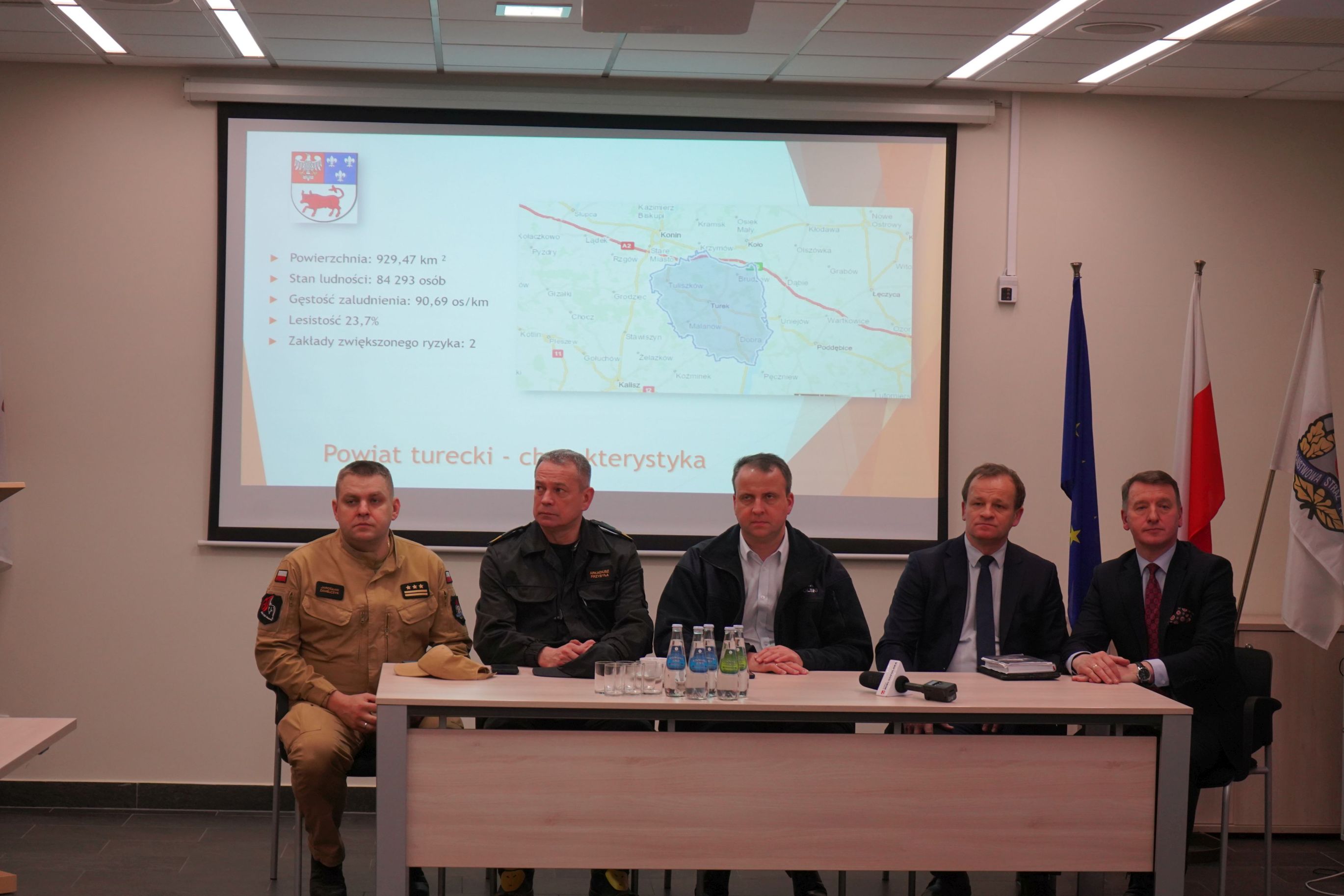 Następnie Wojewoda Wielkopolski oraz zastępca komendanta wojewódzkiego PSP w Poznaniu udali się do powiatu tureckiego, w którym wiatrołomy również wyrządziły wiele szkód. Tam odnotowano ponad 300 zdarzeń związanych z anomaliami pogodowymi, w tym ponad 160 uszkodzonych dachów. W związku z powyższym do tego powiatu został zadysponowany Pluton Wsparcia, w skład którego wchodziło 19 osób oraz siły i środki z jednostek ratowniczo – gaśniczych w Czarnkowie, Chodzieży, Wągrowcu i Złotowie (4 samochody, 12 pilarek oraz sprzęt wysokościowy). W Komendzie Powiatowej PSP w Turku odbyła się konferencja, w której uczestniczył Poseł na Sejm Zbigniew Dolata, Poseł na Sejm Leszek Galemba, zastępca komendanta głównego PSP nadbryg. Arkadiusz Przybyła, Wojewoda Wielkopolski Michał Zieliński, zastępca wielkopolskiego komendanta wojewódzkiego PSP st. bryg. Jarosław Zamelczyk, komendant powiatowy PSP w Turku mł. bryg. Piotr Pietrucha oraz przedstawiciele władz samorządowych.