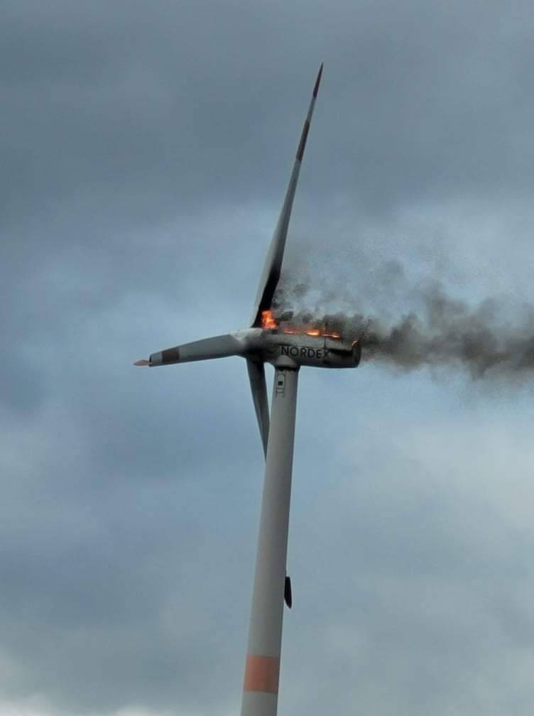 Po godz. 13:00 wpłynęła informacja o pożarze gondoli wiatrakowej w miejscowości Przyłęk w powiecie nowotomyskim. Po dotarciu na miejsce zdarzenia strażacy potwierdzili informację, że cała gondola płonie. Strażacy zzbezpieczyli miejsce zdarzenia i przystąpili do gaszenia. Na miejscu pracuje 5 zastępów jednostek ochrony przeciwpożarowej.