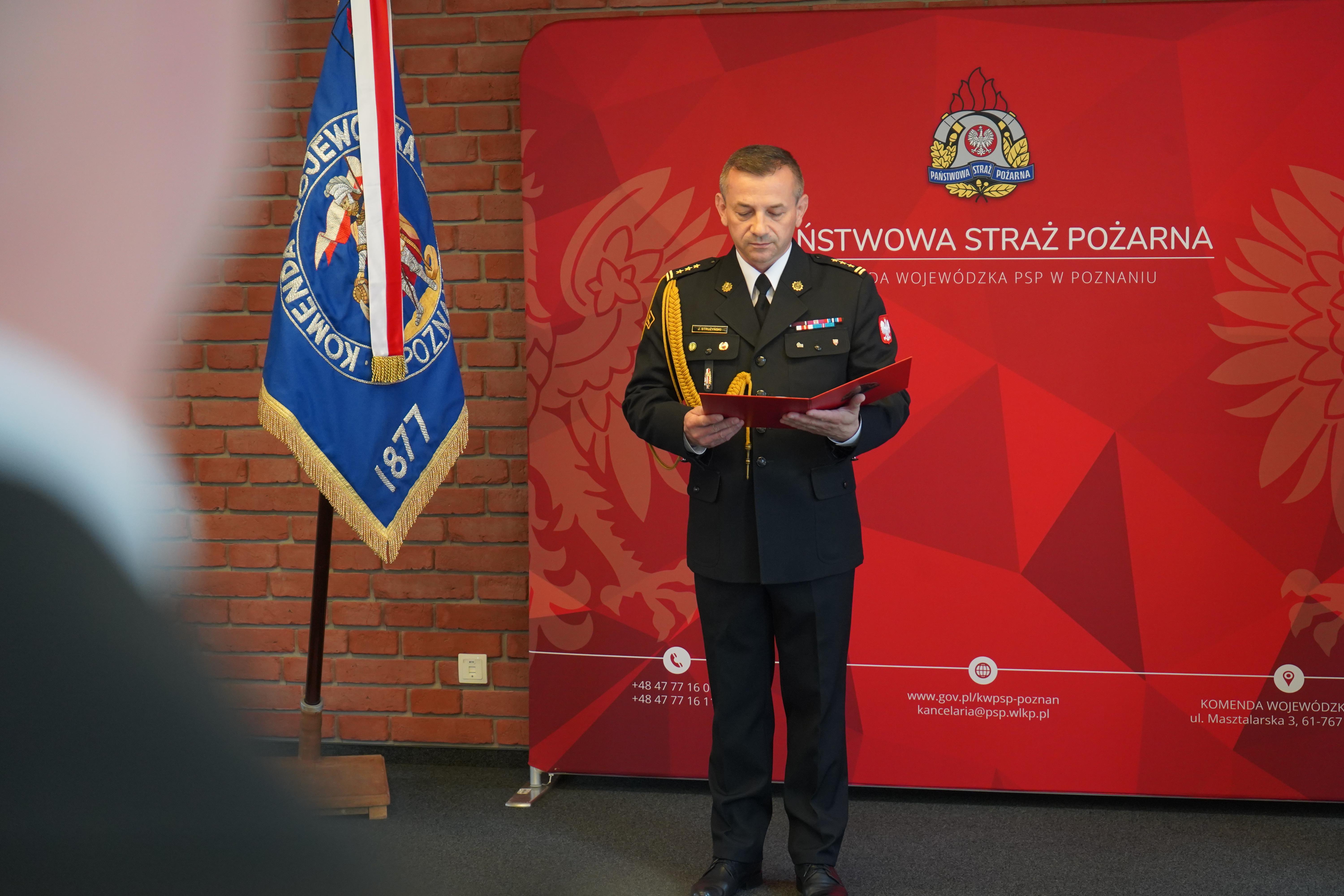 Ślubowanie odebrał Wielkopolski Komendant Wojewódzki PSP st. bryg. Jacek Strużyński w obecni zastępców komendanta, naczelników wydziałów, w których służbę pełnią ślubujący funkcjonariusze PSP.