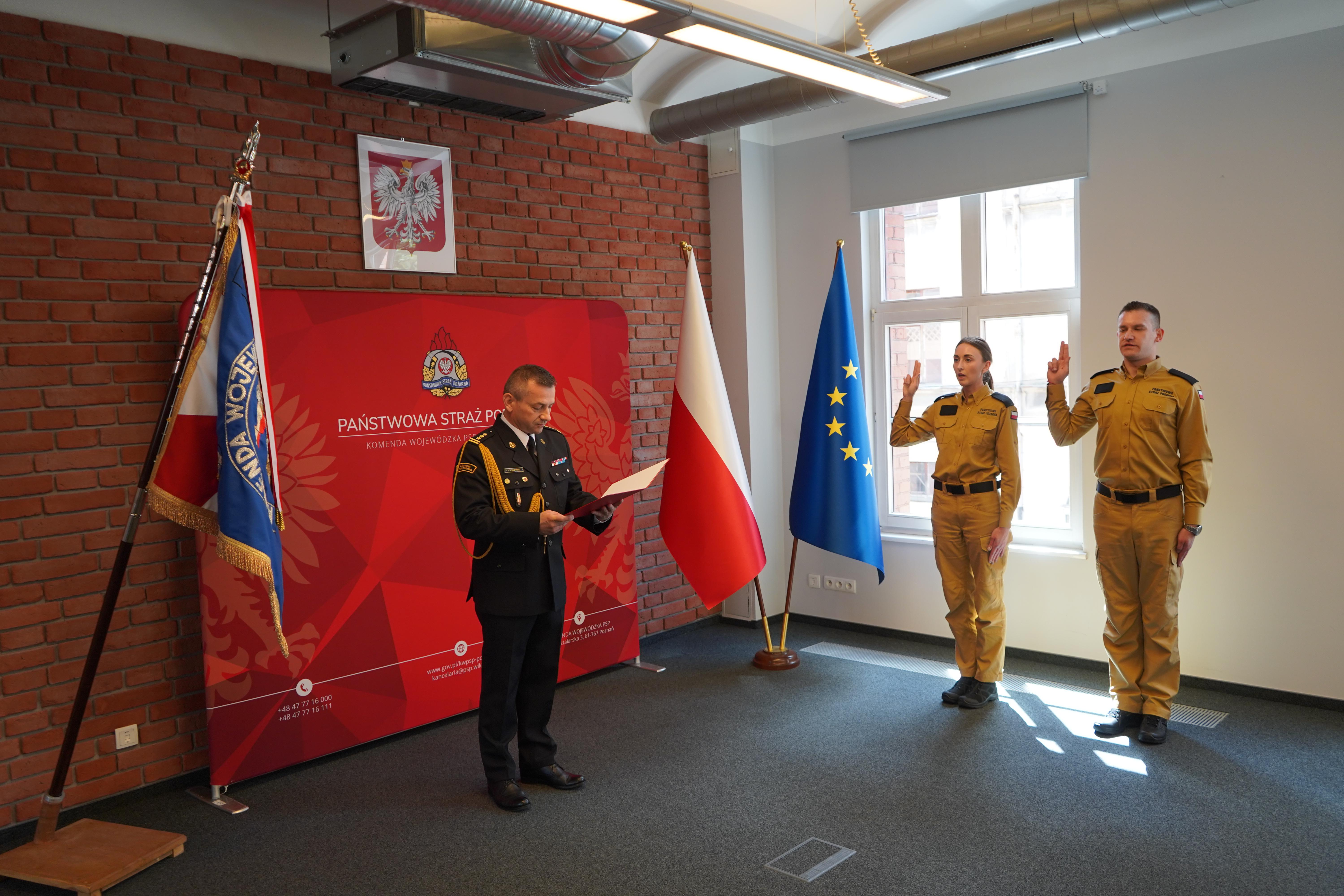 W piątek 19 lipca 2024 r. w Komendzie Wojewódzkiej PSP w Poznaniu odbyło się ślubowanie nowo przyjętych funkcjonariuszy PSP: str. Karoliny Knop oraz str. Jakuba Starszaka.