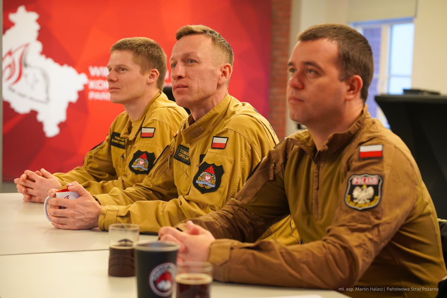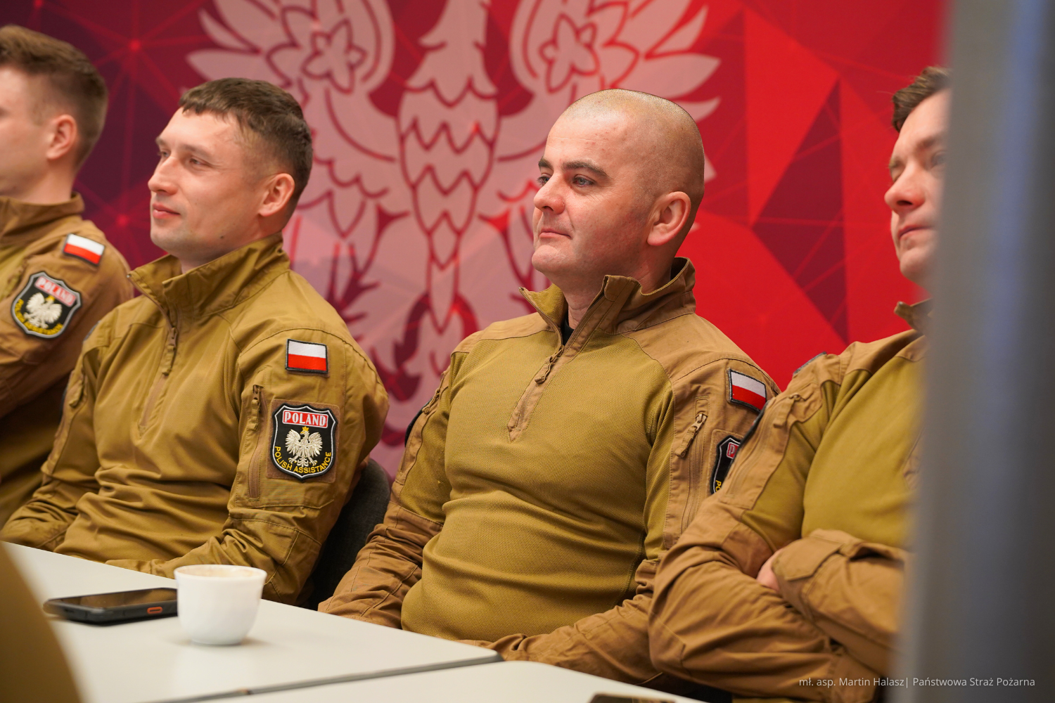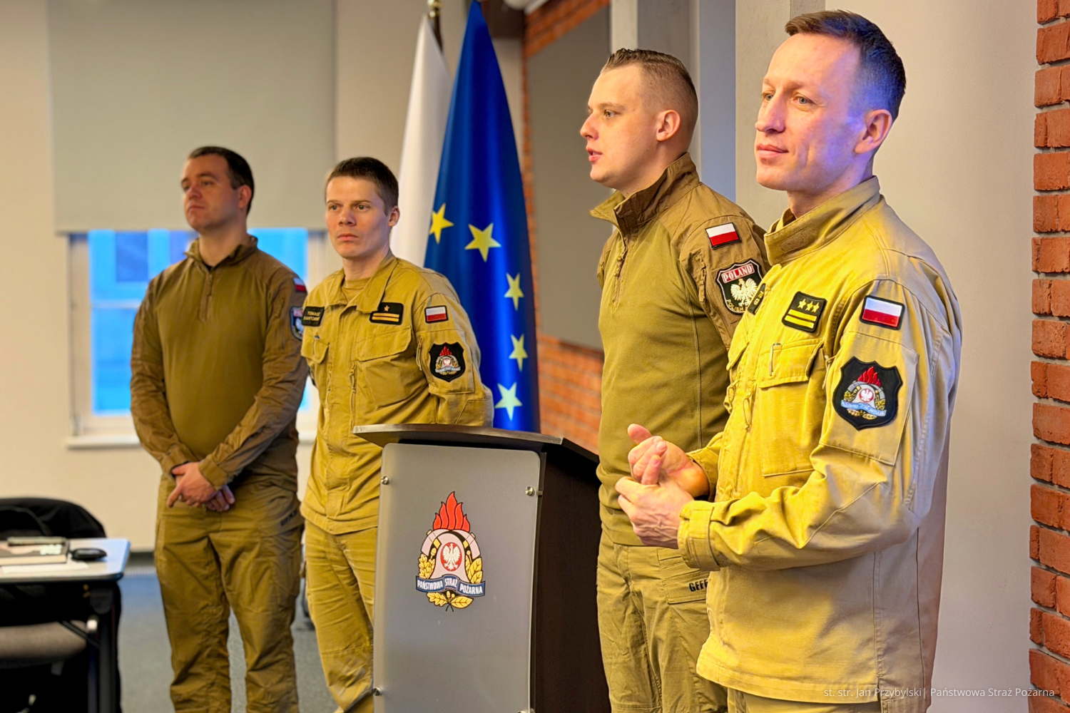 Istotnym punktem spotkania było podsumowanie ćwiczeń „GFFF POLAND 2025”, które stanowiły ważny element praktycznego sprawdzenia procedur, współdziałania oraz poziomu wyszkolenia członków modułu. Uczestnicy dokonali analizy przebiegu ćwiczeń, wskazując zarówno mocne strony, jak i obszary wymagające dalszego doskonalenia. Analizowano m.in. działania gaśnicze podjęte w Biebrzańskim Parku Narodowym. Była to pierwsza sytuacja, w której sformowany pododdział PSP, przeznaczony do działań poza granicami kraju, został wykorzystany w krajowych realiach - ze względu na potencjał ratowniczy i realizowaną nową taktykę gaśniczą (bez użycia ciężkich pojazdów pożarniczych ze zbiornikami wodnymi).
