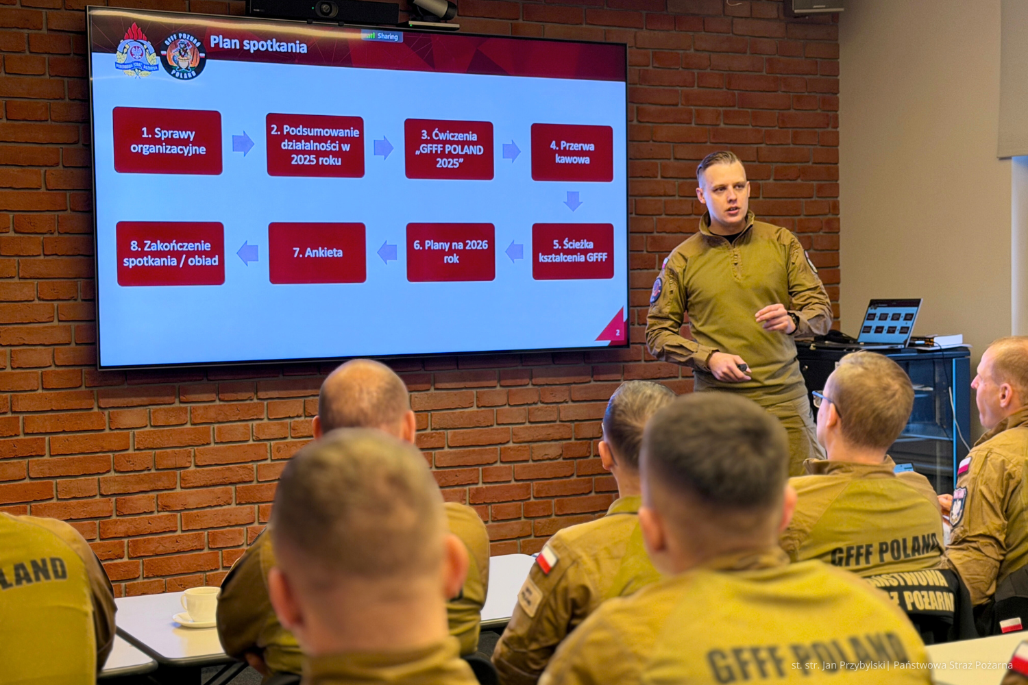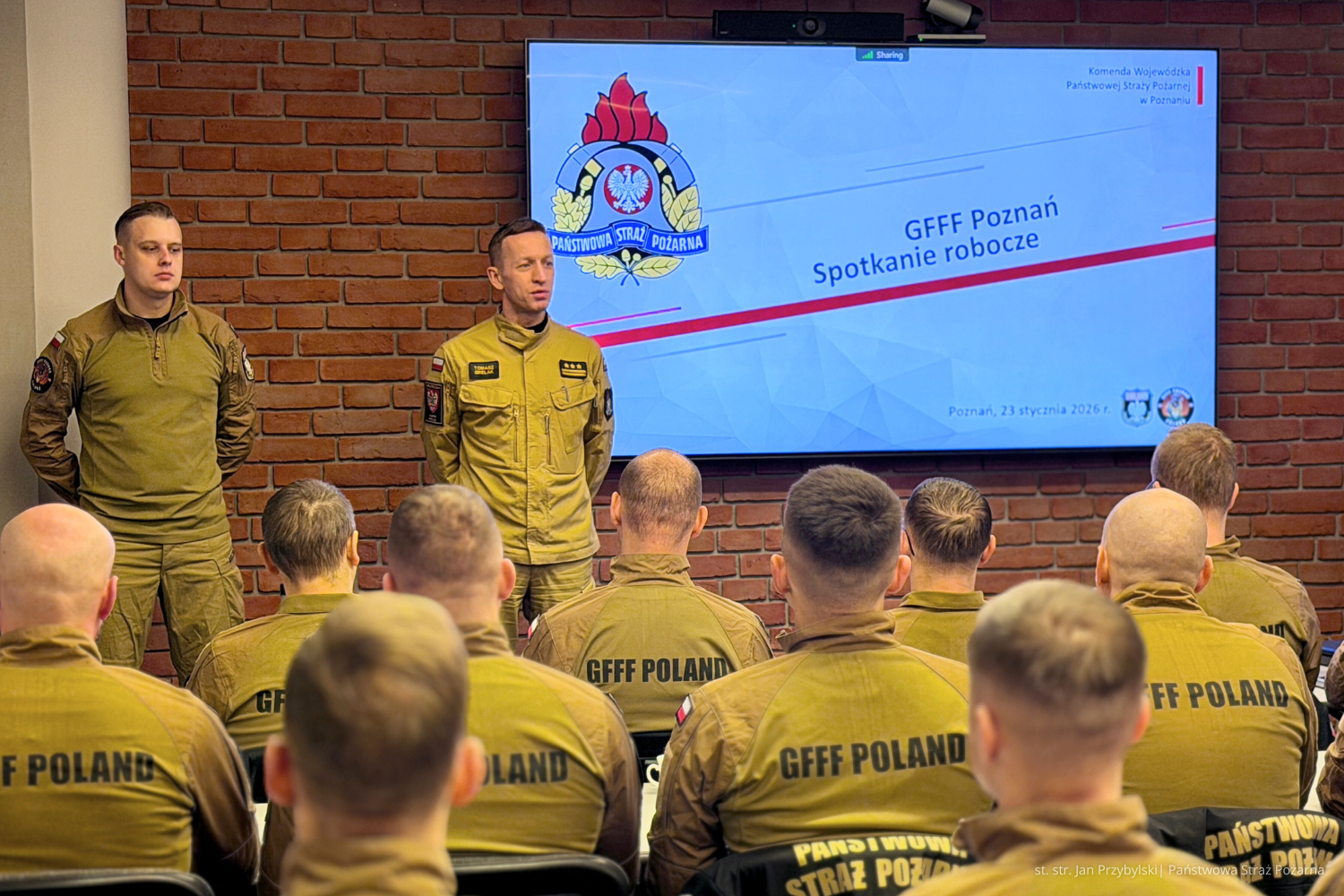 W piątek 23 stycznia 2025 roku w siedzibie Komendy Wojewódzkiej Państwowej Straży Pożarnej w Poznaniu odbyło się spotkanie członków międzynarodowego modułu GFFF Poznań. Było ono okazją do podsumowania minionego roku działalności modułu, omówienia zrealizowanych przedsięwzięć szkoleniowych oraz wyznaczenia kierunków działań na kolejne lata.