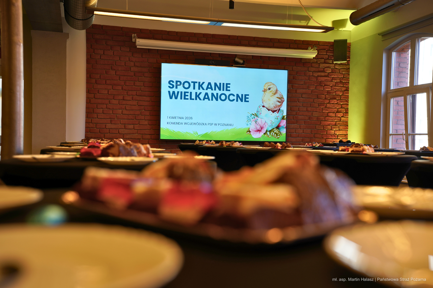 W środę 1 kwietnia 2026 roku w Sali Prezydialnej im. płk. poż. Władysława Pilawskiego w Komendzie Wojewódzkiej Państwowej Straży Pożarnej w Poznaniu odbyło się spotkanie wielkanocne dla funkcjonariuszy oraz pracowników cywilnych komendy.