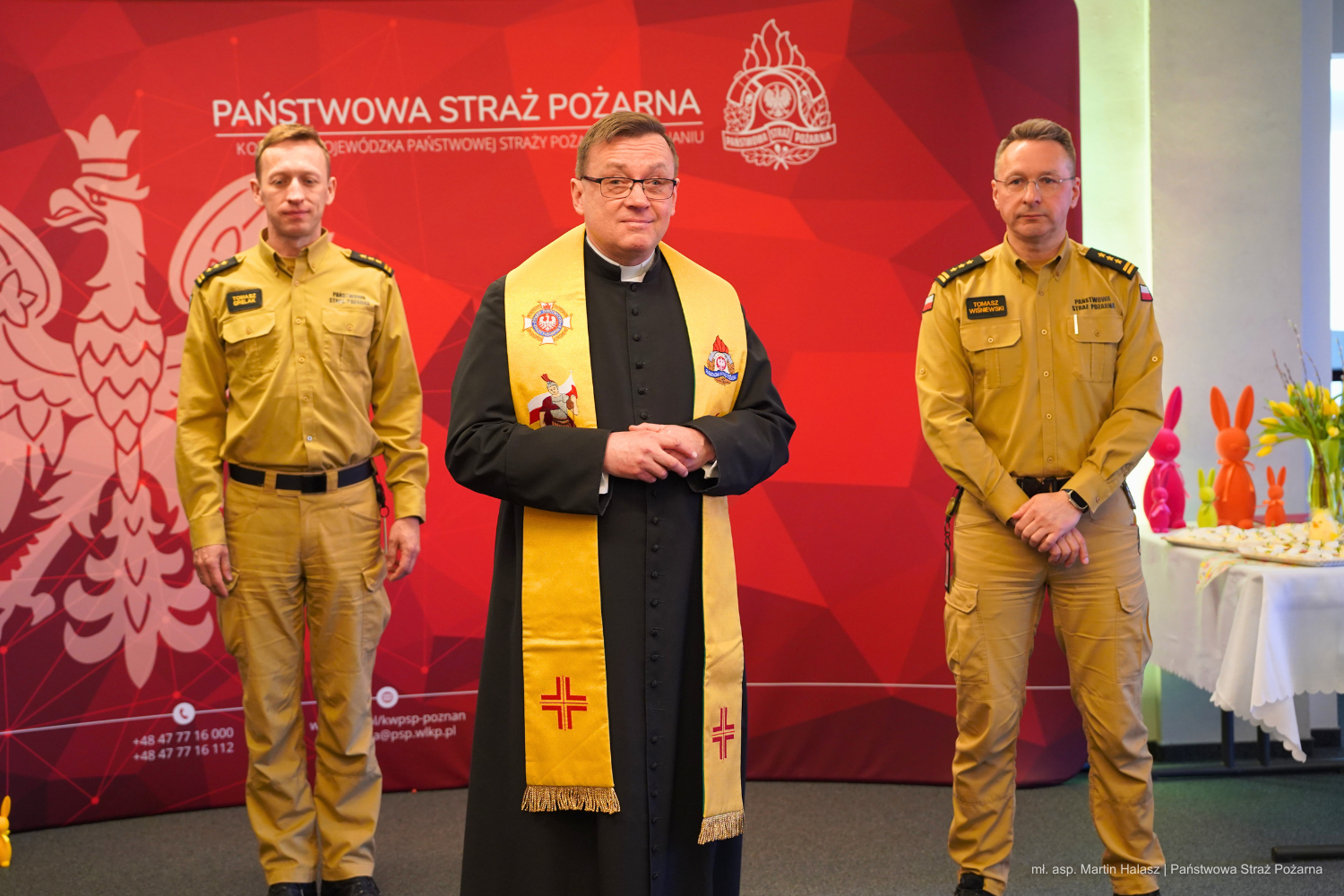 Uroczystość rozpoczął zastępca wielkopolskiego komendanta wojewódzkiego PSP st. bryg. Tomasz Wiśniewski, który w imieniu Wielkopolskiego Komendanta Wojewódzkiego PSP, swoim oraz pozostałych zastępców przekazał wszystkim zebranym serdeczne życzenia świąteczne. W swoim wystąpieniu nawiązał również do znaczenia i symboliki Świąt Wielkiej Nocy, podkreślając ich wymiar nadziei, odrodzenia oraz wspólnoty.