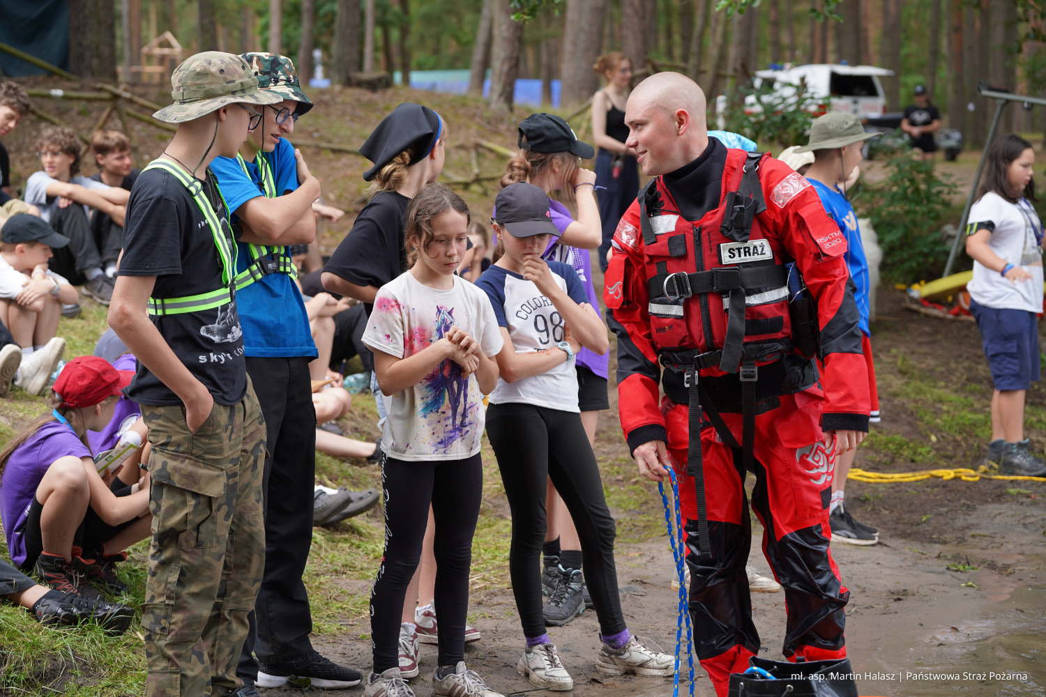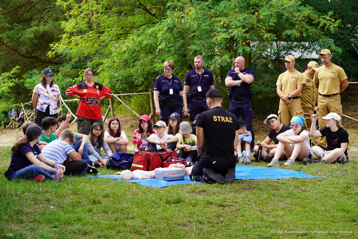W piątek 25 lipca 2025 r. przedstawiciele Komendy Wojewódzkiej PSP w Poznaniu wraz z Państwową Inspekcją Pracy oraz Policją odwiedzili obóz harcerski w Kaplinie (pow. międzychodzki). Na obozie wypoczywa obecnie prawie 200 osób, dlatego w ramach współpracy, jak co roku, zostaliśmy zaproszeni do przeprowadzenia pogadanek edukacyjnych z zakresu bezpieczeństwa.