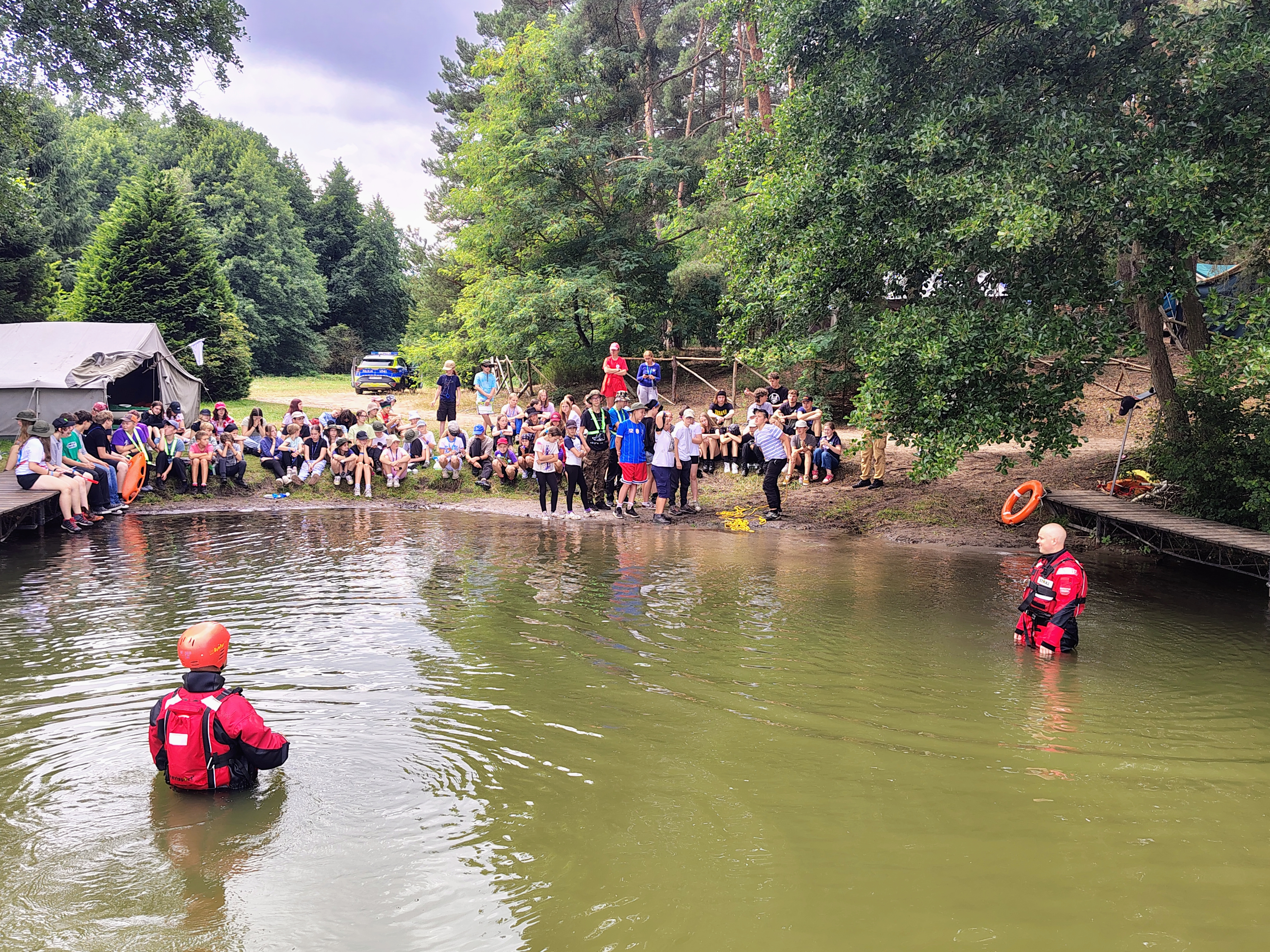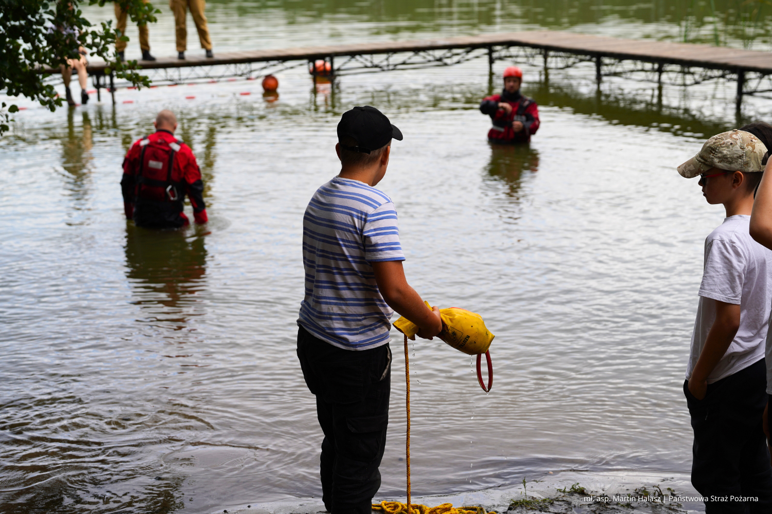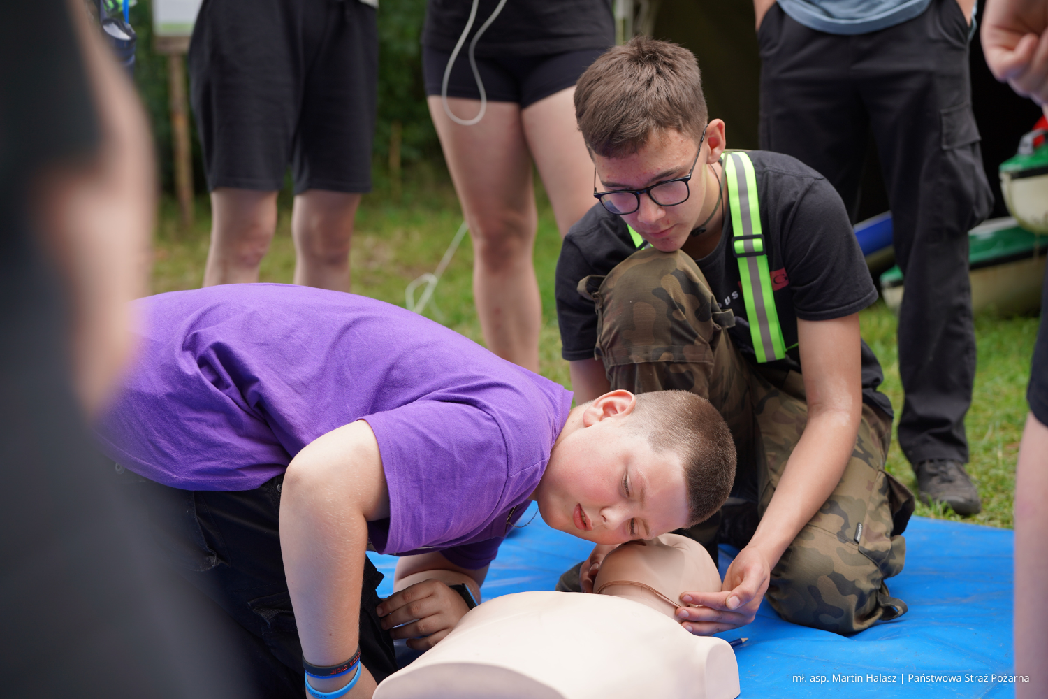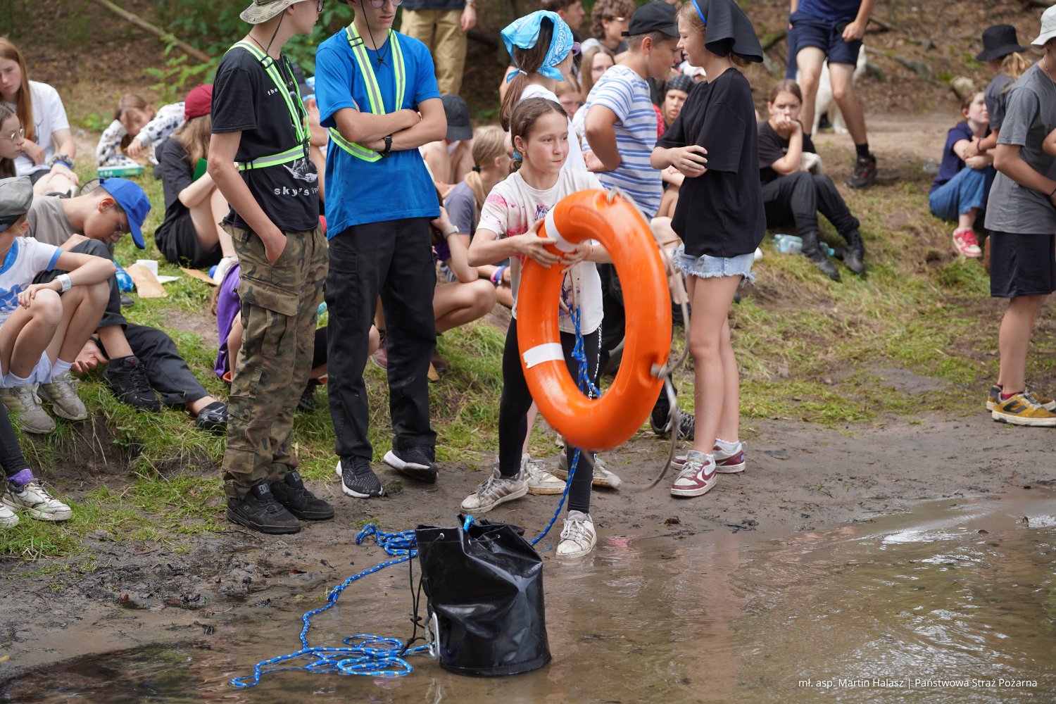 Podczas spotkania strażacy uczyli podstawowych zasad udzielana pierwszej pomocy oraz korzystania z defibrylatora, jak zabezpieczyć się przed wysokimi temperaturami, jak zachować się podczas burz i wiatrołomów. Ponadto obóz został sprawdzony pod kątem przygotowania miejsca do jego prawidłowego funkcjonowania, a także sprawdzono miejsca zastępcze w przypadku anomalii pogodowych i przygotowanie do ewakuacji uczestników obozu. Spotkanie zakończyło się pokazem ratowniczym na akwenie, który przygotowali strażacy z Komendy Powiatowej PSP w Międzychodzie. Druhny i druhowie dowiedzieli się, a nawet przypomnieli, jak reagować w przypadku zauważenia osoby, która się topi i jakie podjąć bezpieczne działania. Następnie każdy ochotnik mógł rzucić rzutką lub kołem ratowniczym w stronę poszkodowanego i wyciągnąć go na brzeg.