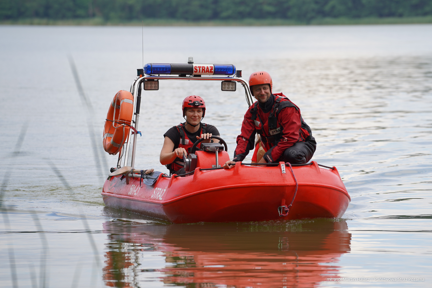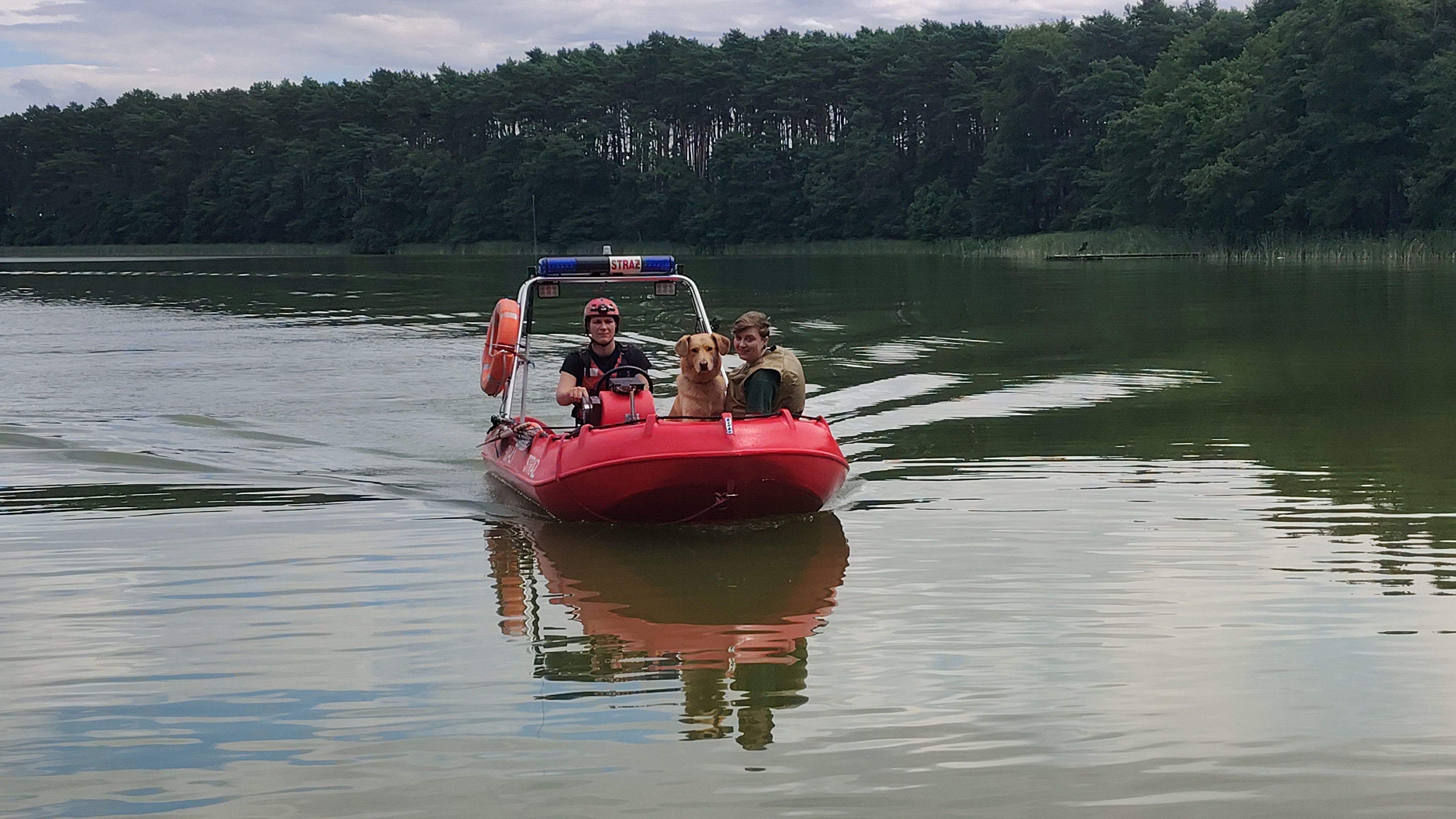 Uczestnikami obozu były również dwa pieski, a jeden z nich konecznie chciał zostać ratownikiem i wspierać działania strażaków na wodzie, dlatego i jego nie ominęła mała atrakcja - popłynął łodzią ze swoją właścicielką, z czego był bardzo zadowolony i dumny.