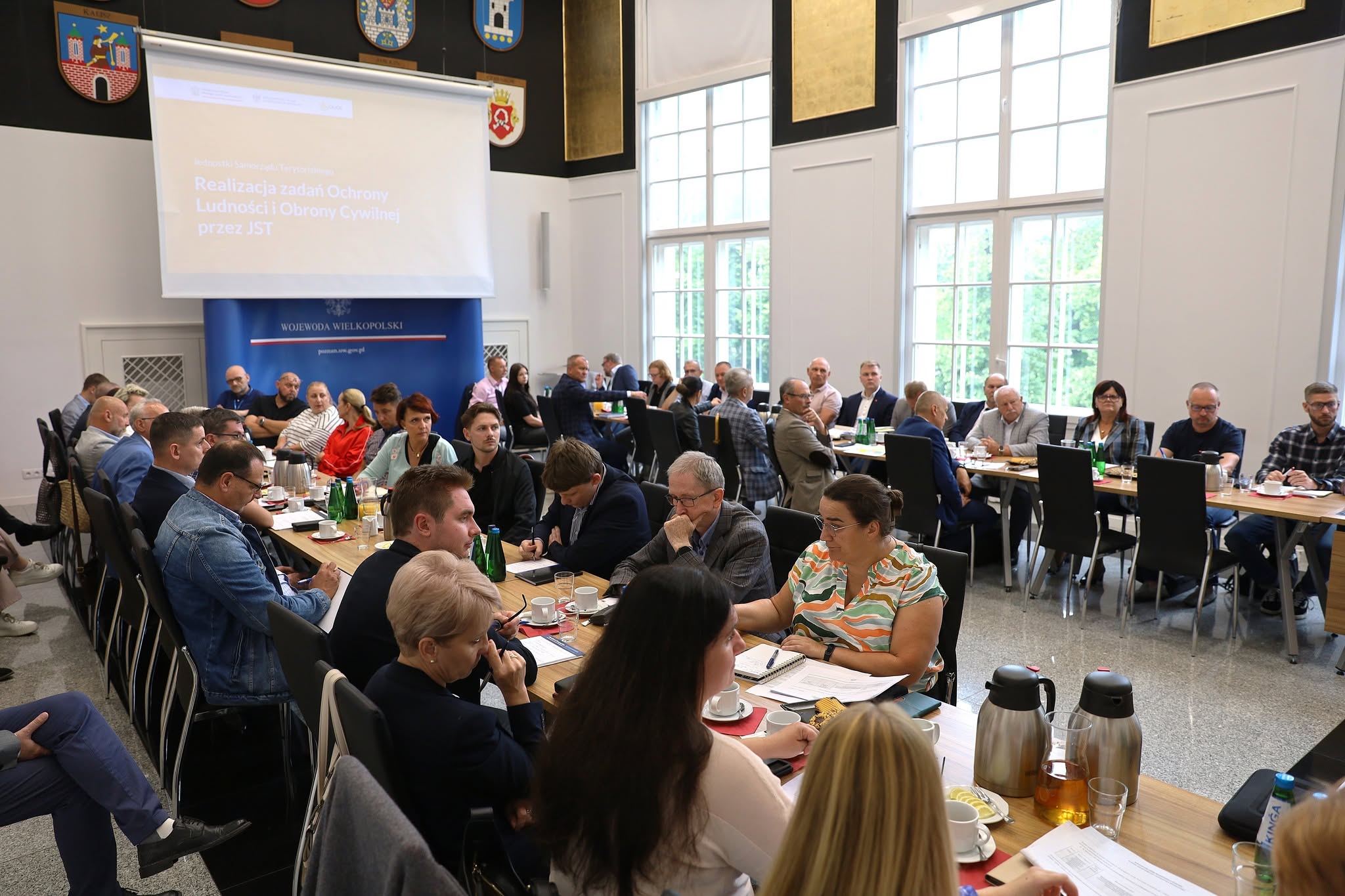 W środę 23 lipca 2025 r. Wojewoda Wielkopolska Agata Sobczyk wspólnie z Wielkopolskim Komendantem Wojewódzkim st. bryg. Jackiem Strużyńskim, zastępcą komendanta st. bryg. Sławomirem Brandtem oraz dyrekcją Wydziału Bezpieczeństwa i Zarządzania Kryzysowego rozmawiali ze starostami o podziale środków w 2025 roku na realizację zadań Programu Ochrony Ludności i Obrony Cywilnej na lata 2025-2026.