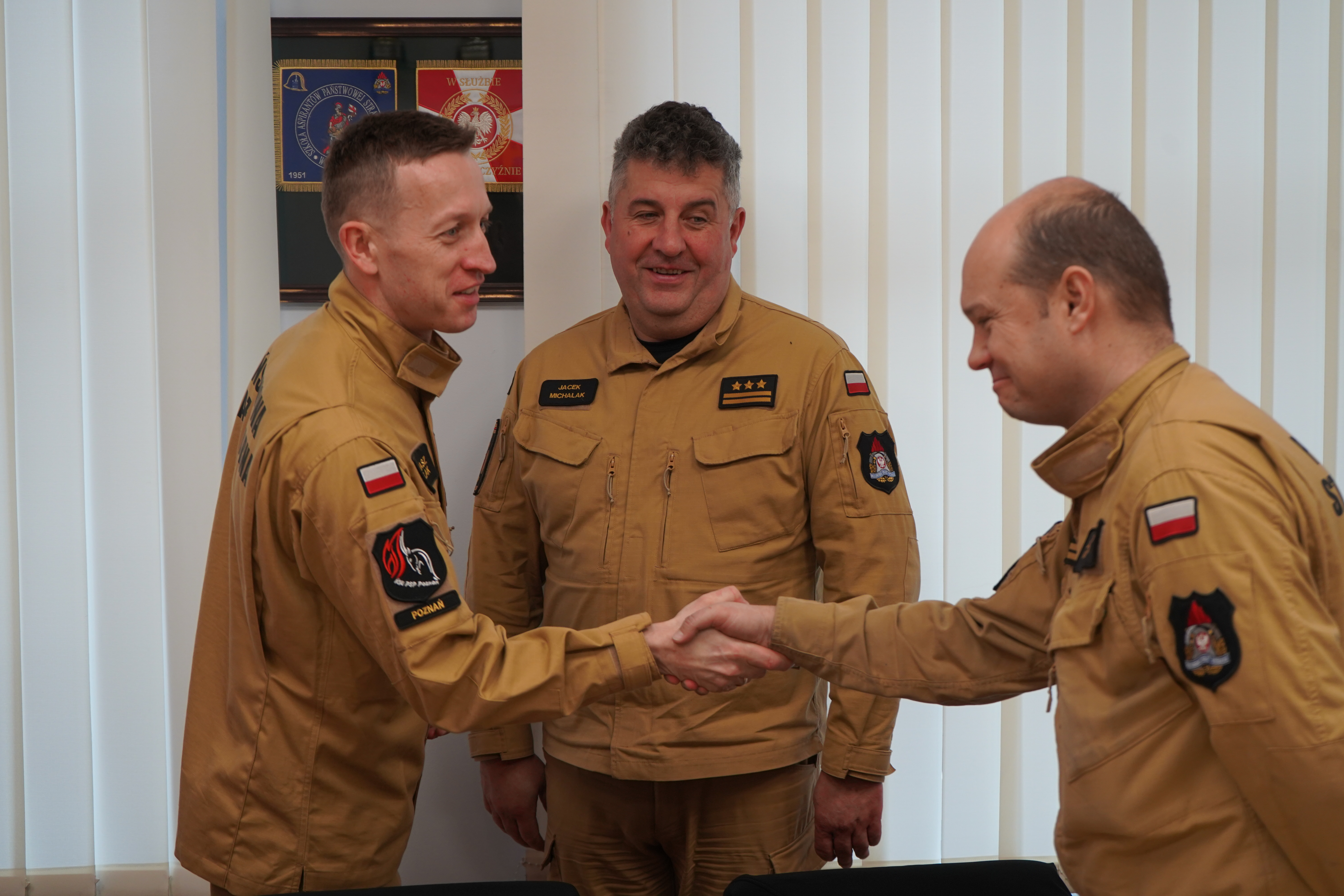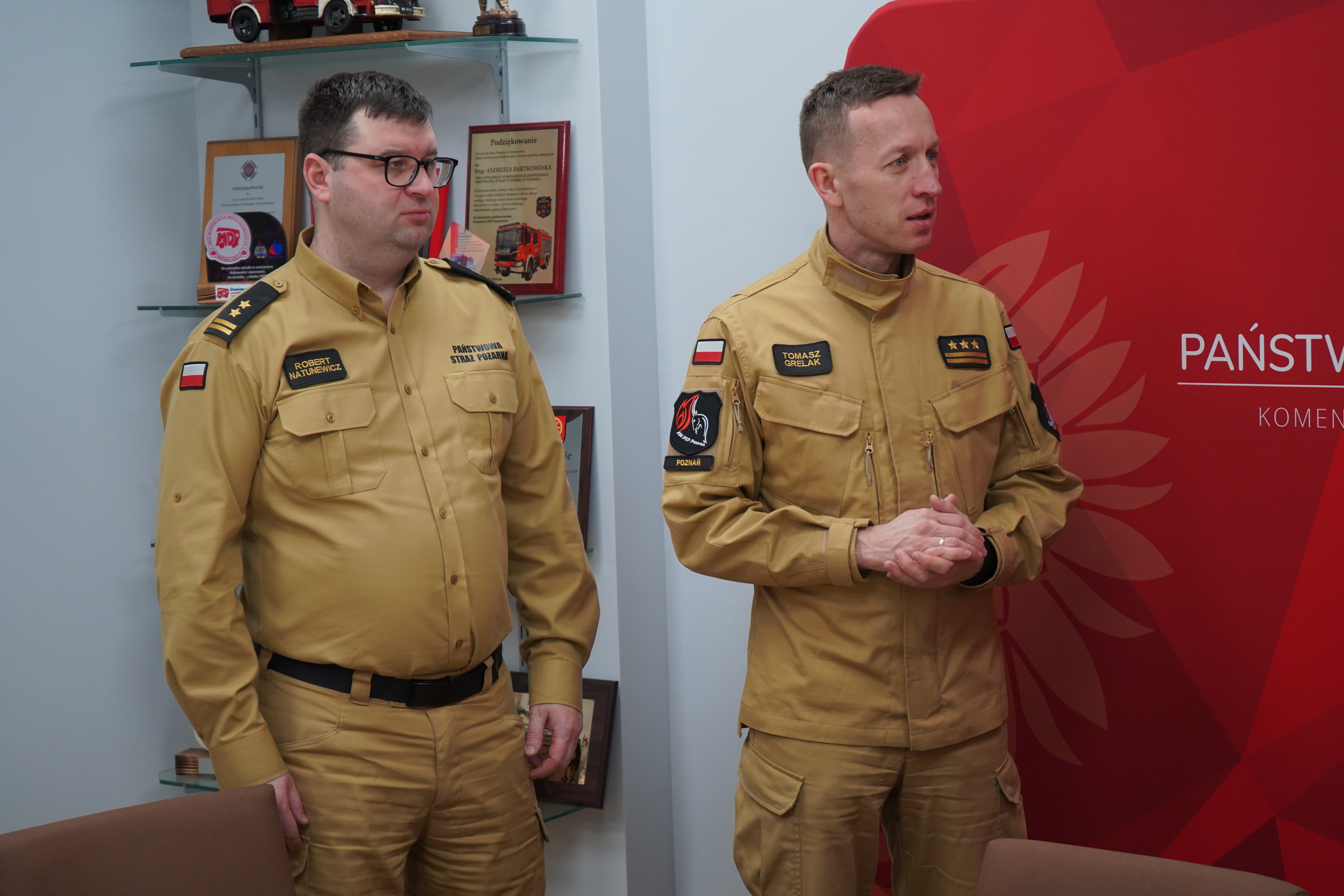 W piątek 12 stycznia 2024 roku p.o. Wielkopolskiego Komendanta Wojewódzkiego PSP st. bryg. Tomasz Grelak wraz z zastępcą bryg. Robertem Natunewiczem spotkali się z kpt. Michałem Muchą oraz st. str. Krzysztofem Pokorą, strażakami PSP pełniącymi służbę w JRG 4 Komendy Miejskiej PSP w Poznaniu, w obecności Komendanta Miejskiego PSP w Poznaniu st. bryg. Jacka Michalaka oraz Dowódcy Jednostki Ratowniczo-gGaśniczej nr 4 KM PSP w Poznaniu bryg. Jarosława Kuśmirka.