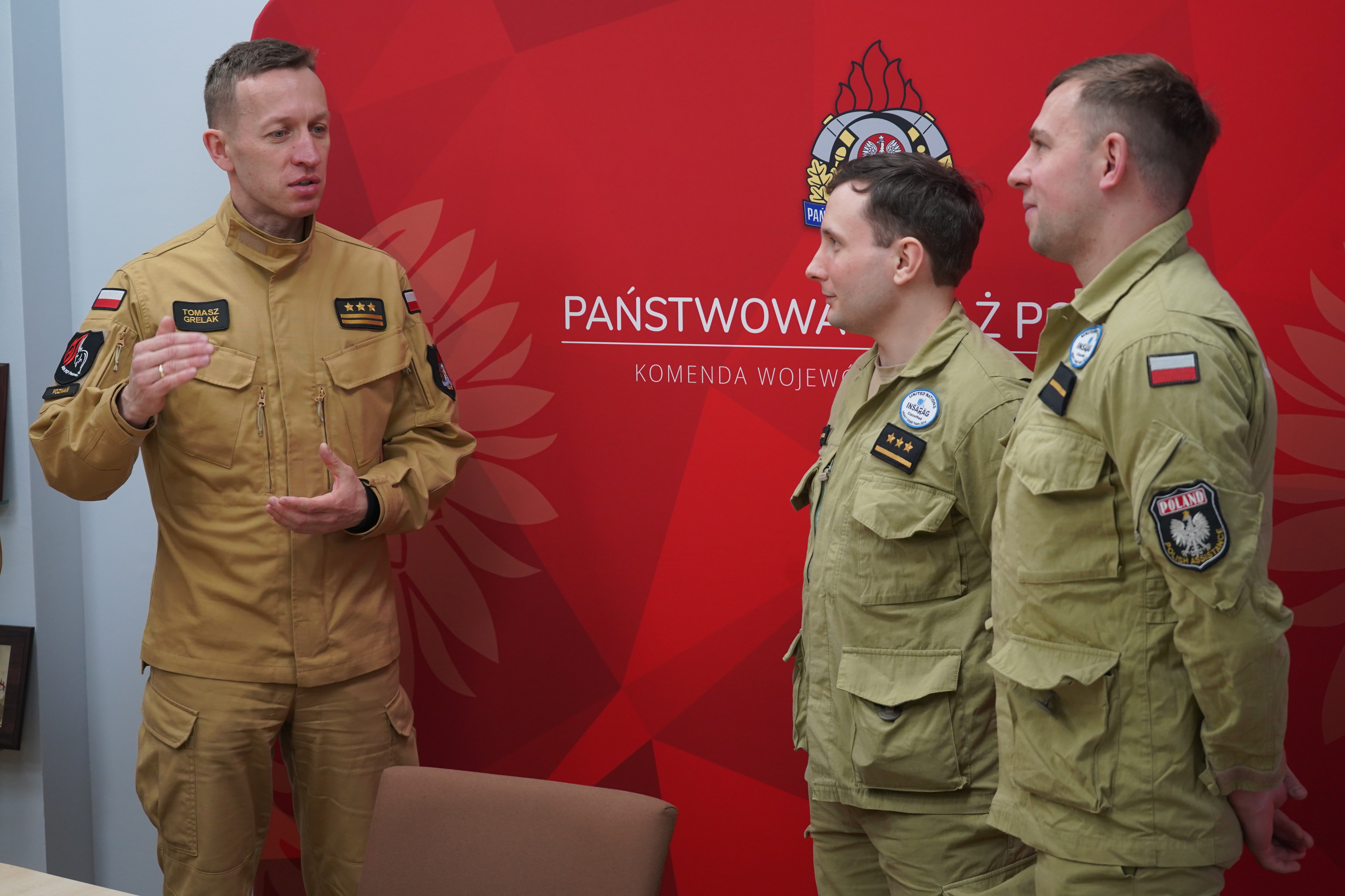 Komendant Grelak złożył gratulacje strażakom PSP z JRG 4 Poznań, którzy otrzymali odnaczenia państwowe - Krzyż Zasługi Za Dzielność. Wyróżnienia zostały przyznane przez Prezydenta RP Andrzeja Dudę polskim strażakom w 2023 r., za zasługi w ratowaniu życia ludzkiego podczas akcji ratowniczej po trzęsieniu ziemi w Turcji, w lutym 2023 r. Grupa ponad 70 strażaków PSP z 8 psami ratowniczymi wspólnym wysiłkiem uratowała wówczas 12 ludzkich istnień.