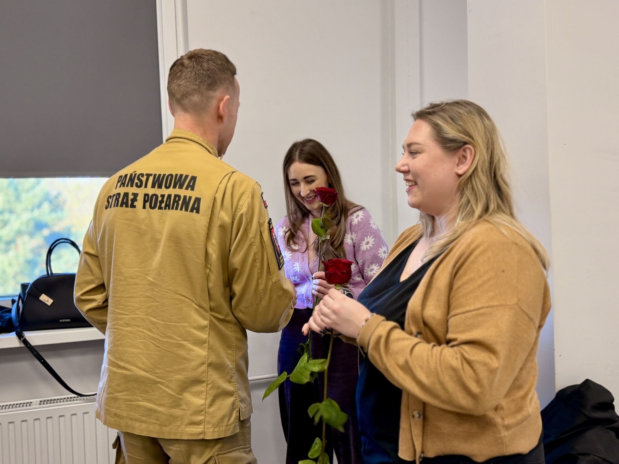 W imieniu Wielkopolskiego Komendanta Wojewódzkiego PSP st. bryg. Jacka Strużyńskiego oraz wszystkich mężczyzn z poznańskiej komendy, serdeczne życzenia Paniom przekazał st. bryg. Tomasz Grelak, zastepca komendanta wojewódzkiego PSP.