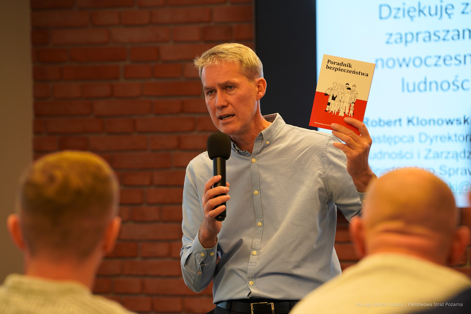 Podczas sobotnich zajęć odbywających się w murach Komendy Wojewódzkiej PSP w Poznaniu, w roli prelegenta wystąpił Robert Klonowski, Zastępca Dyrektora Departamentu Ochrony Ludności i Zarządzania Kryzysowego Ministerstwa Spraw Wewnętrznych i Administracji. Dyrektor przedstawił rolę i zadania, cele współpracy samorządu terytorialnego z jednostkami ochrony przeciwpożarowej, w sposób szczególny odnosząc się do realizacji zadań w kształtowanym systemie ochrony ludności i obrony cywilnej.