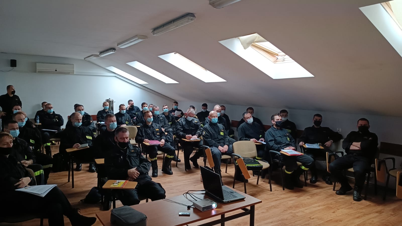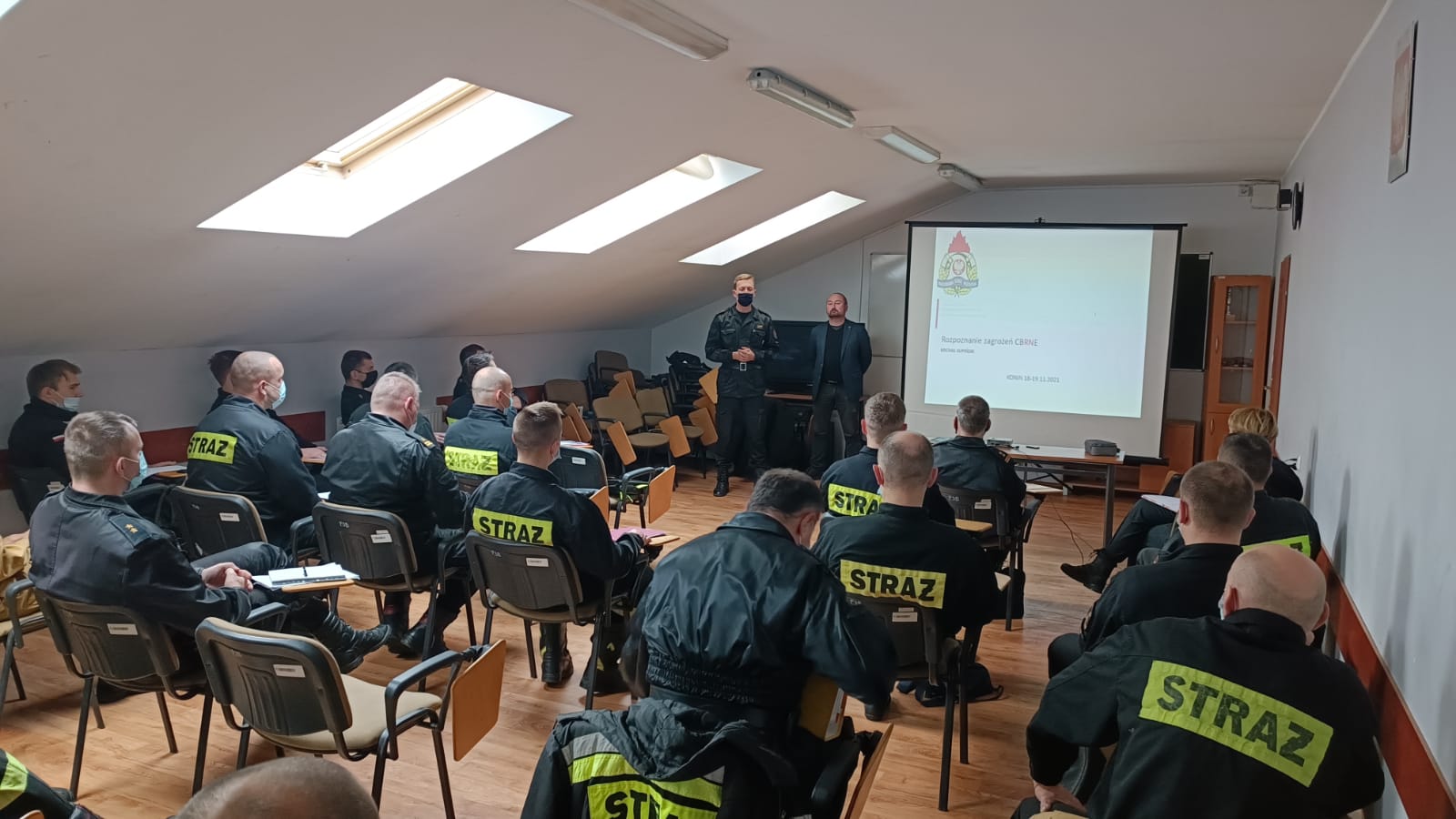 Grup Ratownictwa Chemiczno-Ekologicznego PSP z województwa wielkopolskiego. Tematyka szkolenia obejmowała zagadnienia z zakresu reagowania na zdarzenia radiacyjne. Szkolenie poprowadził Główny Specjalista ds. Zagrożeń Radiacyjnych Komendy Głównej PSP Pan Michał Łupiński. Dodatkowo podczas szkolenia został zaprezentowany pod kątem możliwości wykorzystania podczas działań ratowniczych mobilny robot IBIS oraz dwa bezzałogowe statki powietrzne stanowiące wyposażenie SGRChem-Eko KM PSP Poznań.