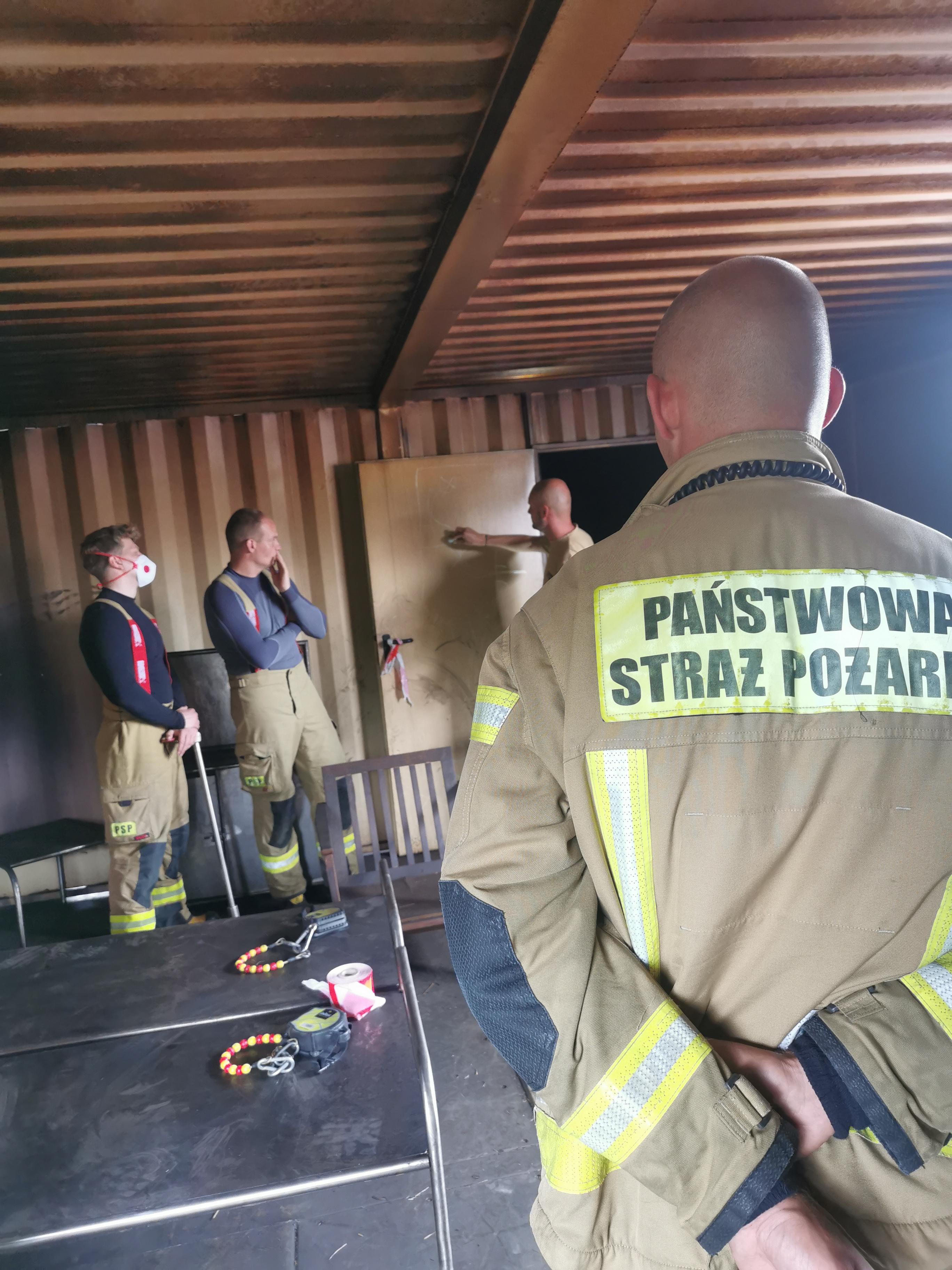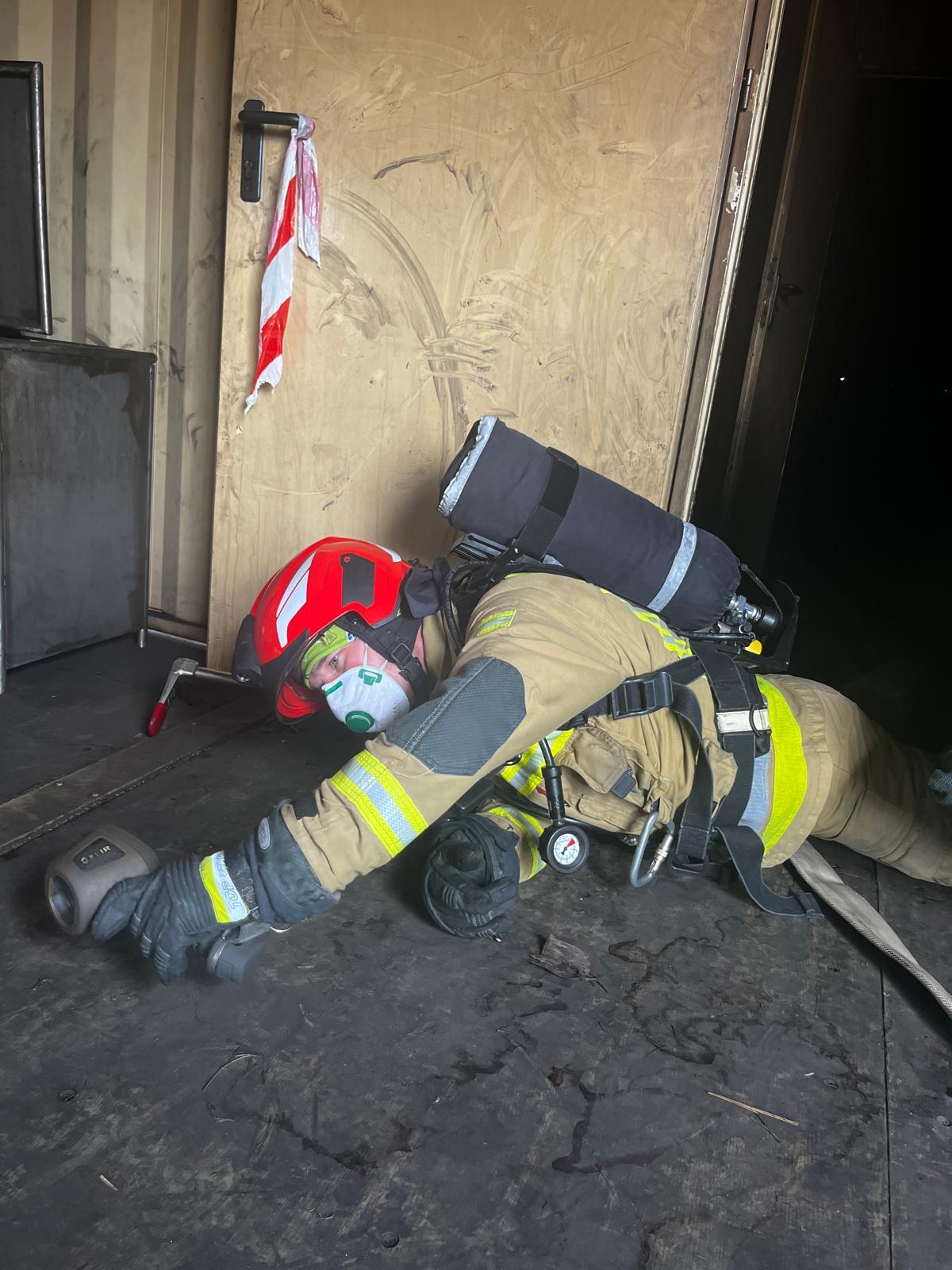 - procedury wejścia do pomieszczenia objętego pożarem,