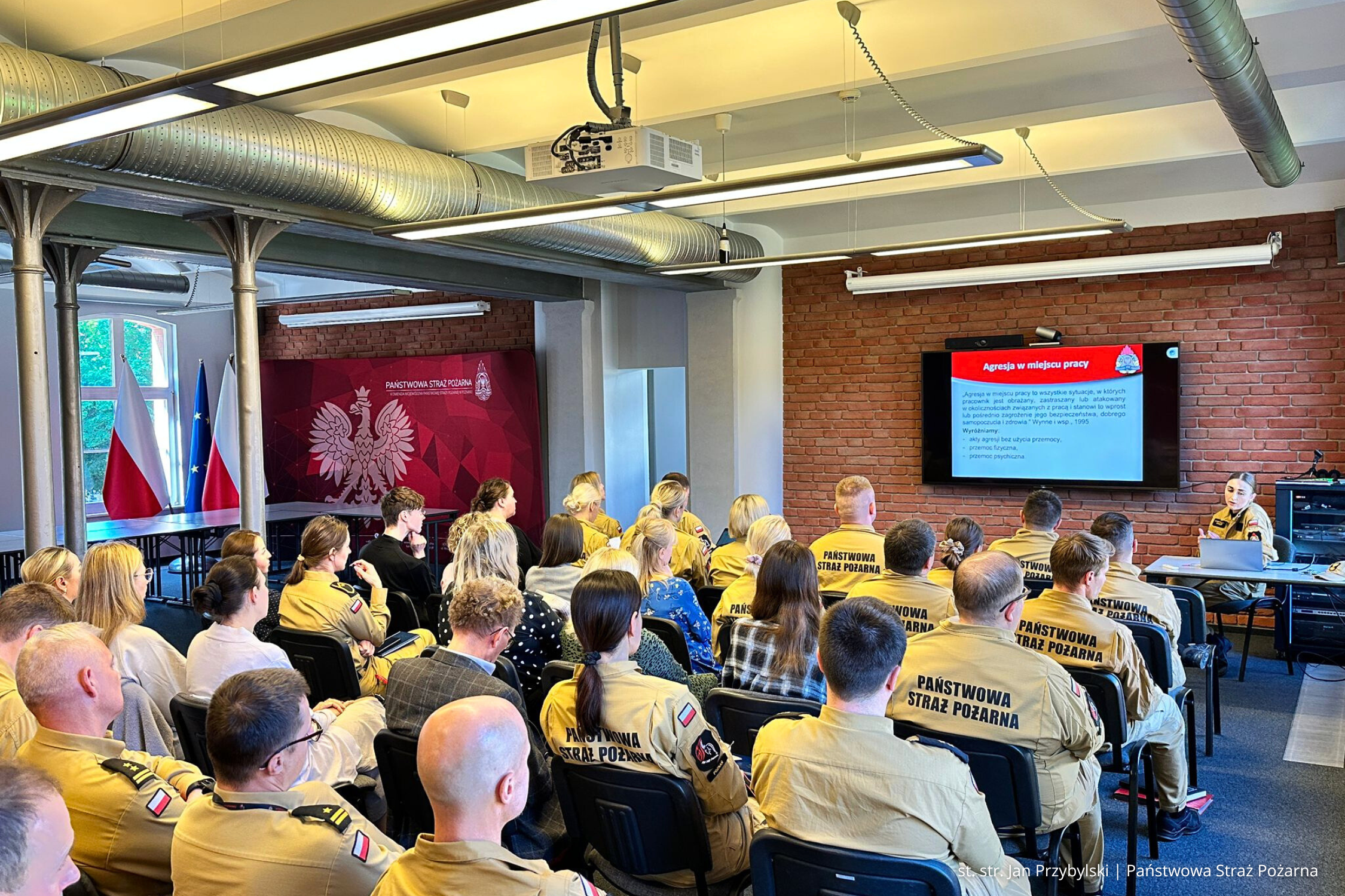 Tematem spotkania były zagadnienia związane z mobbingiem i dyskryminacją w środowisku służb mundurowych. Szkolenie pt. „Mobbing i dyskryminacja w świecie służb mundurowych” poprowadziła psycholog str.Karolina Knop z Ośrodka Szkolenia KW PSP w Poznaniu.