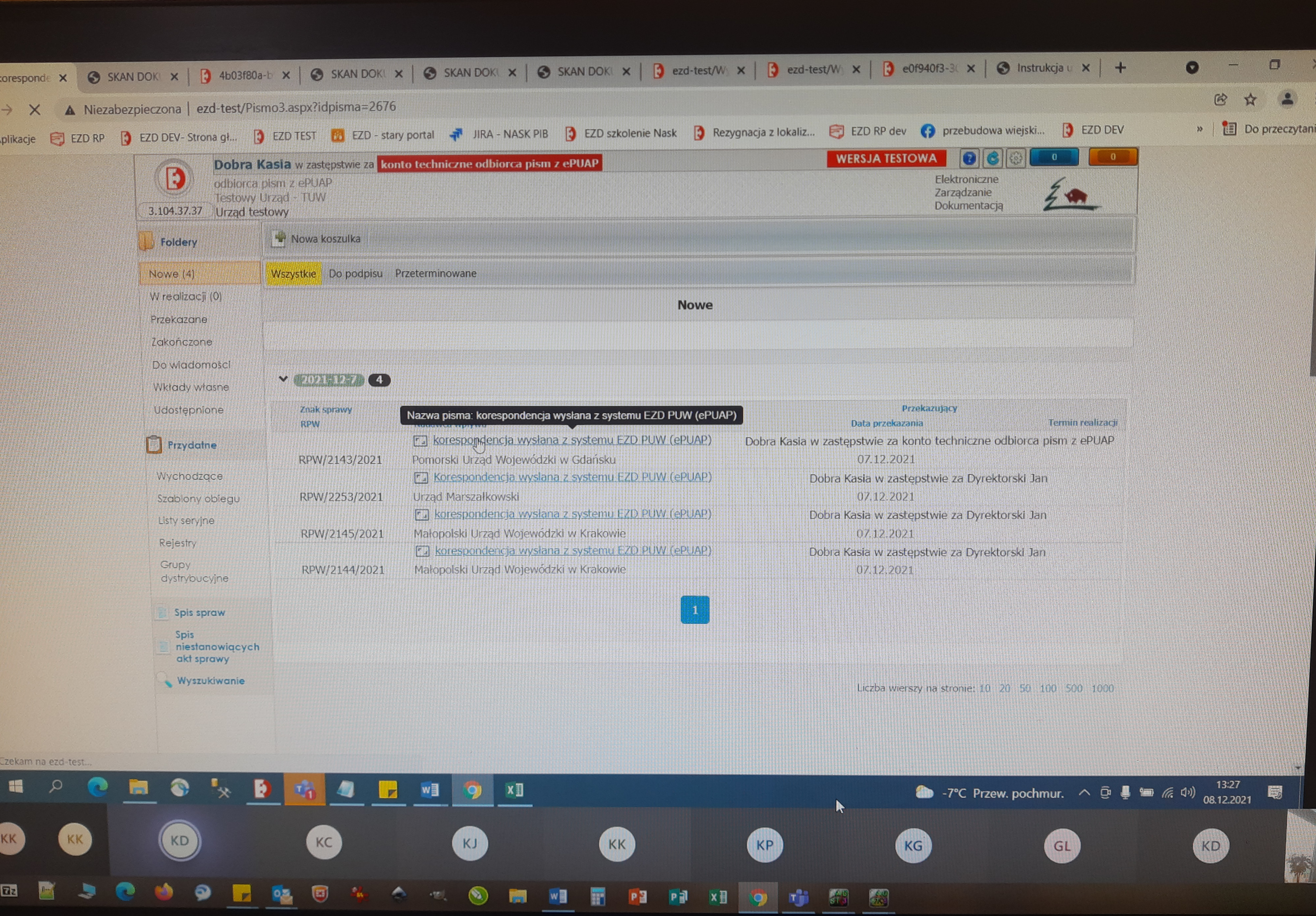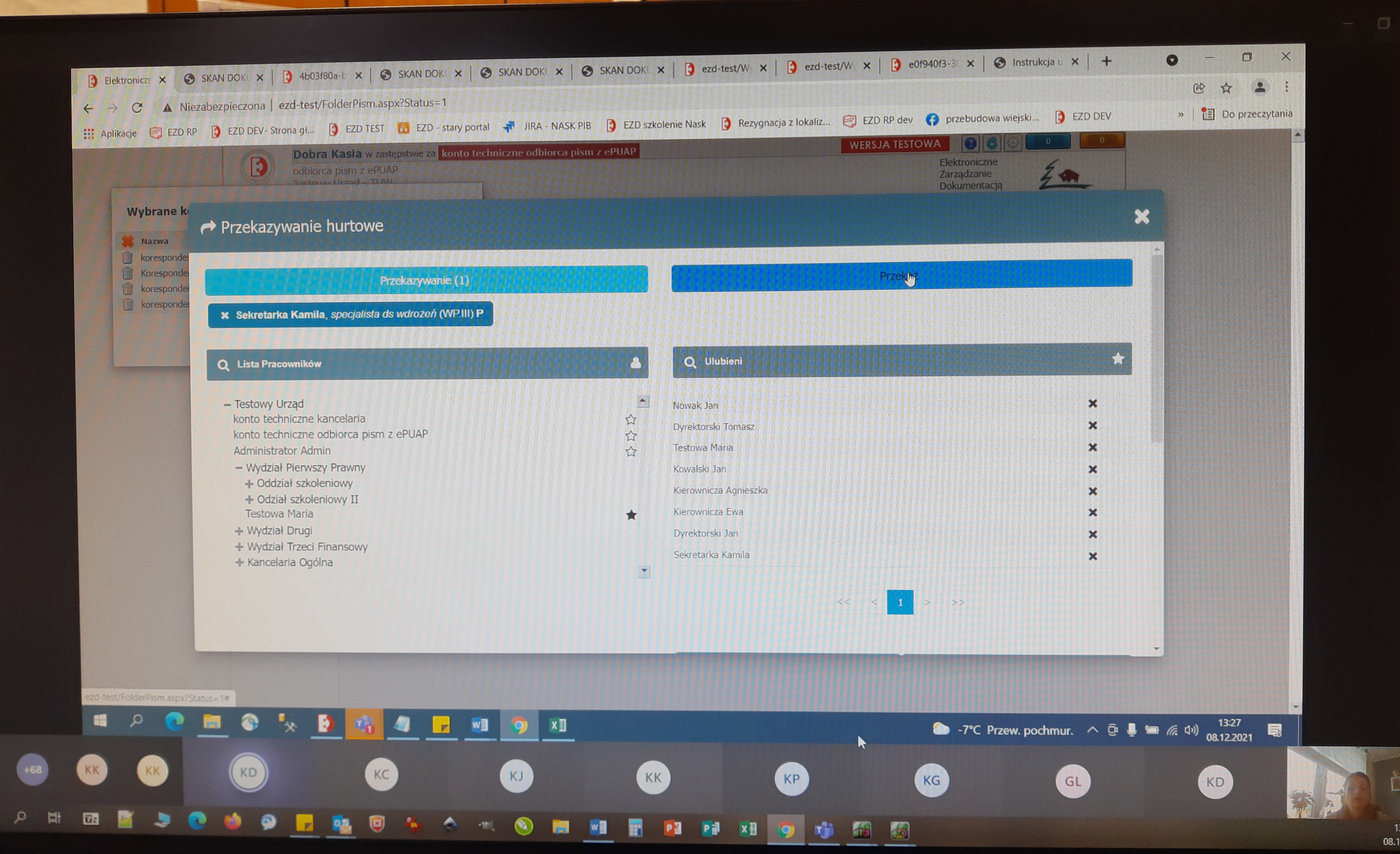 W dniach 6-8 grudnia 2021 roku odbyło się szkolenie on-line z zakresu wdrażania i korzystania z systemu Elektronicznego Obiegu Dokumentacji (EZD PUW). W szkoleniu uczestniczyli komendanci oraz wyznaczeni przedstawiciele komendy wojewódzkiej PSP w Poznaniu jak i z komend miejskich i powiatowych PSP z terenu województwa wielkopolskiego.