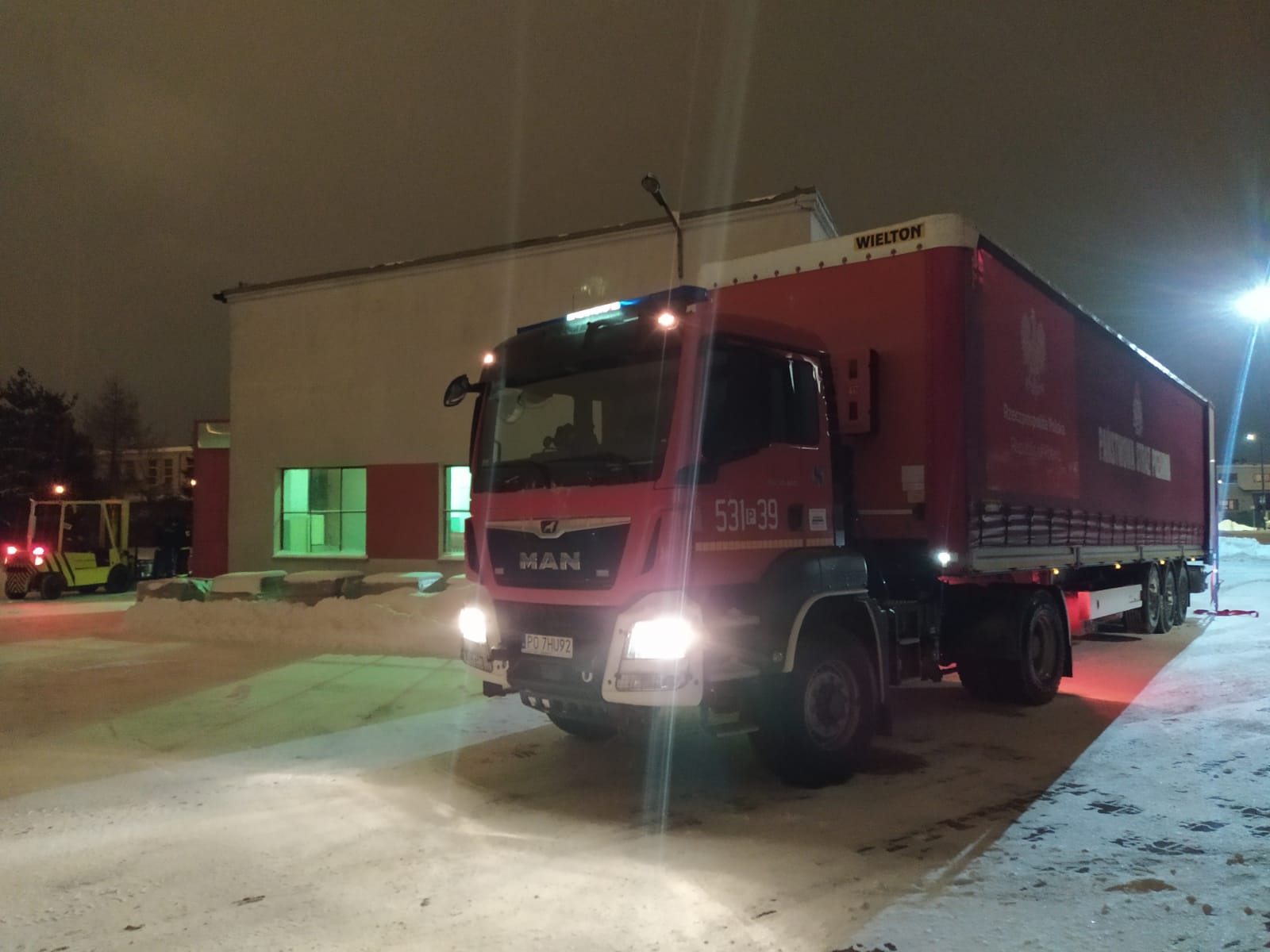 W dniu wczorajszym (tj. 8 lutego 2021 roku) do Komendy Miejskiej Państwowej Straży Pożarnej w Kaliszu dotarł transport z Agencji Rezerw Materiałowych ponad 3000 litrów środka do dezynfekcji przeznaczonego dla zapewnienia bezpieczeństwa strażakom Państwowej jak i Ochotniczej Straży Pożarnej zaangażowanym bezpośrednio przy realizacji wsparcia Narodowego Programu Szczepień.
