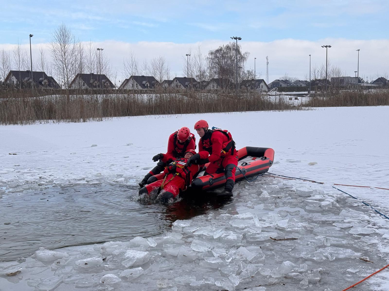Na terenie całej wielkopolscy strażacy realizują różne scenariusze ćwiczeń na zbiornikach wodnych. Trenują m.in. ewakuację osób z przerębli, działania na zamarzniętych akwenach oraz współpracę zespołową w trudnych, zimowych warunkach. Wszystko po to, aby w realnym zagrożeniu działać szybko, skutecznie i bezpiecznie.