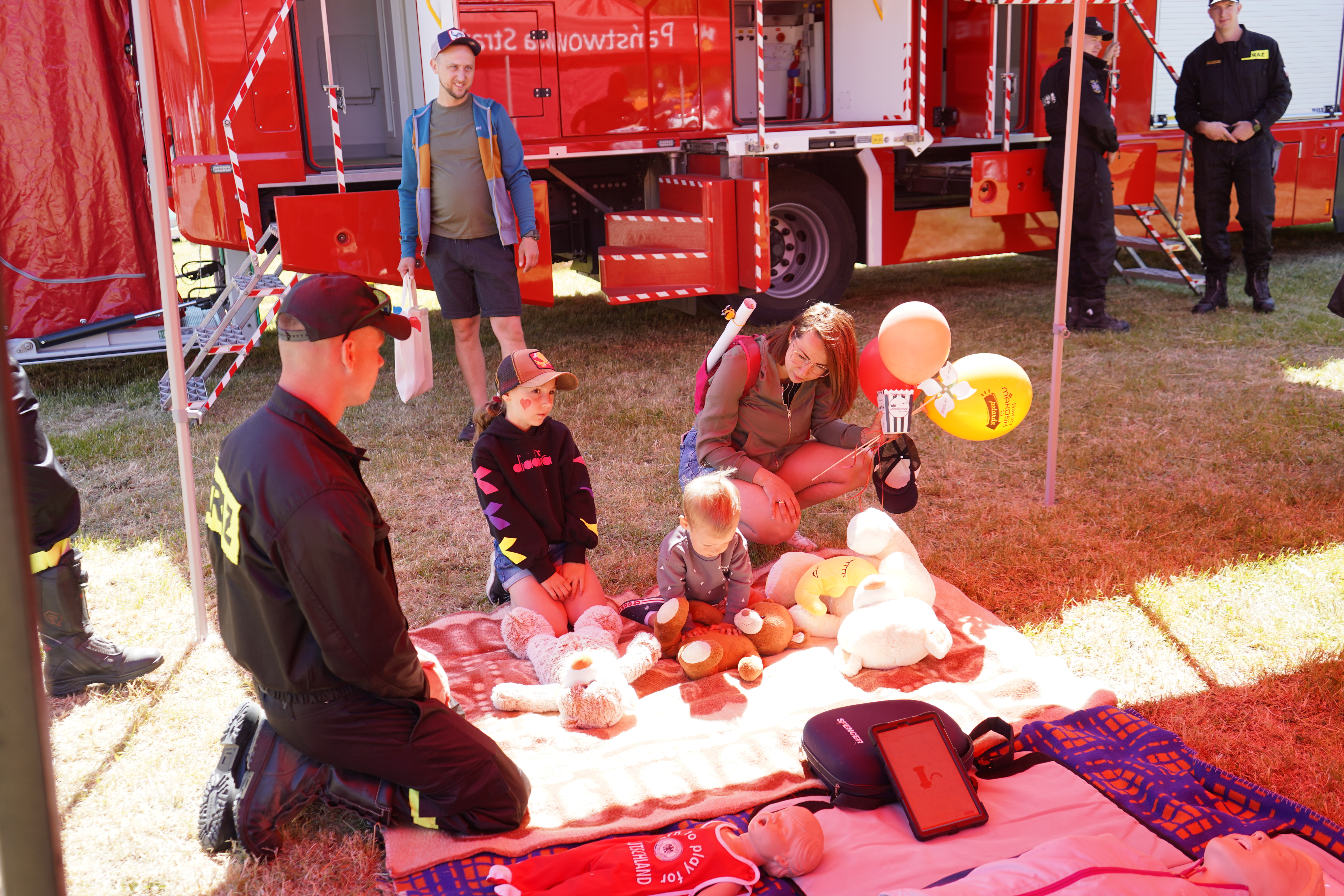 Państwowa Straż Pożarna prezentowała na swoim stoisku symulator zagrożeń pożarowych domu jednorodzinnego wraz z modułem woda-las, przy którym można było porozmawiać o zagrożeniach w domu, w lesie, nad wodą czy też na drodze. Ponadto każdy mógł wejść do zadymionego namiotu i zmierzyć się z silnym dymem, a jednocześnie przypomnieć sobie podstawowe zasady ewakuacji, i poczuć się jak prawdziwy strażak podczas prowadzenia działań gaśniczych. Ważnym elementem stoiska była nauka pierwszej pomocy, która jest bardzo istotna, szczególnie w okresie letnim, gdy dochodzi do zdarzeń podczas prac polowych lub nad wodą. Udzielenie pierwszej pomocy do czasu przybycia służb ratowniczych, może uratować poszkodowanej osobie życie. Odwiedzający stoisko PSP mogli również zapoznać się z samochodem ratowniczo-gaśniczym, z samochodem przeznaczonym do dekontaminacji oraz z samochodem specjalnym typu drabina, a także zadawać pytania na nurtujące ich problemy z zakresu ochrony przeciwpożarowej, podstawowych zasad bezpieczeństwa czy jak zostać strażakiem.
